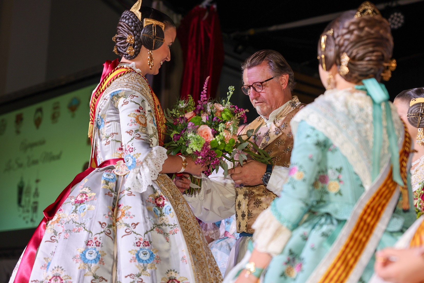 Durante el acto, las falleras mayores han sido exaltadas entre aplausos y muestras de afecto, en una ceremonia que ha combinado tradición, protocolo y emoción, reflejando el orgullo de pertenecer a uno de los sectores históricos de la fiesta.