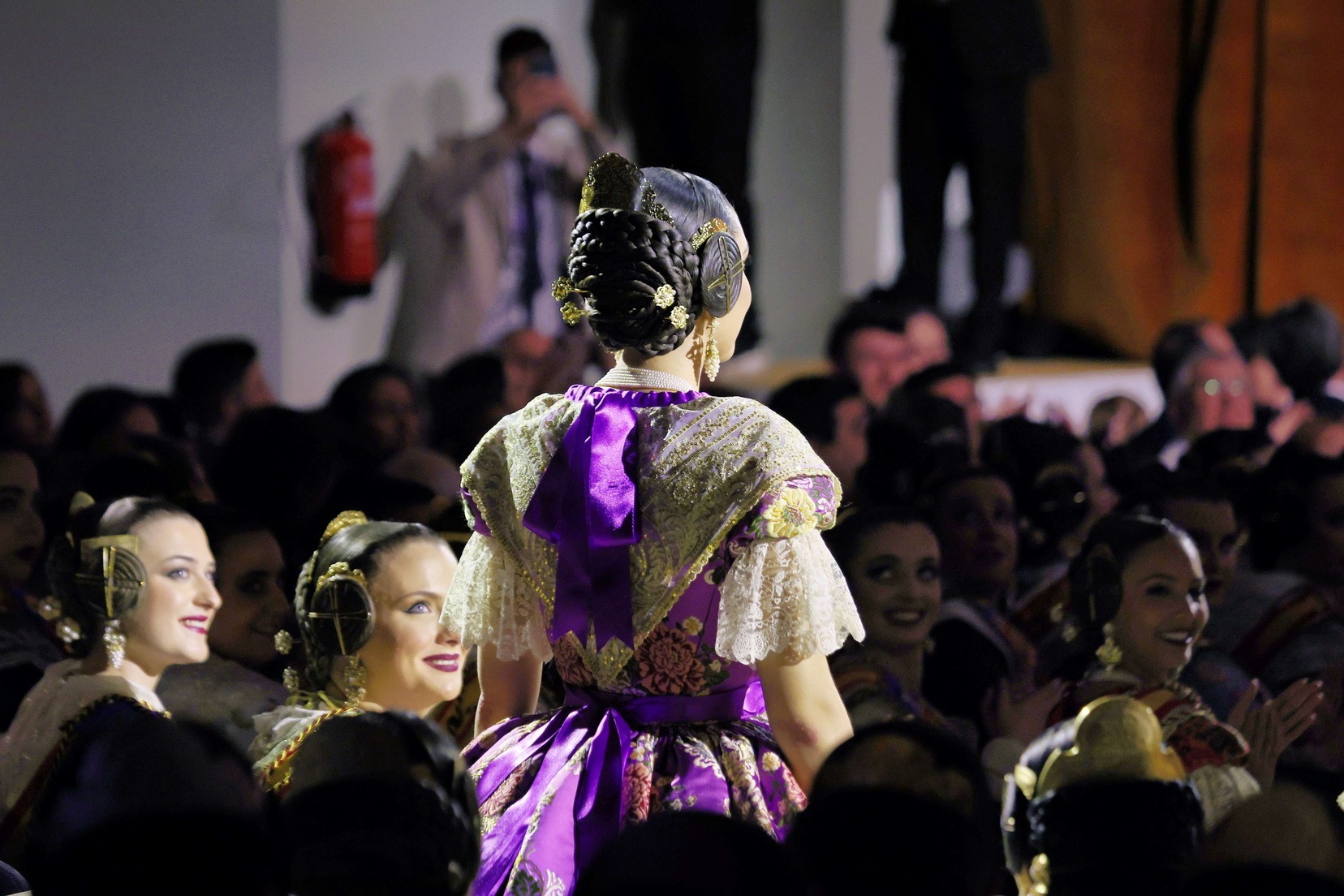 Una vez en sus respectivos tronos, con los ojos brillantes llenos de emoción, las miradas se centraron al final de la sala, donde todos esperaban expectantes recibir a Berta Peiró para así completar el escenario con la Fallera Mayor de Valencia y su Corte de Honor.