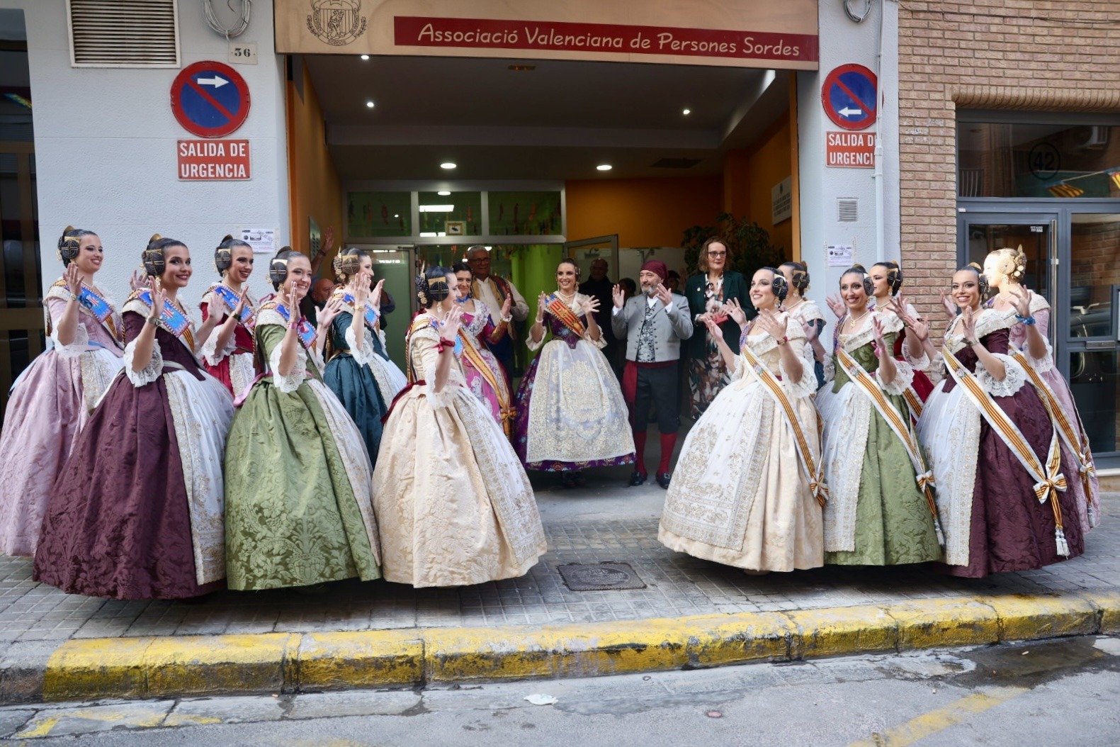 La Asociación Valenciana de Personas Sordas ha recibido la visita de la Fallera Mayor de Valencia y su Corte de Honor. La Asociación Valenciana de Personas Sordas tiene el objetivo de mejorar la integración de las personas sordas. Esta Asociación está muy vinculada en el mundo de las Fallas, motivo por el cual han invitado a la Fallera Mayor de Valencia, María Estela Arlandis, y su Corte de Honor a compartir con ellos y ellas este momento tan especial y, también firmar en su Libro de Honor.