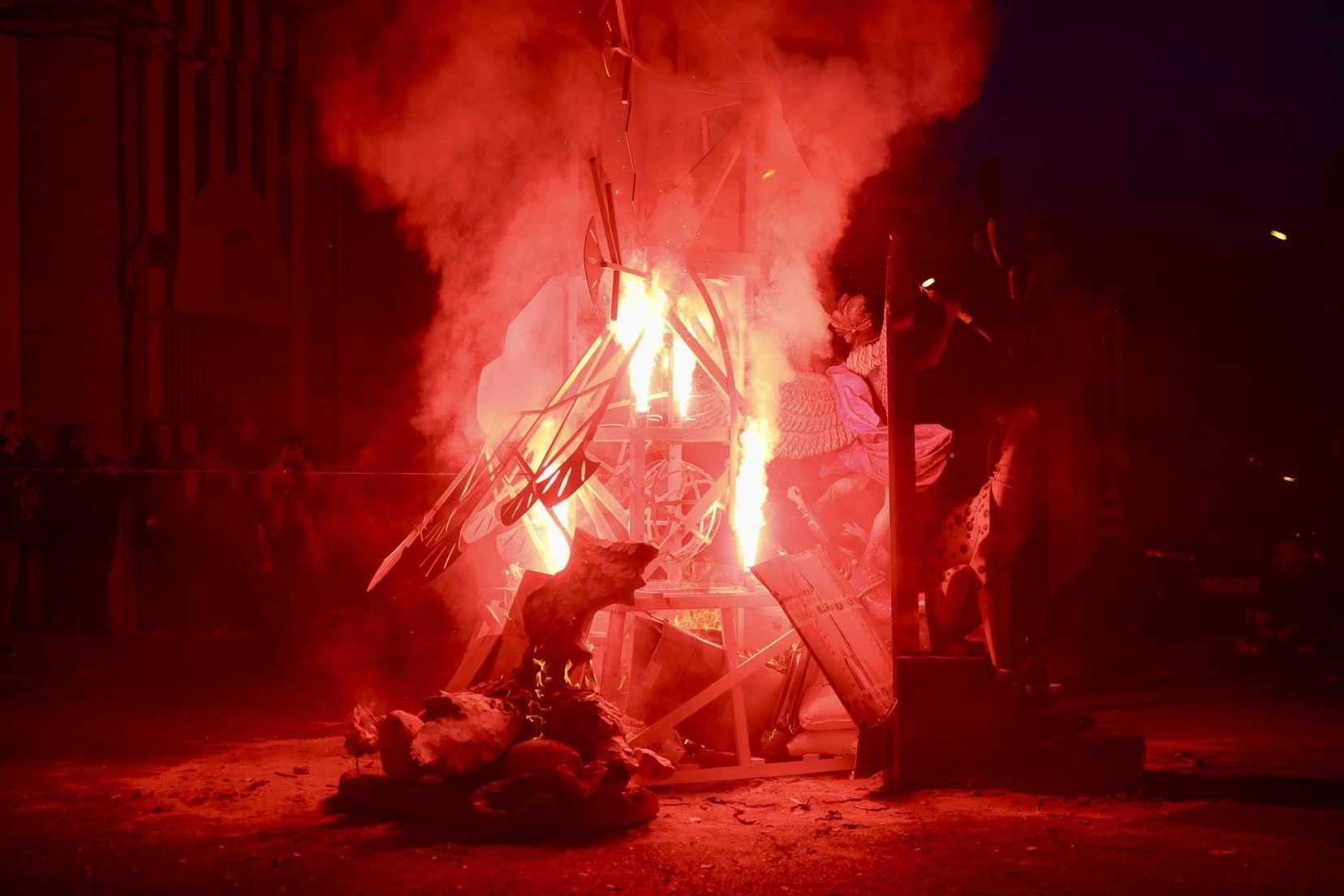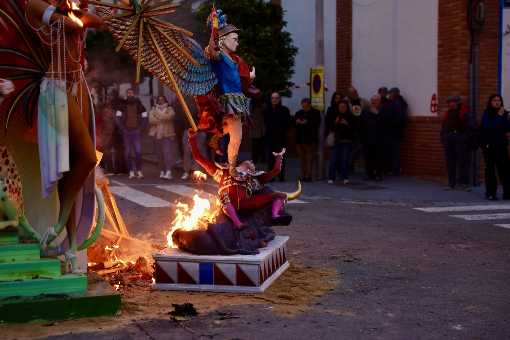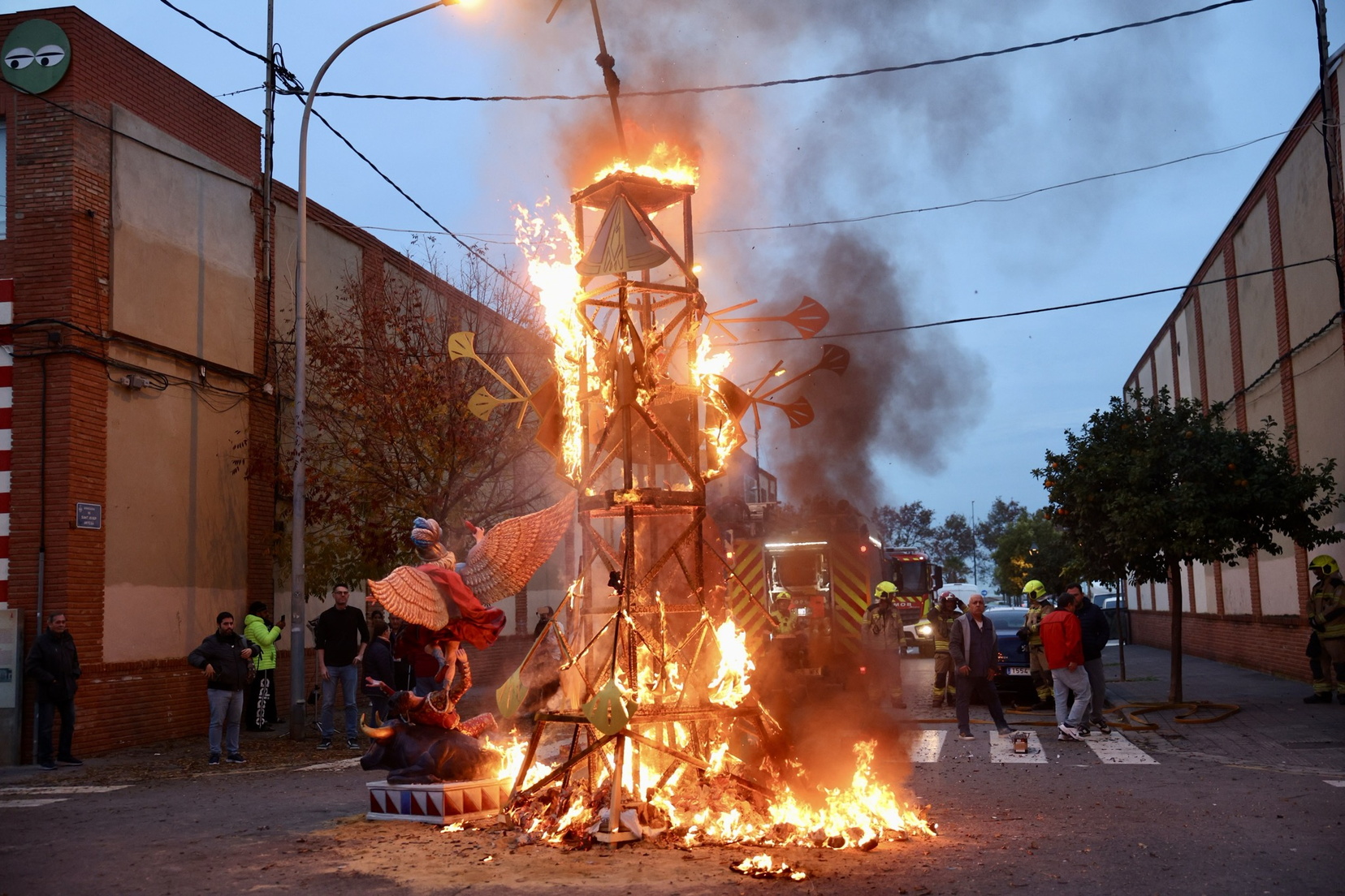 Hacia el mediodía, la celebración ha comenzado con la Plantà del Pi, una estructura construida por diversos artistas agremiados y que, como novedad, ha contado este año con un ninot, la figura de la bailarina y cantante Josephine Baker. Tras una comida de germanor, se ha llevado a cabo la Cremà.