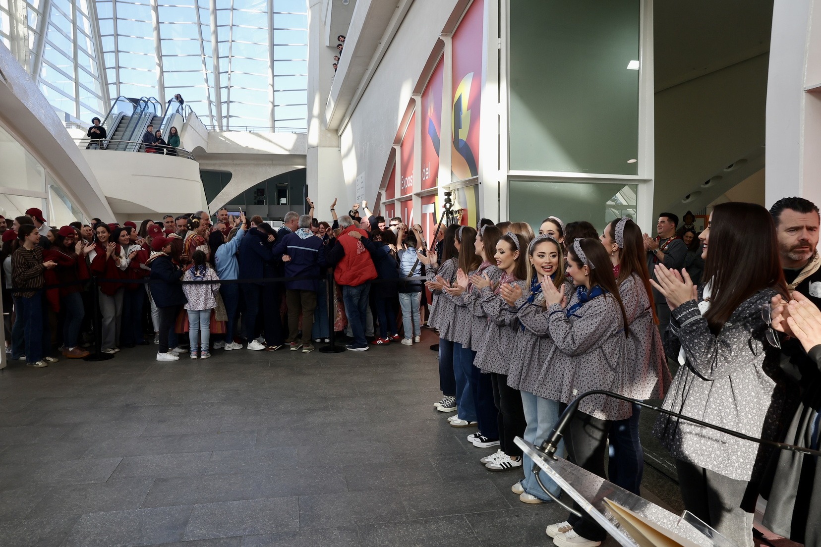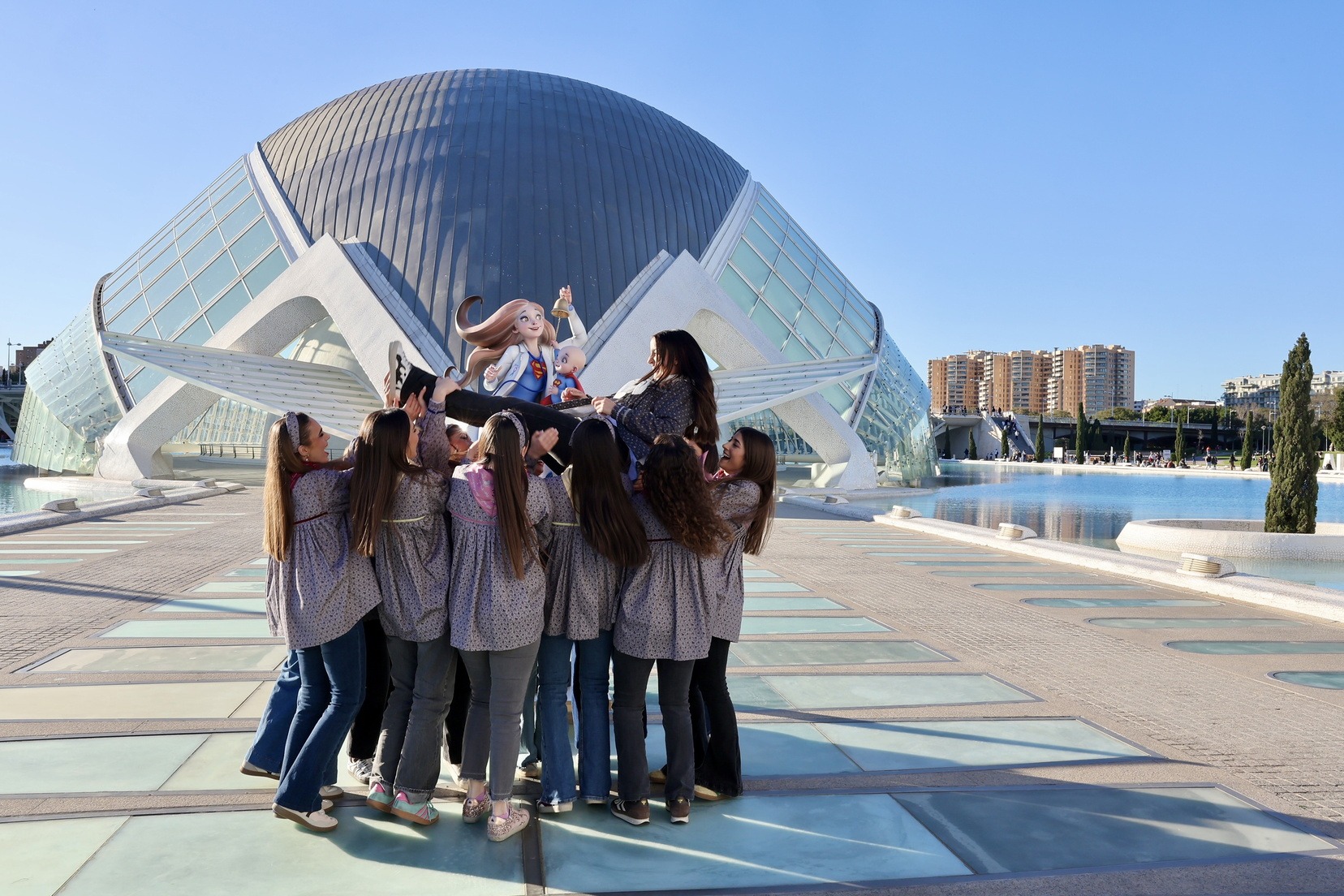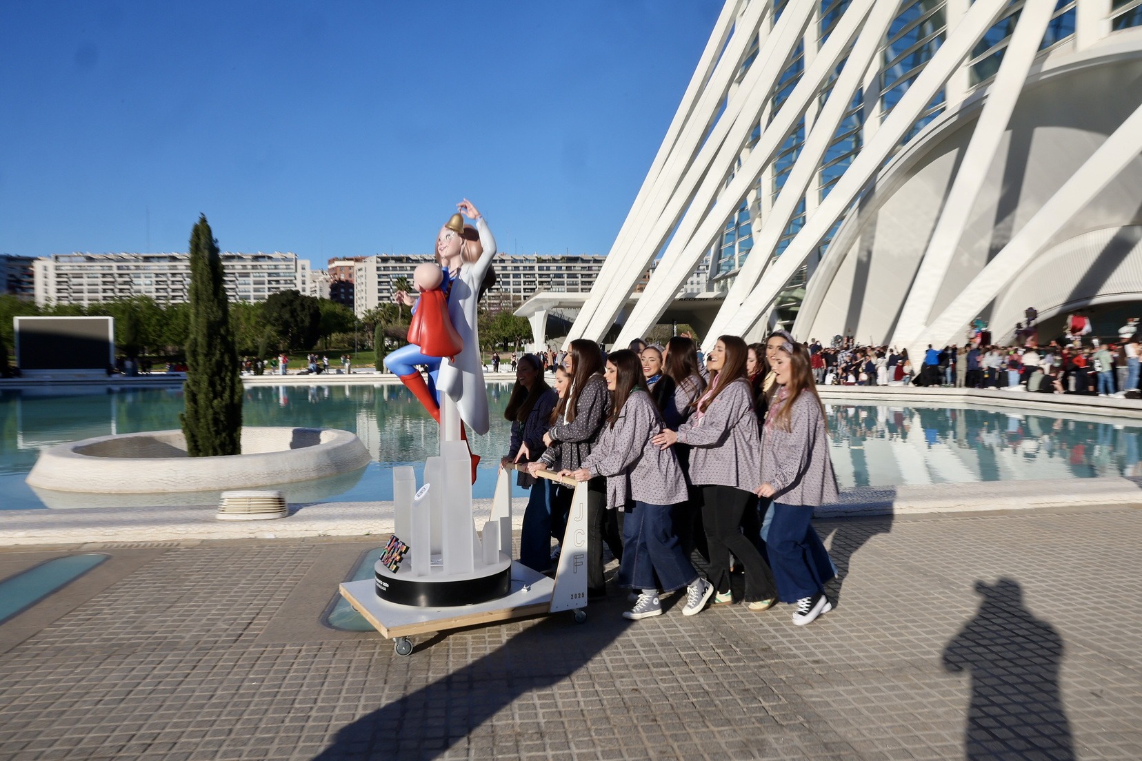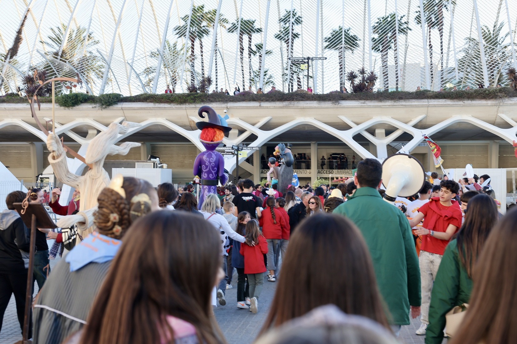 Las inmediaciones del Museo de las Ciencias Príncipe Felipe se han llenado de falleros y falleras que esperaban la salida de sus representantes con los ninots que, desde el pasado mes de febrero, han permanecido expuestos en la Exposición del Ninot y han recibido la visita de miles de personas.