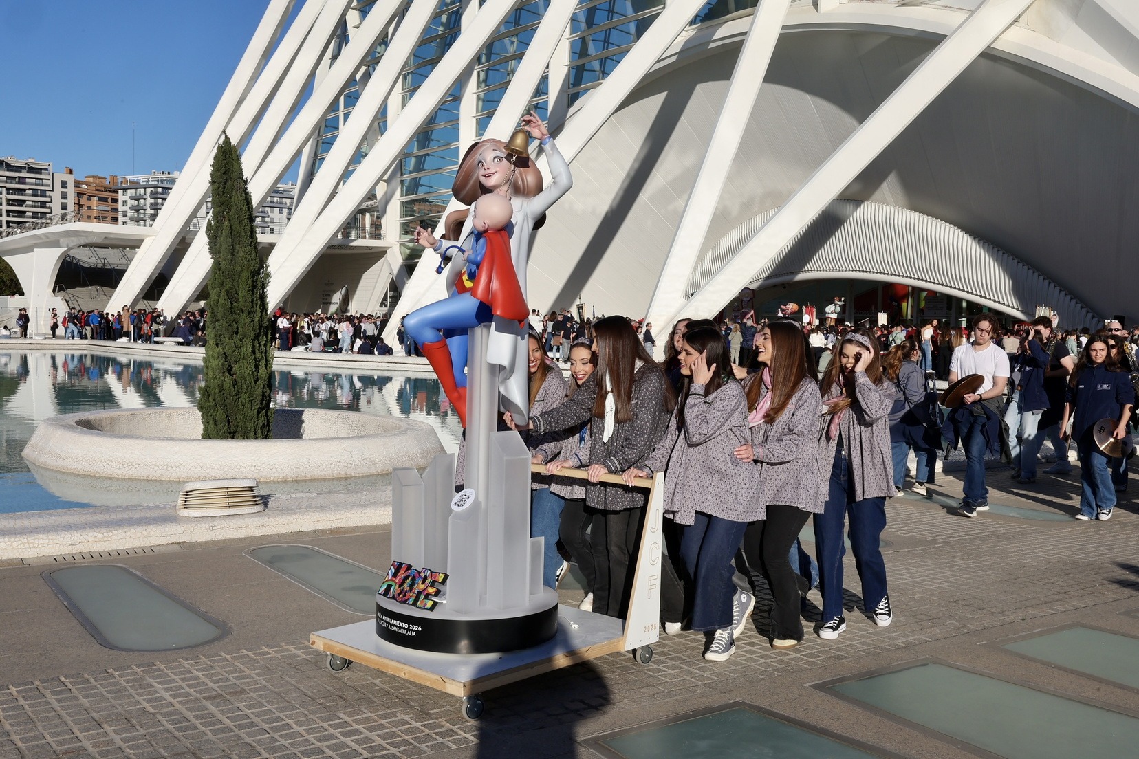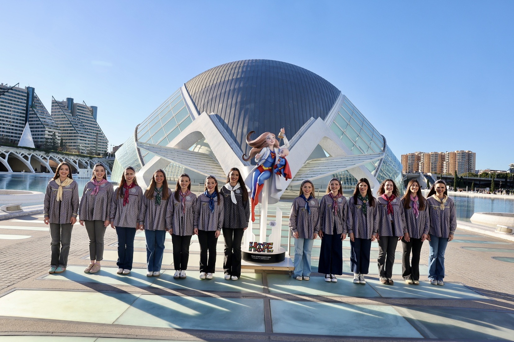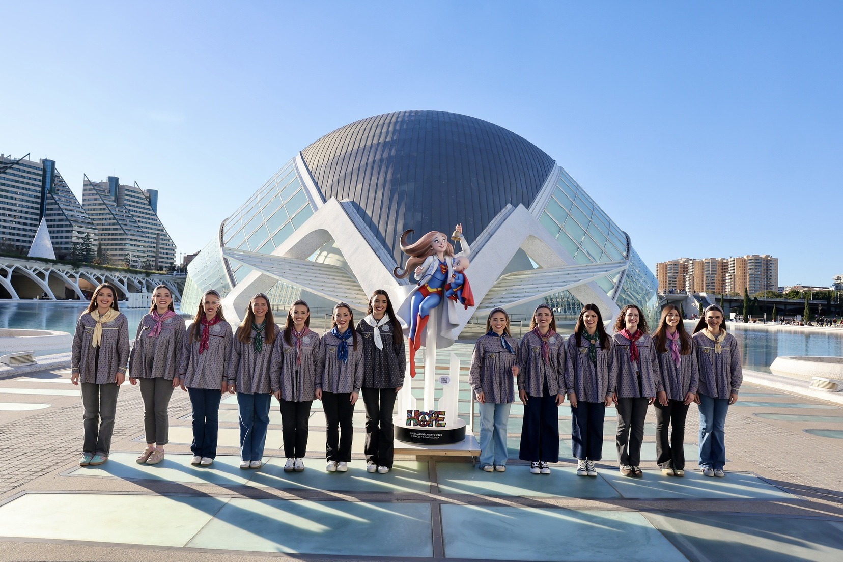 Carmen Prades Gil y su Corte de Honor se han llevado también el ninot que forma parte de la falla municipal “Hope”, que en estos días preside la Plaza del Ayuntamiento, y que ya se integra en el conjunto de la falla municipal, obra de Vicente Llácer y Alejandro Santaeulalia.