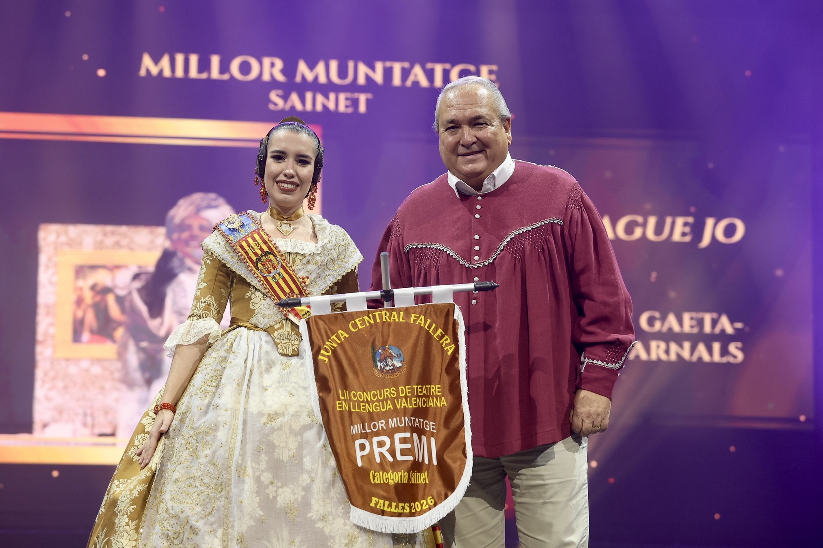 Finalmente, se ha hecho entrega de los diferentes galardones del Teatre Faller, así como de los deseados Saragüells que reconocen, en las respectivas categorías, a los mejores actores y actrices de reparto, principales y noveles, así como las mejores direcciones y montajes.