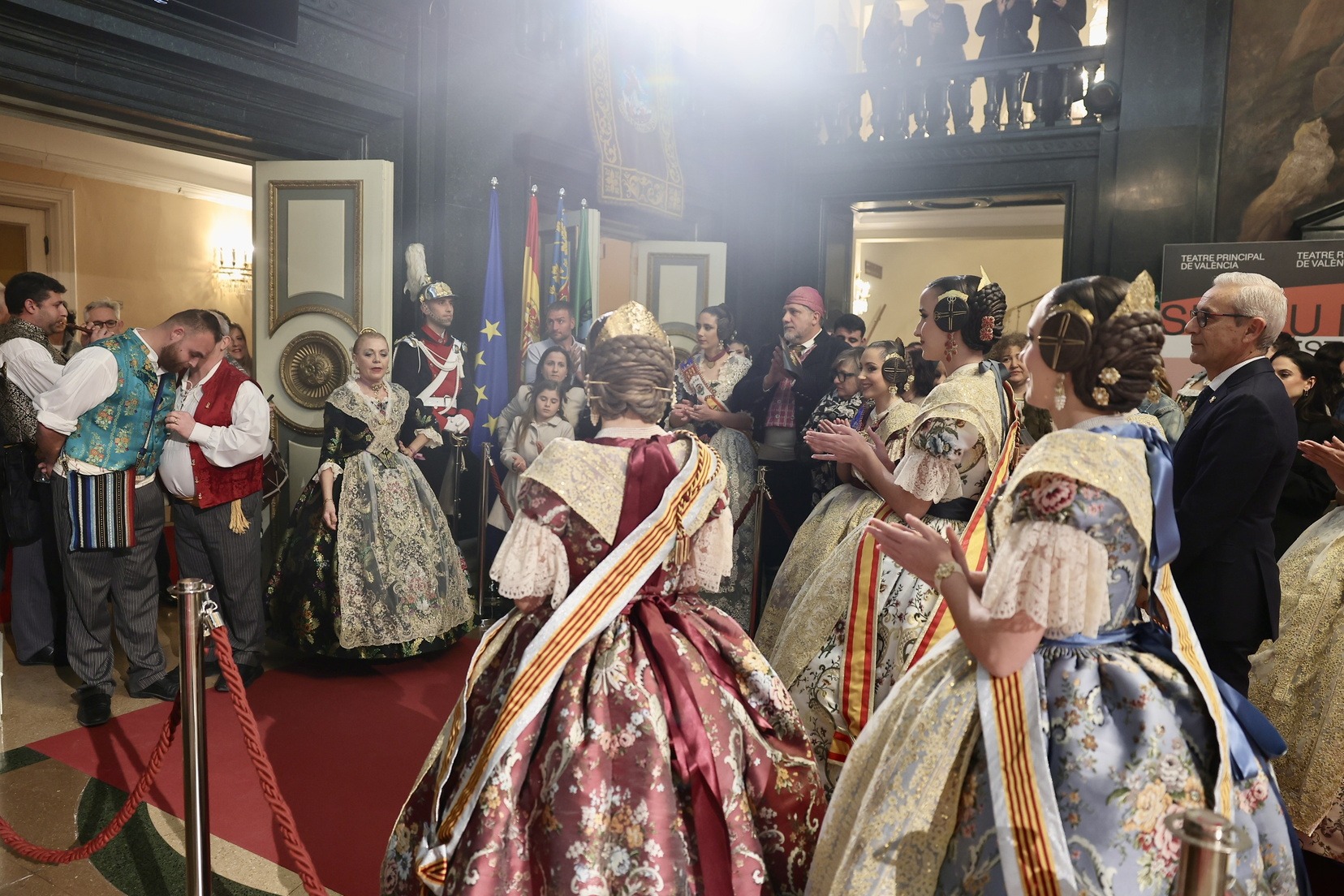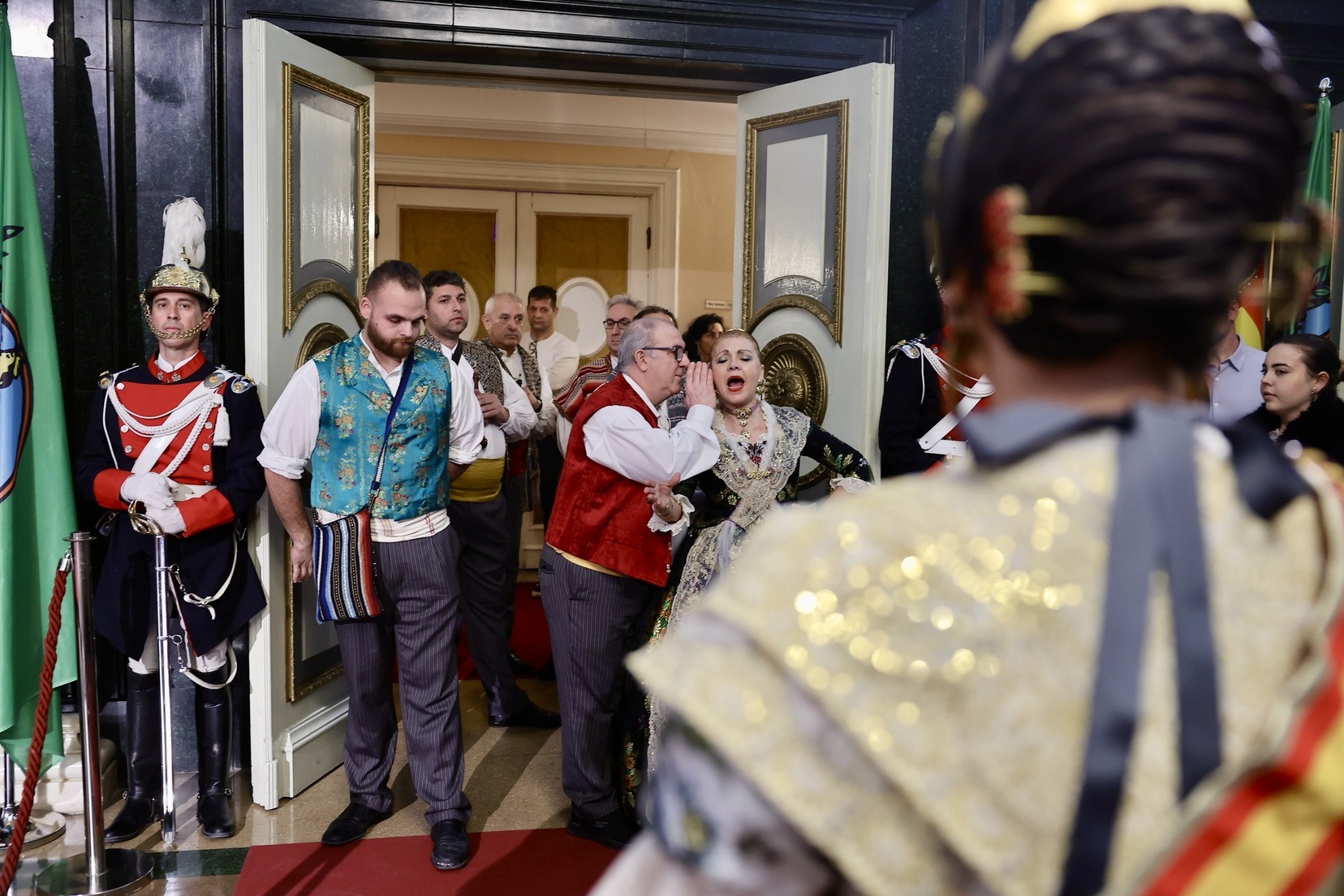 El grupo de albaes y la colla de tabal y dolçaina de Junta Central Fallera han sido los encargados de recibir a nuestra Fallera Mayor de Valencia, Carmen Prades, que junto a su Corte de Honor, han estado acompañadas por el concejal de Fallas y presidente de Junta Central Fallera, Santiago Ballester.