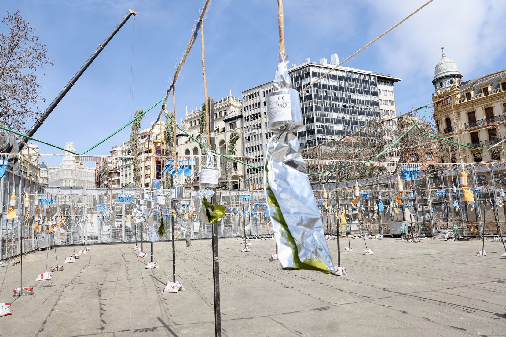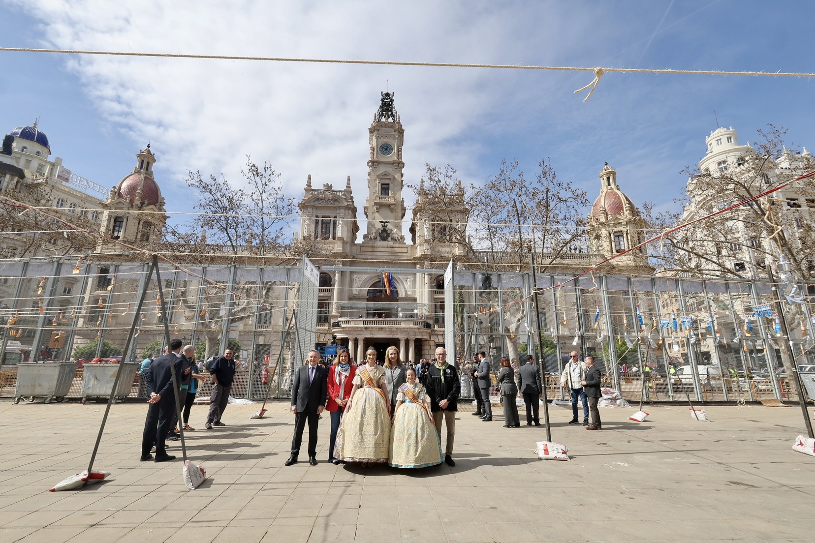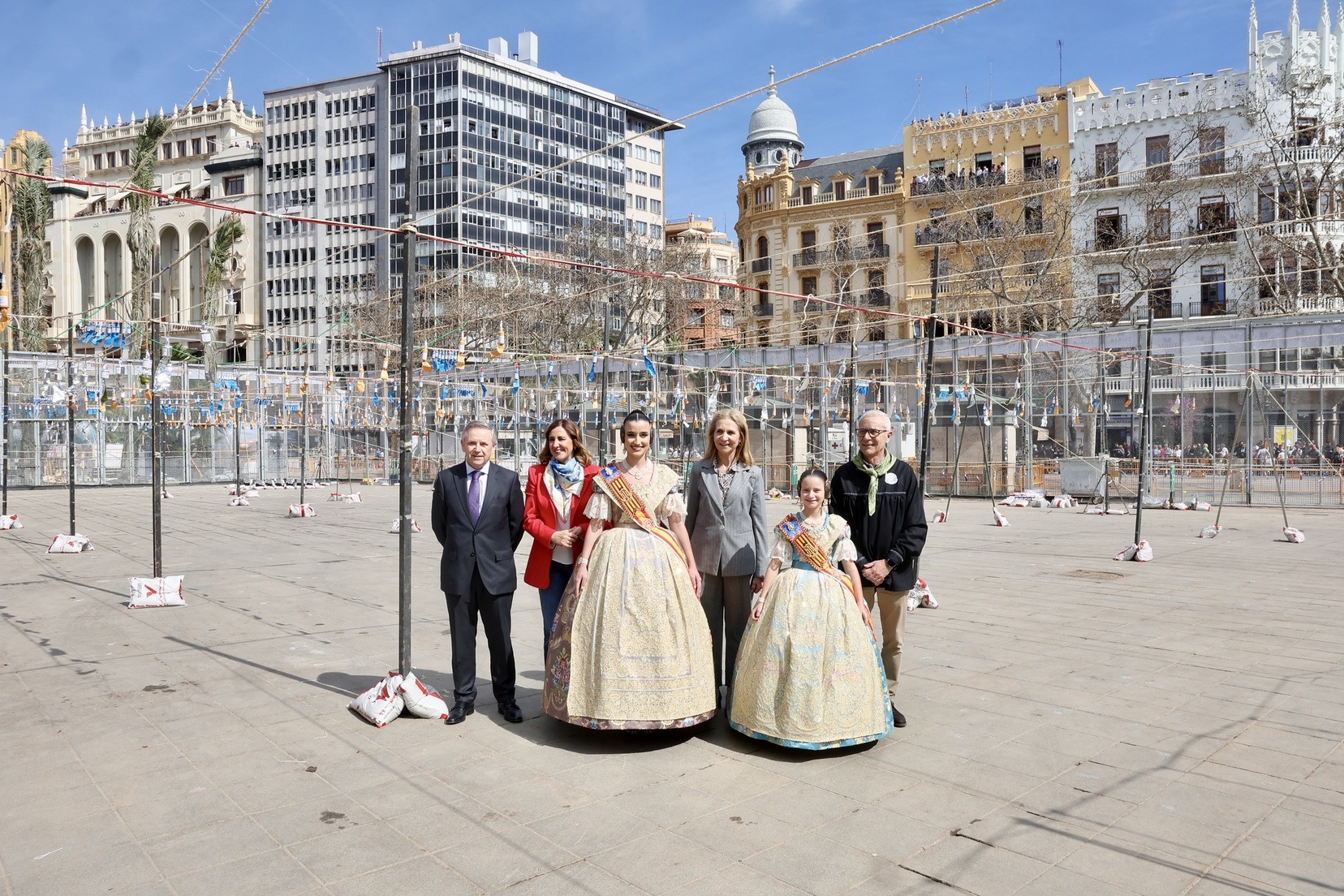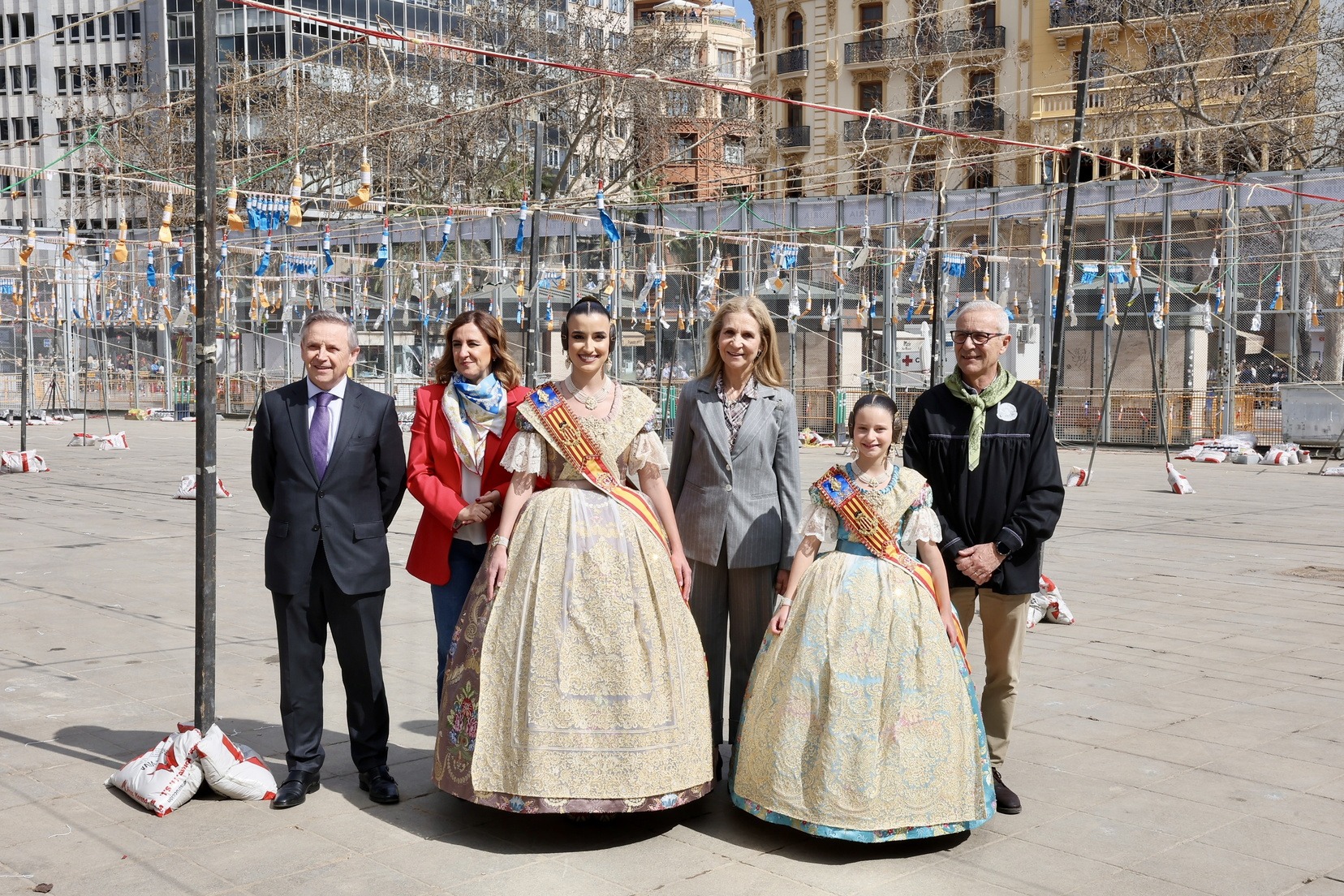 Posteriormente, doña Elena ha tenido la oportunidad de acceder a la zona de disparo para conocer de primera mano el trabajo previo al espectáculo pirotécnico. Allí ha podido ver cómo el equipo de Pirotecnia Tomás ultimaba los preparativos de la mascletà que se ha disparado en la Plaza del Ayuntamiento, una de las citas diarias más esperadas de las Fallas.
