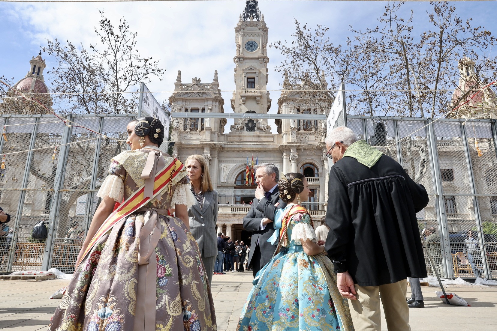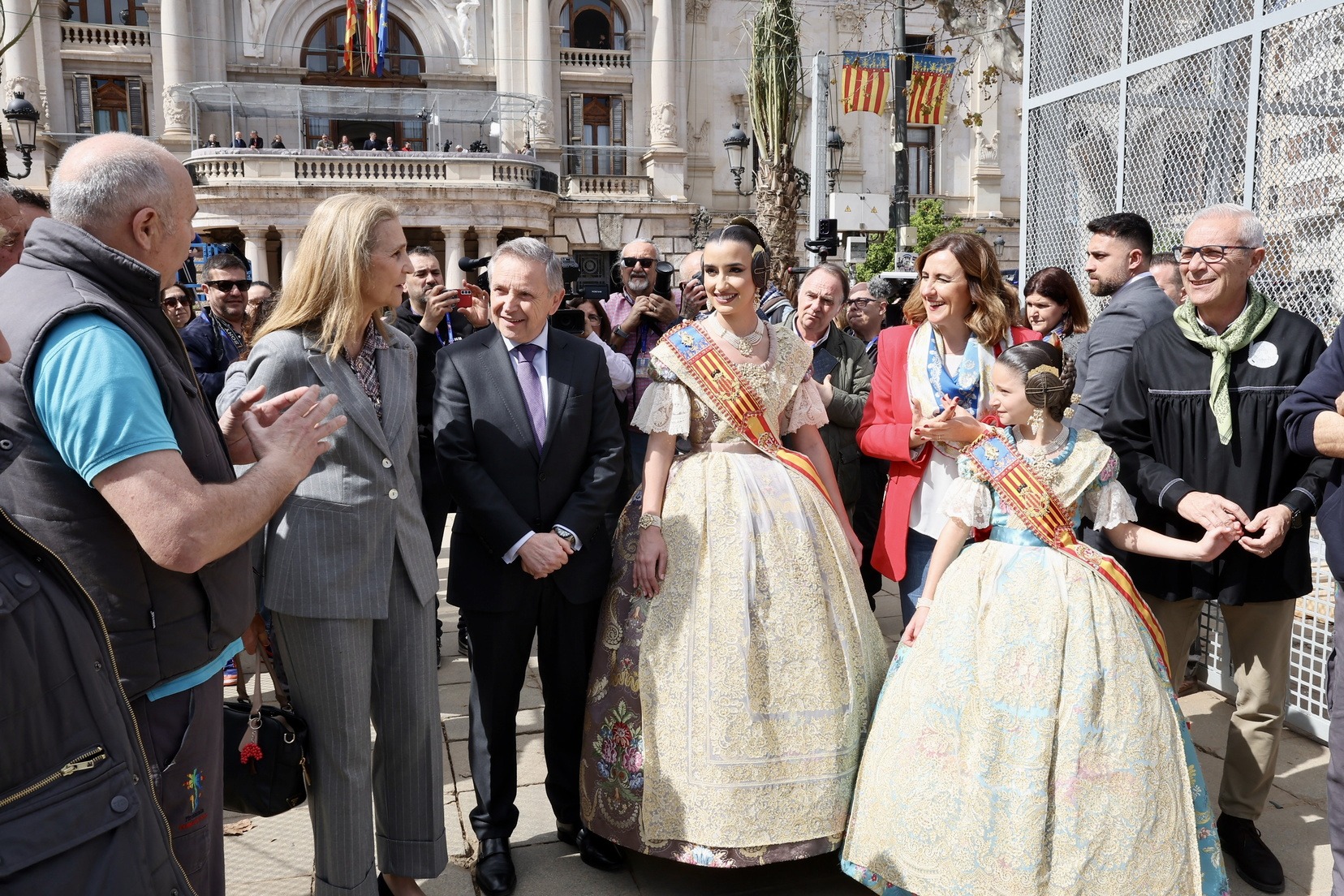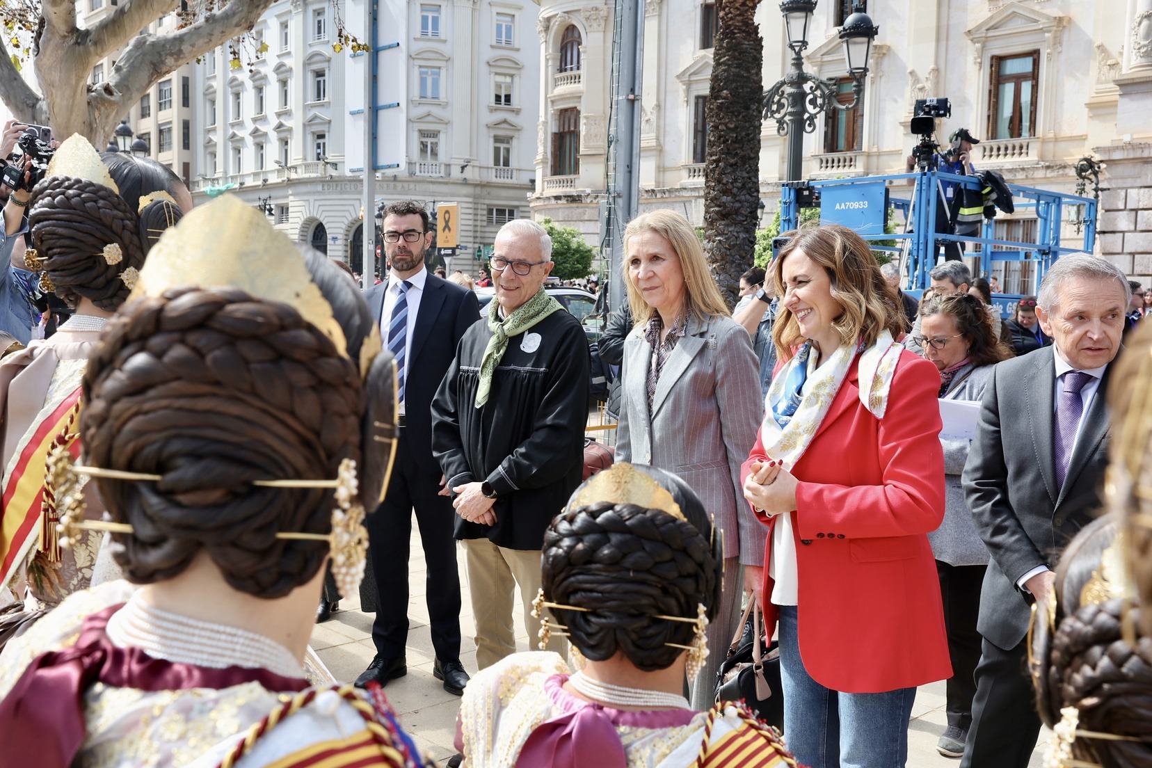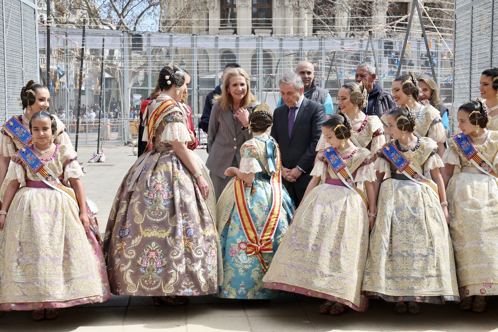 La infanta ha sido recibida en la plaza junto a representantes de Fundación MAPFRE y ha podido saludar a las máximas representantes de la fiesta, la Fallera Mayor de Valencia, Carmen Prades Gil, y la Fallera Mayor Infantil de Valencia, Marta Mercader Roig, acompañadas por sus respectivas Cortes de Honor. Durante el encuentro han compartido unos momentos de conversación antes del disparo de la mascletà.