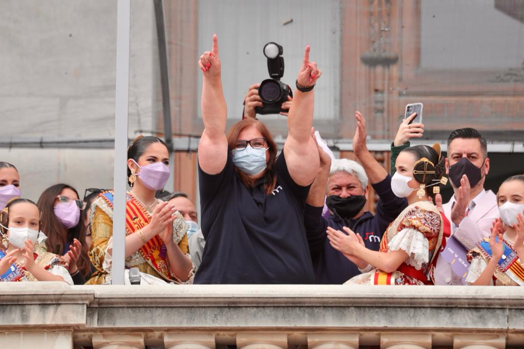 La pirotécnica Reyes Martí ha disparado la mascletà en homenaje al 8 de marzo Día de las Mujeres El Balcón Municipal ha tenido hoy un carácter festivo y reivindicativo. Entre las invitadas de hoy se ha contado con las cinco mujeres que ha homenajeado el Ayuntamiento por contribuir y trabajar en favor de la cultura festiva de la ciudad, una representación de deportistas, la síndica de Compromís en las Cortes, Papi Robles, y el Presidente del PP en la Comunidad Valenciana, Carlos Mazón.