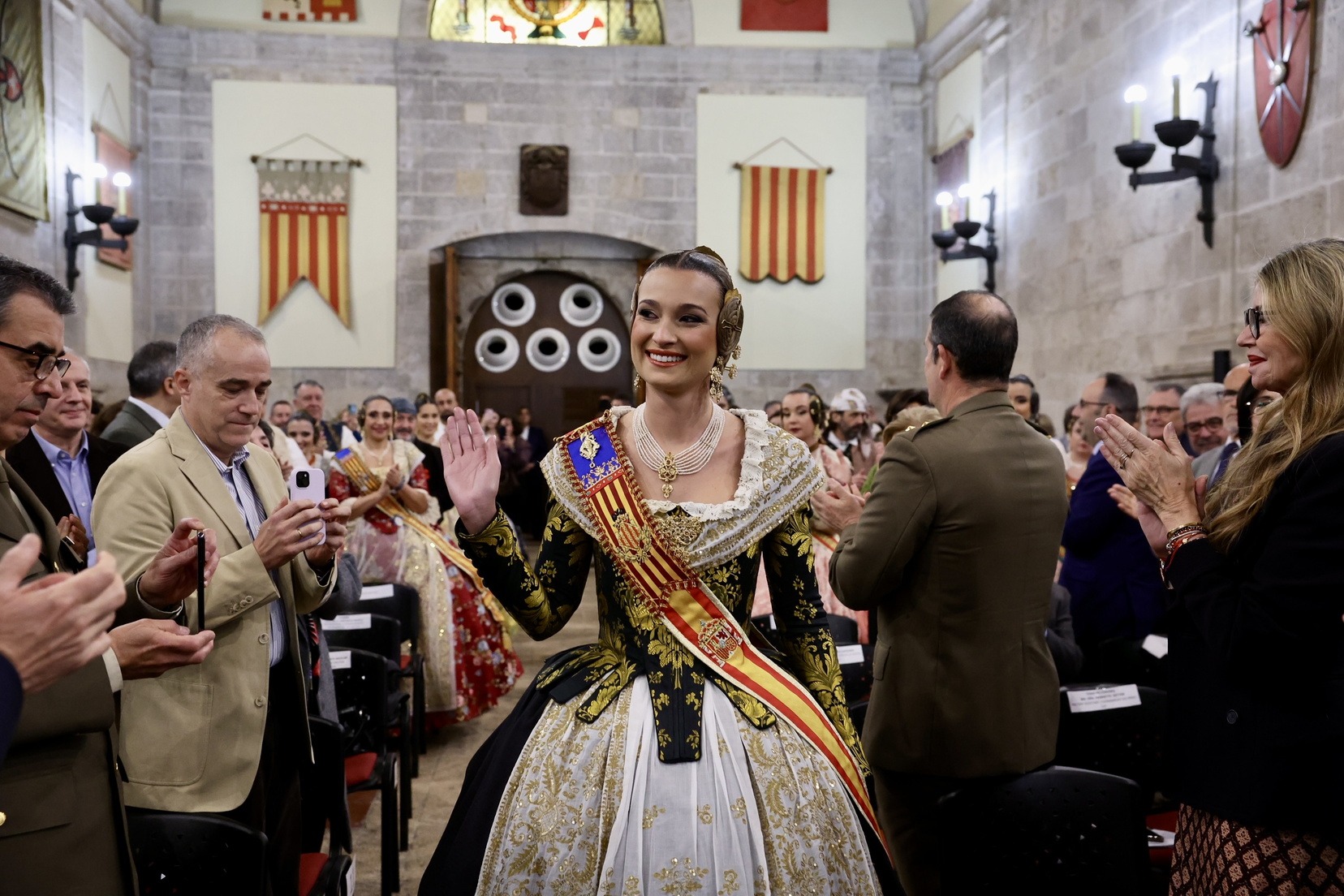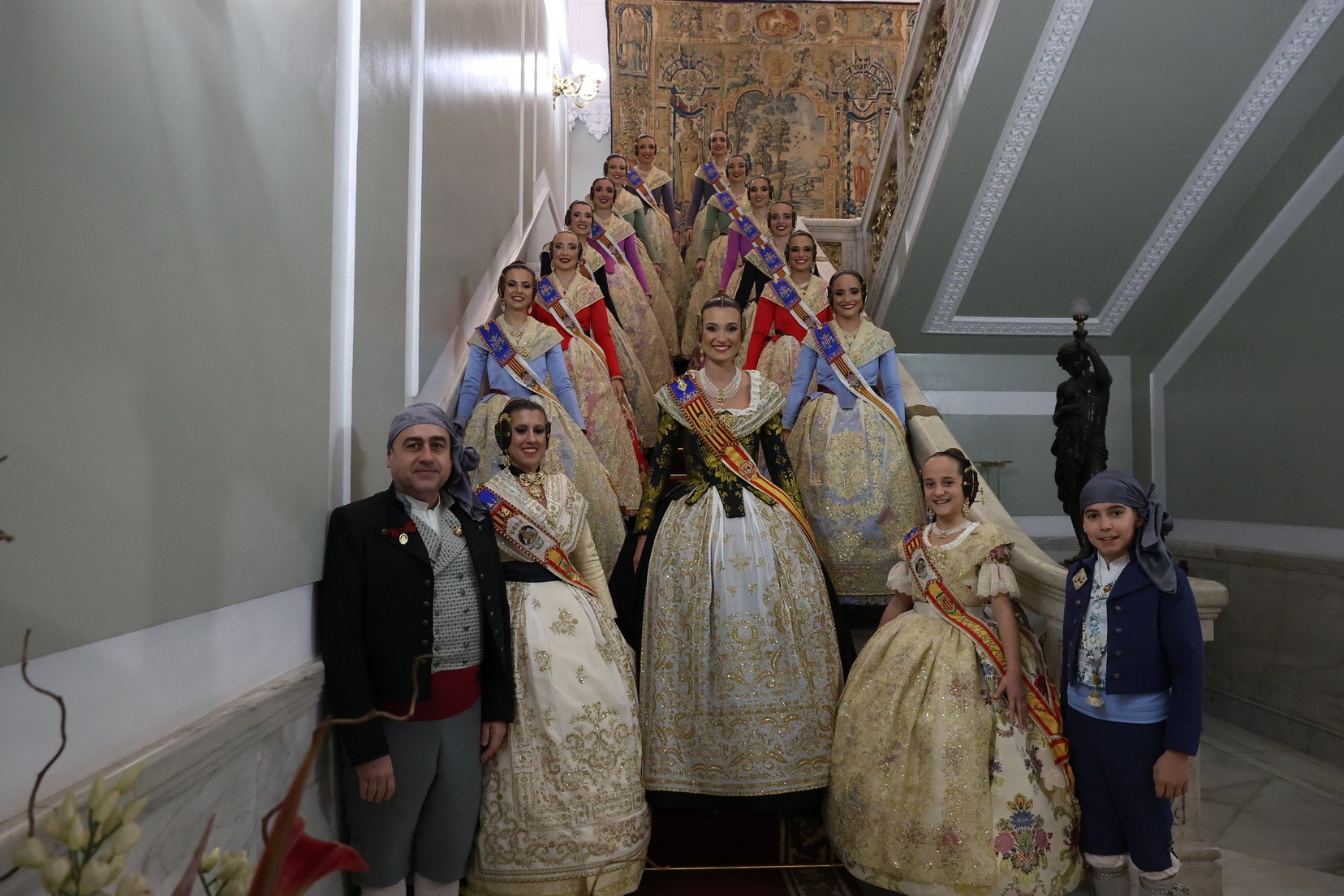 Sin duda un momento muy especial para todas ellas que han sido recibidas al ritmo de Valencia, pasodoble que este año cumple su centenario, y El Fallero, en el caso de la Fallera Mayor de Valencia, Berta Peiró. También han estado presentes en el acto los representantes de las fallas Convento Jerusalén-Matemático Marzal, Plaza San Bult, Plaza del Pilar, Corretgería-Bany dels Pavesos, Zapadores-Vicent Lleó, San Juan Bosco-Duque de Mandas, Plaza Mossén Milà, Reino de Valencia-Duque de Calabria, Pintor Pascual Capuz, Fontanares, Archiduque Carlos, Vicente Clavel, Plaza Lope de Vega y la Junta Local Fallera de Ribarroja.