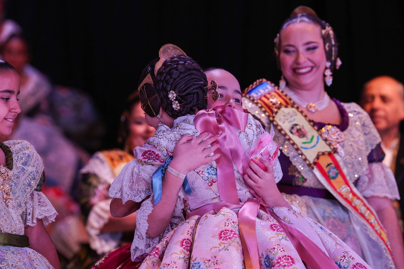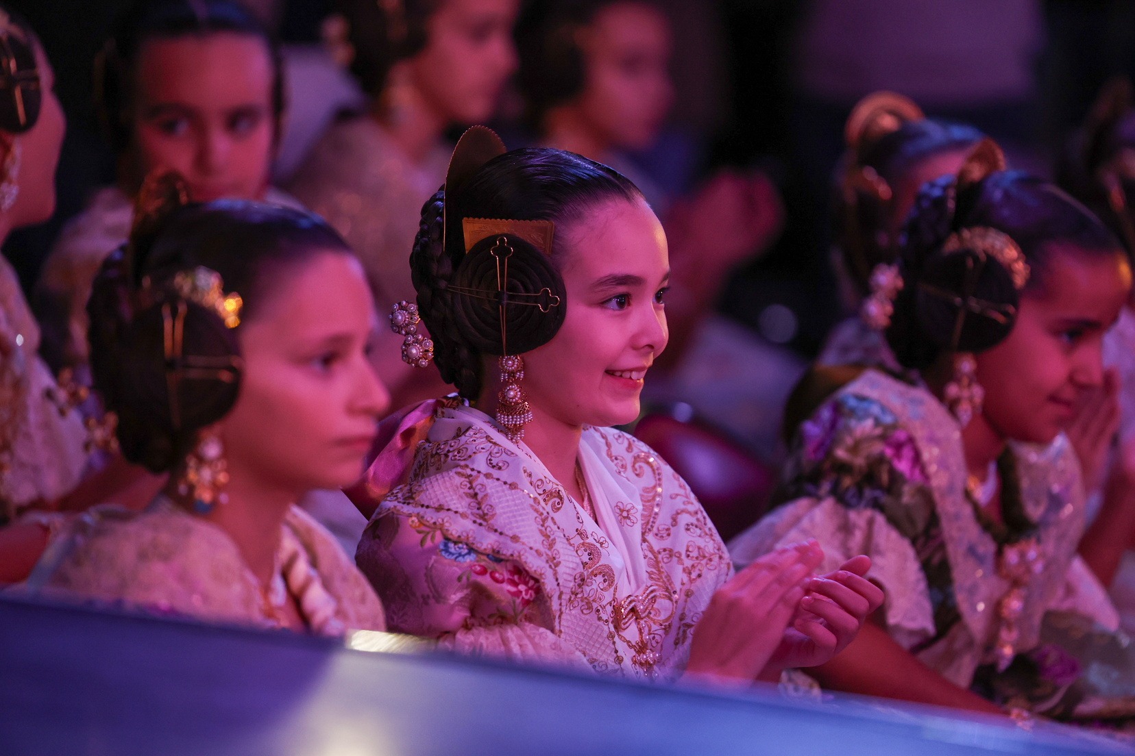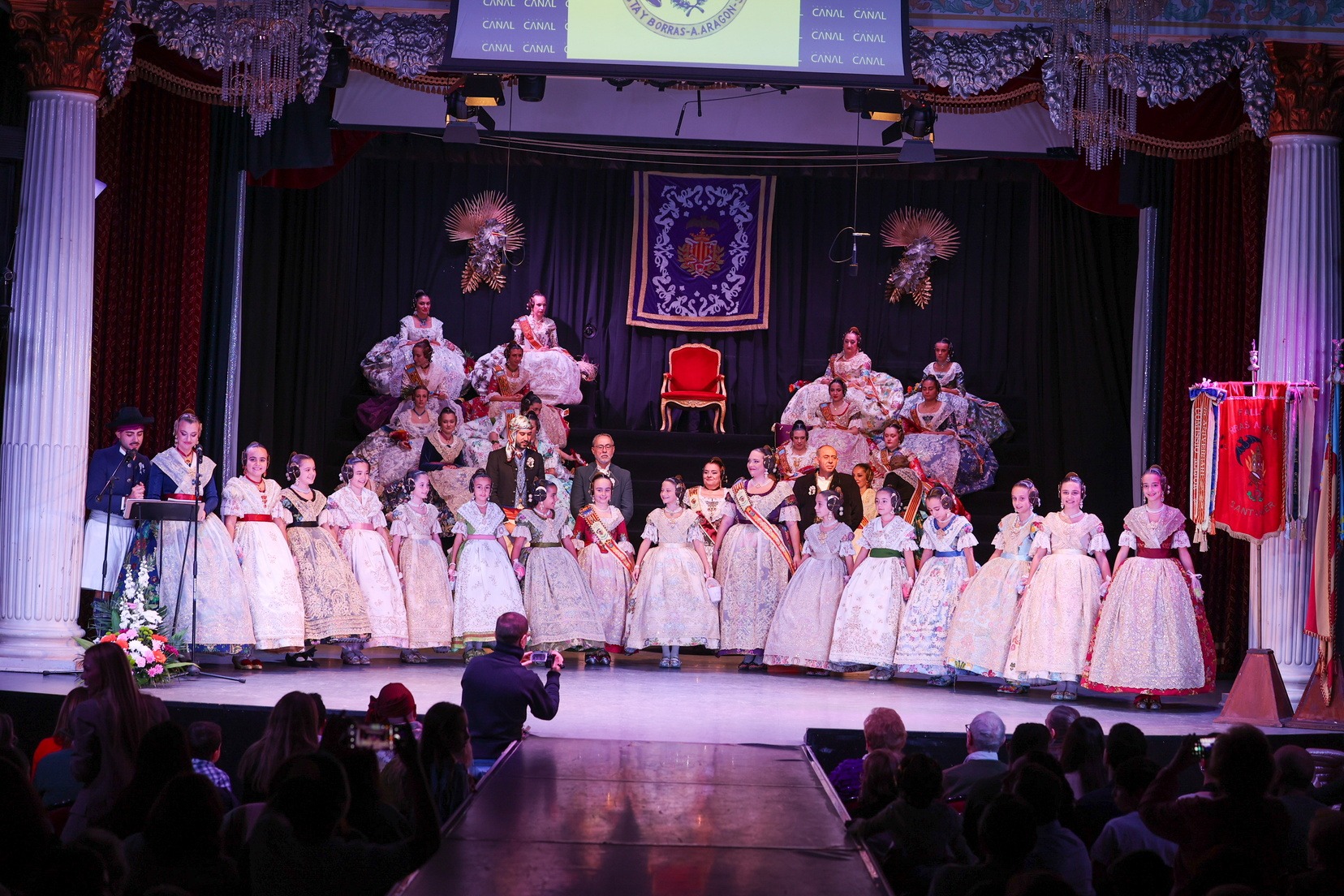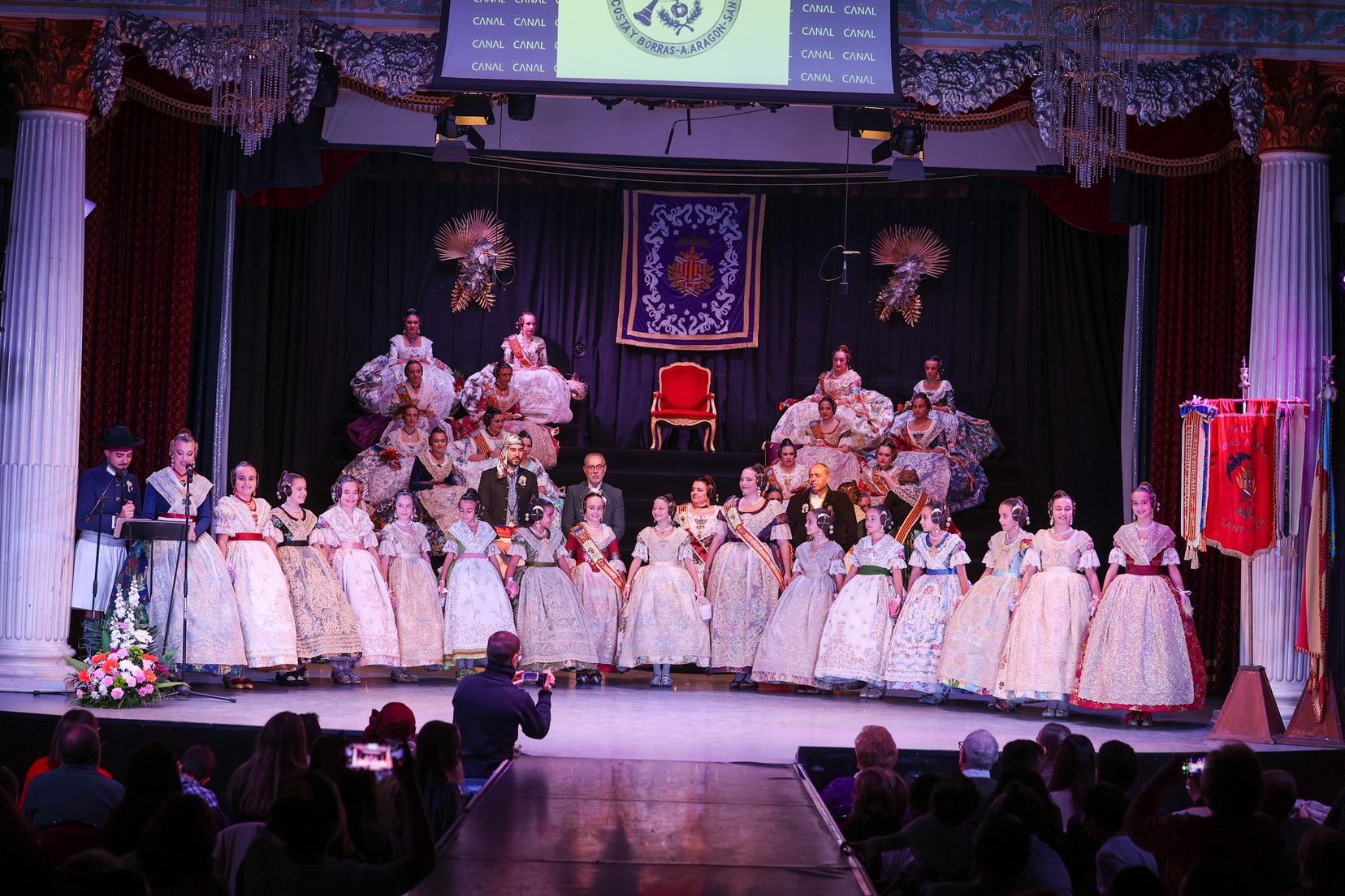 En primer lugar, la Fallera Mayor Infantil de Valencia y su Corte de Honor ha estado presente en la Exaltación de la falla Costa y Borrás-Agustina de Aragón, que este año cuenta con una componente en la Corte de Honor Infantil: Jimena Mompó Crespi. Las trece han acompañado los falleros y falleras de esta comisión del sector Jesús en la exaltación de Martina Castillo Salazar como fallera mayor infantil y de Andrea Moreno Ortega como fallera mayor, que han recibido posteriormente a nuestras máximas representantes en el escenario para agradecerles su presencia y arropar a Jimena en esta vuelta a casa tan especial.