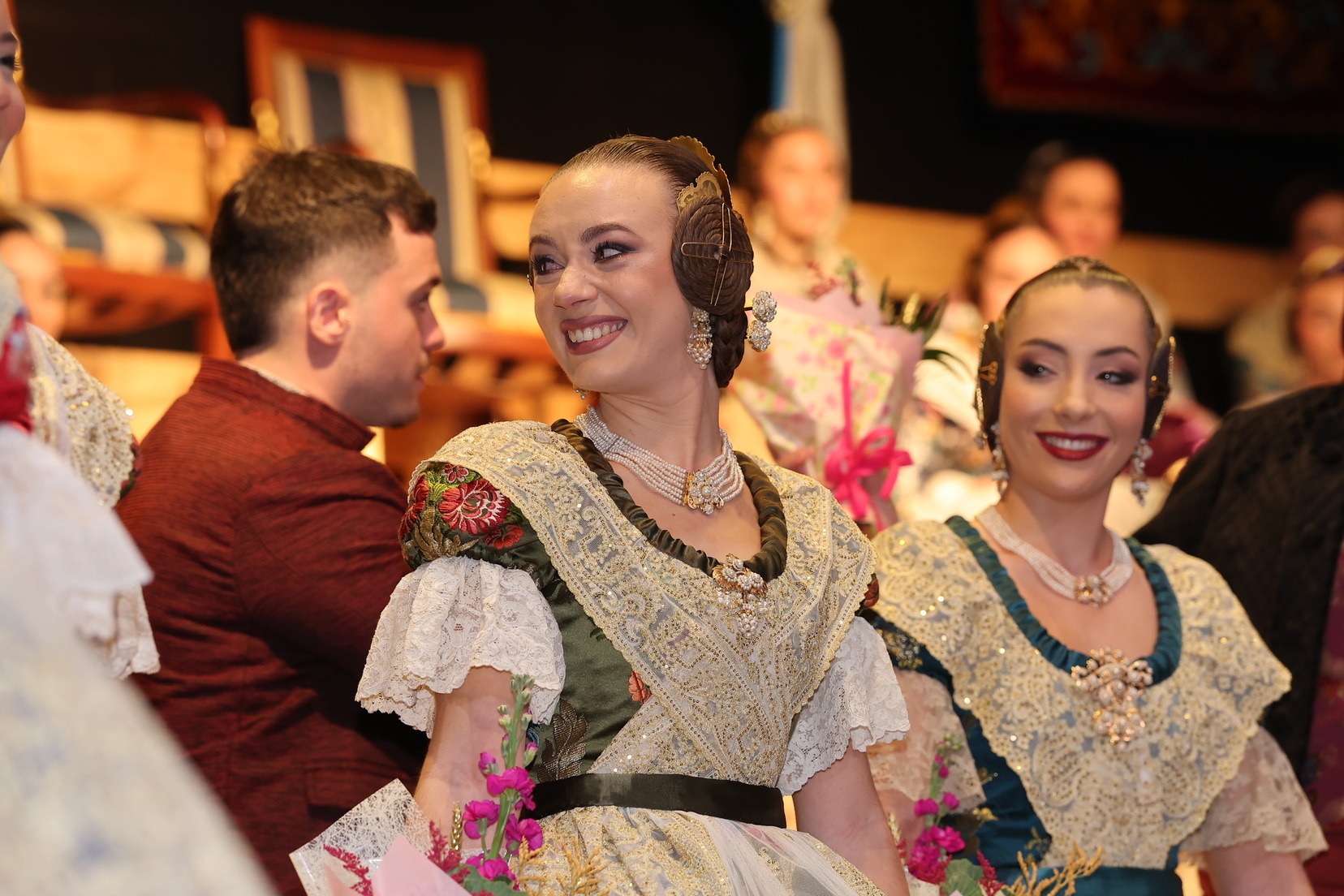 Por otro lado, Carmen Prades, Fallera Mayor de Valencia, y su Corte de Honor han acudido a la exaltación de las máximas representantes de la falla Carretera Escrivá-Cooperativa San Fernando, Isabel Montalvà Suñer y Lucía Sorolla Fillol. Un acto muy especial para Marta Capella, una de las componentes de la Corte de Honor de Carmen, que emocionada disfrutó de reencontrarse con su familia fallera en este acto tan especial para toda la comisión.