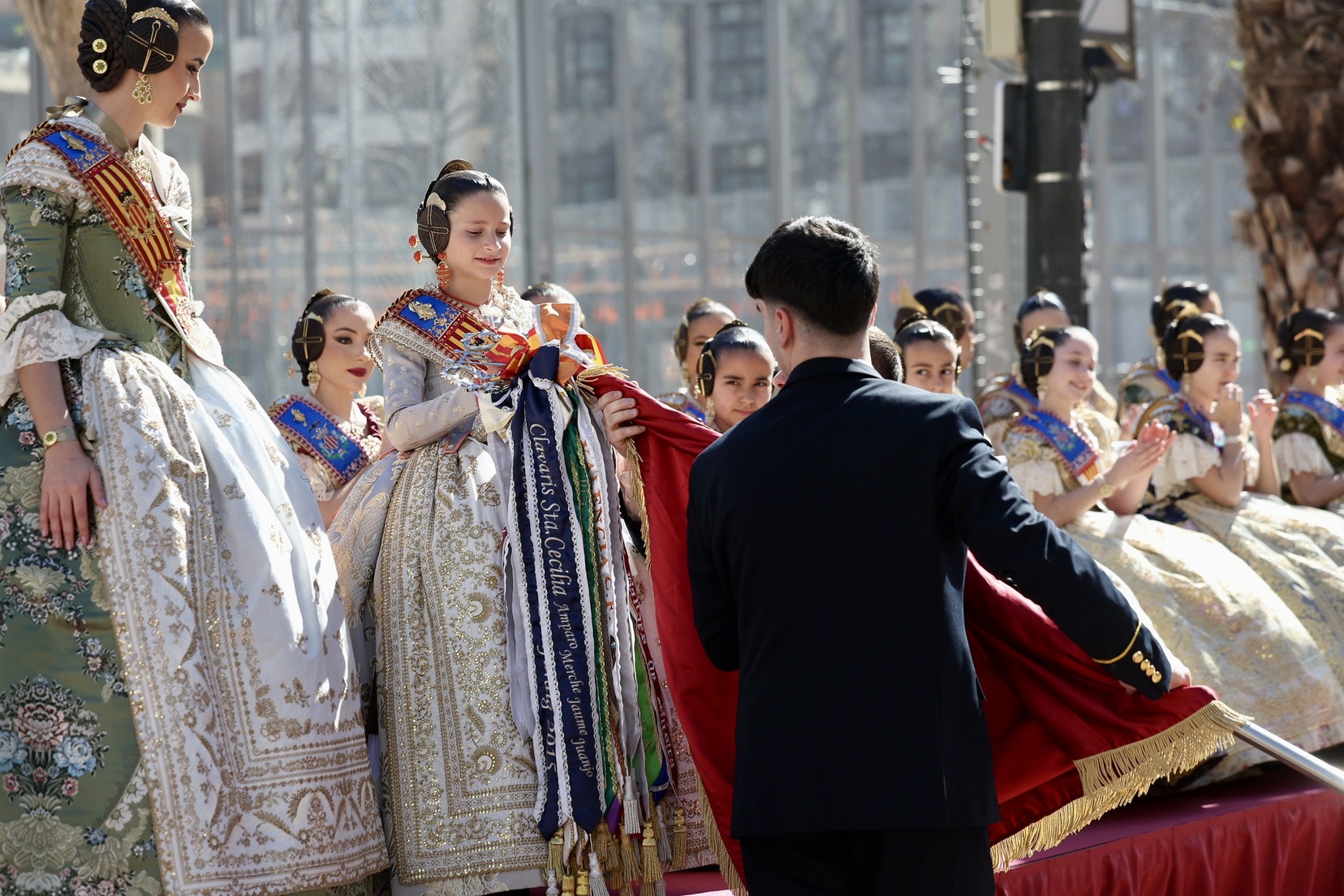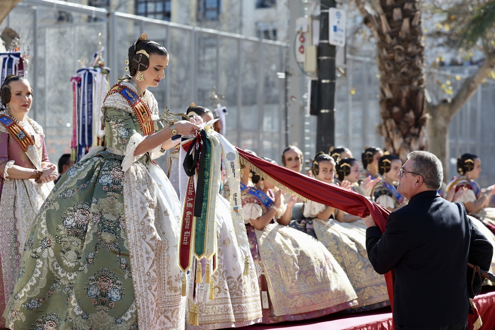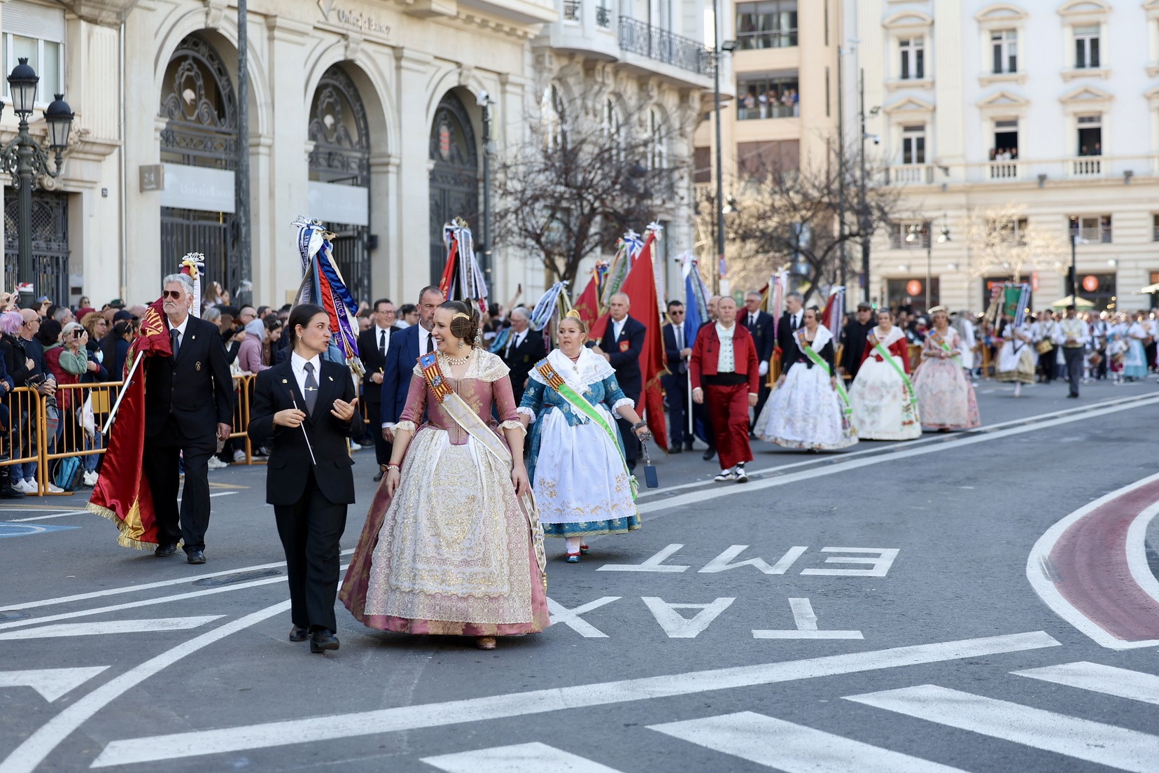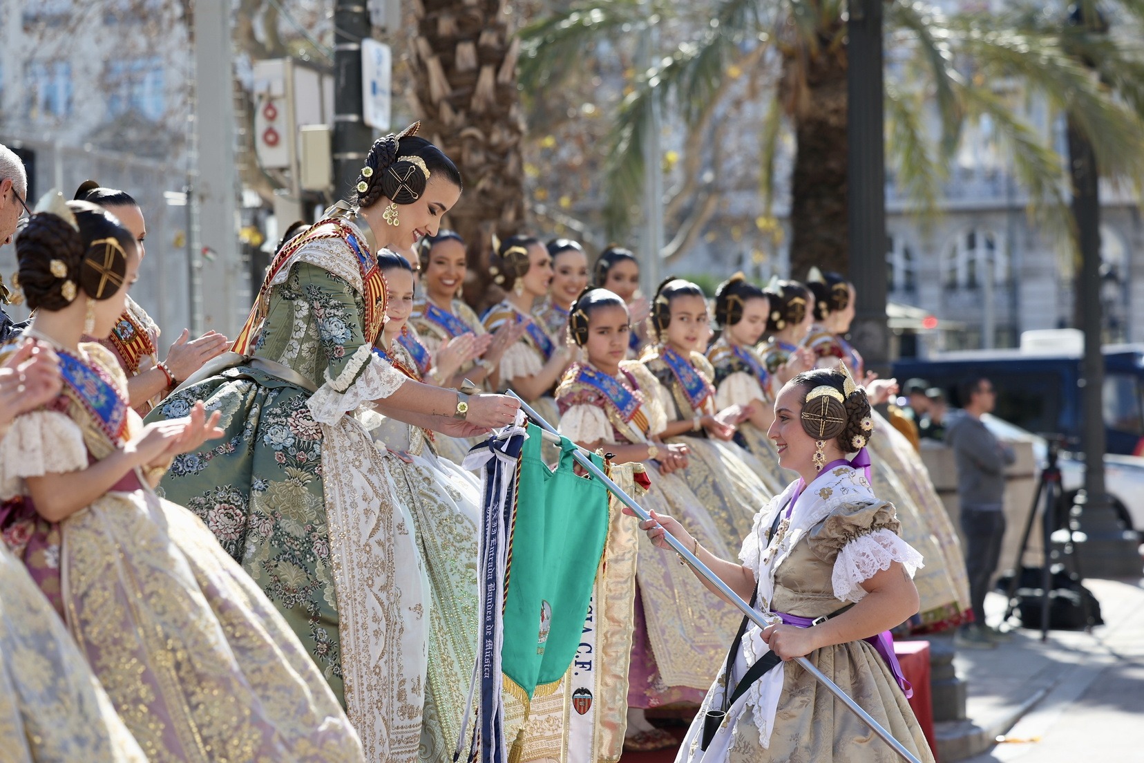 Al finalizar, ha llegado el momento más esperado de la entrada. Con la Plaza repleta y a pocos minutos de dar comienzo a la primera mascletà de las Fallas 2026, todas las Bandas de Música han interpretado al unísono ‘El Fallero’ bajo la dirección de Vivian Gutiérrez Abreu.