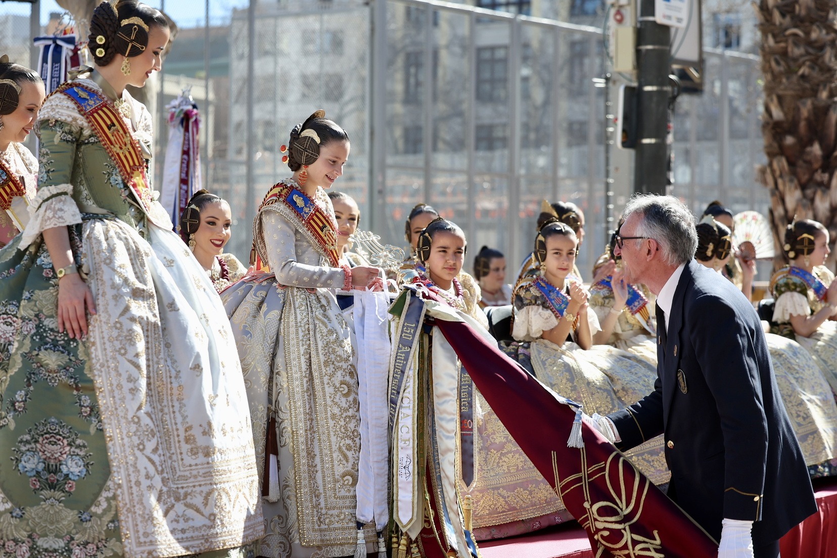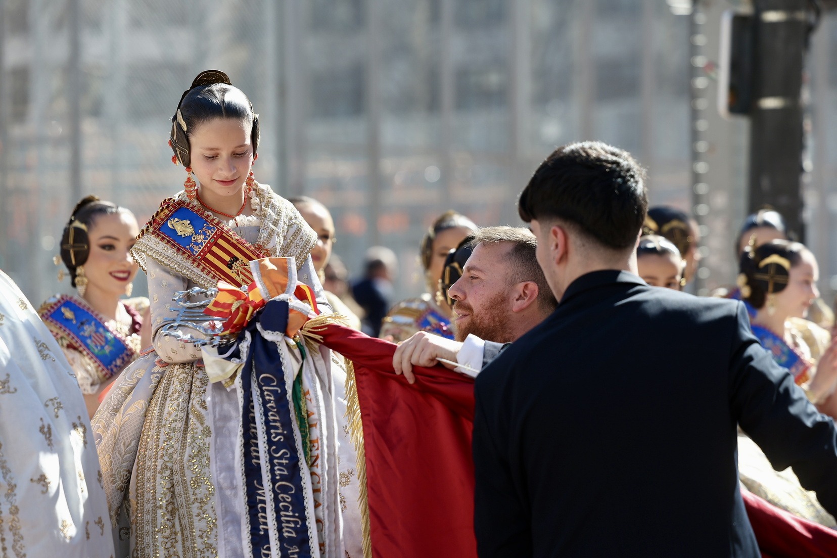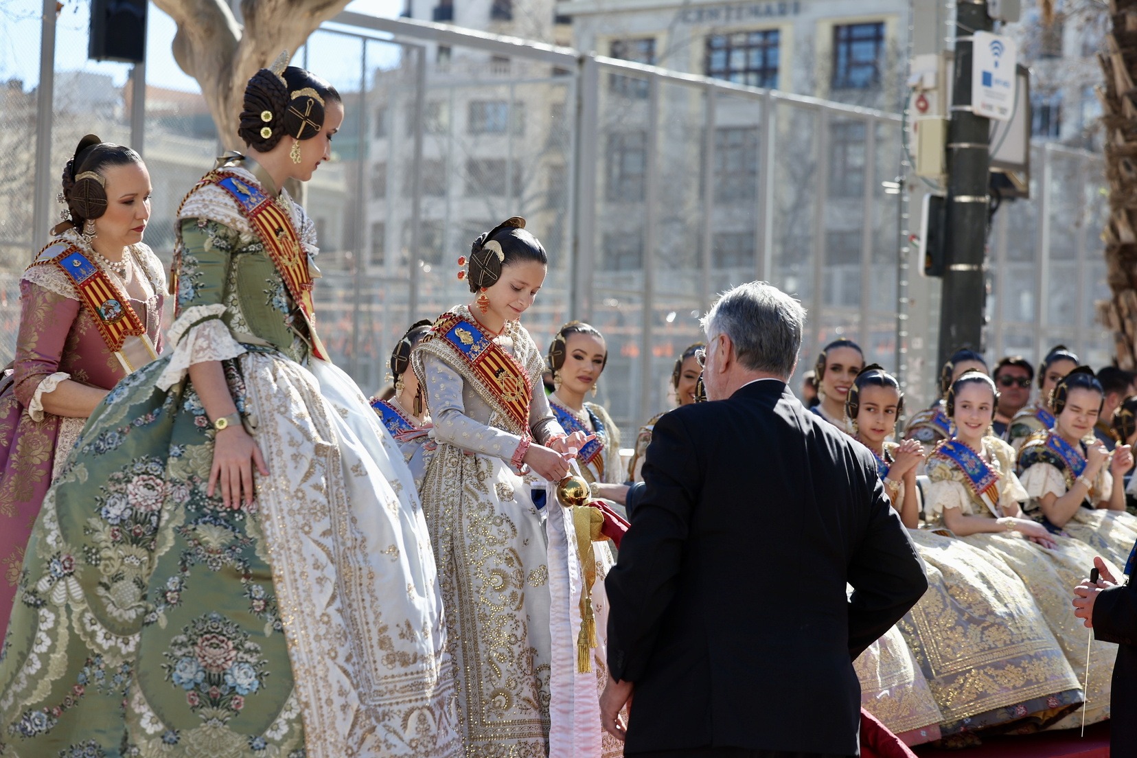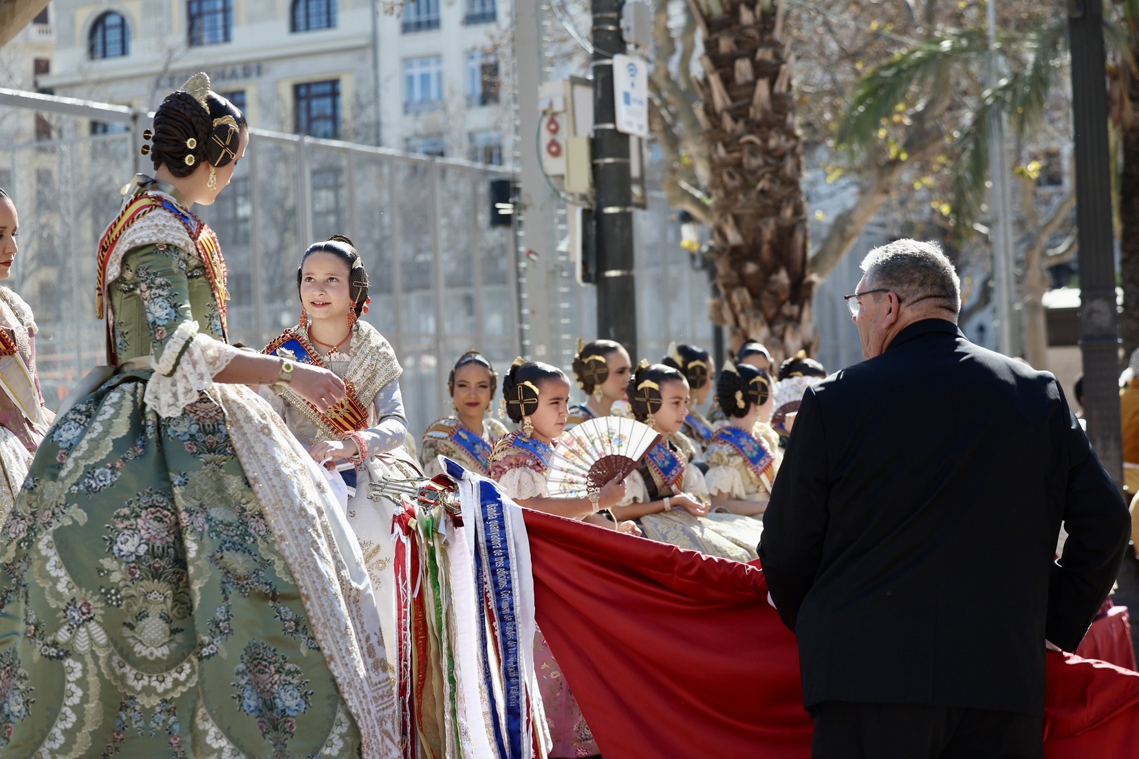 Al finalizar, ha llegado el momento más esperado de la entrada. Con la Plaza repleta y a pocos minutos de dar comienzo a la primera mascletà de las Fallas 2026, todas las Bandas de Música han interpretado al unísono ‘El Fallero’ bajo la dirección de Vivian Gutiérrez Abreu.
