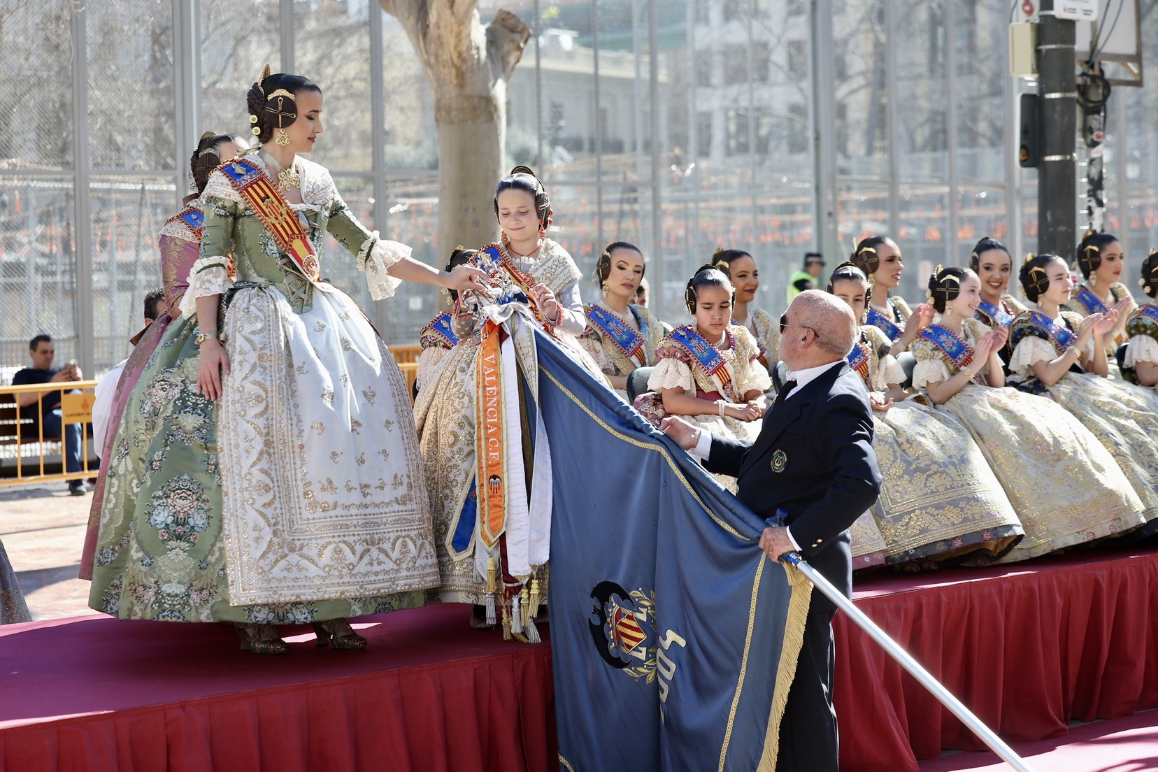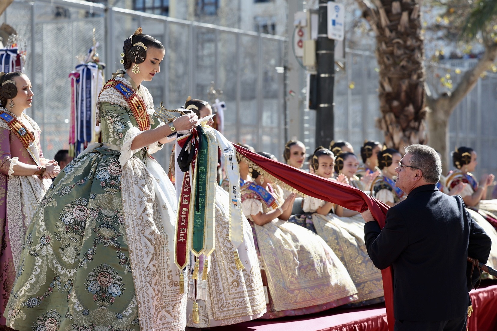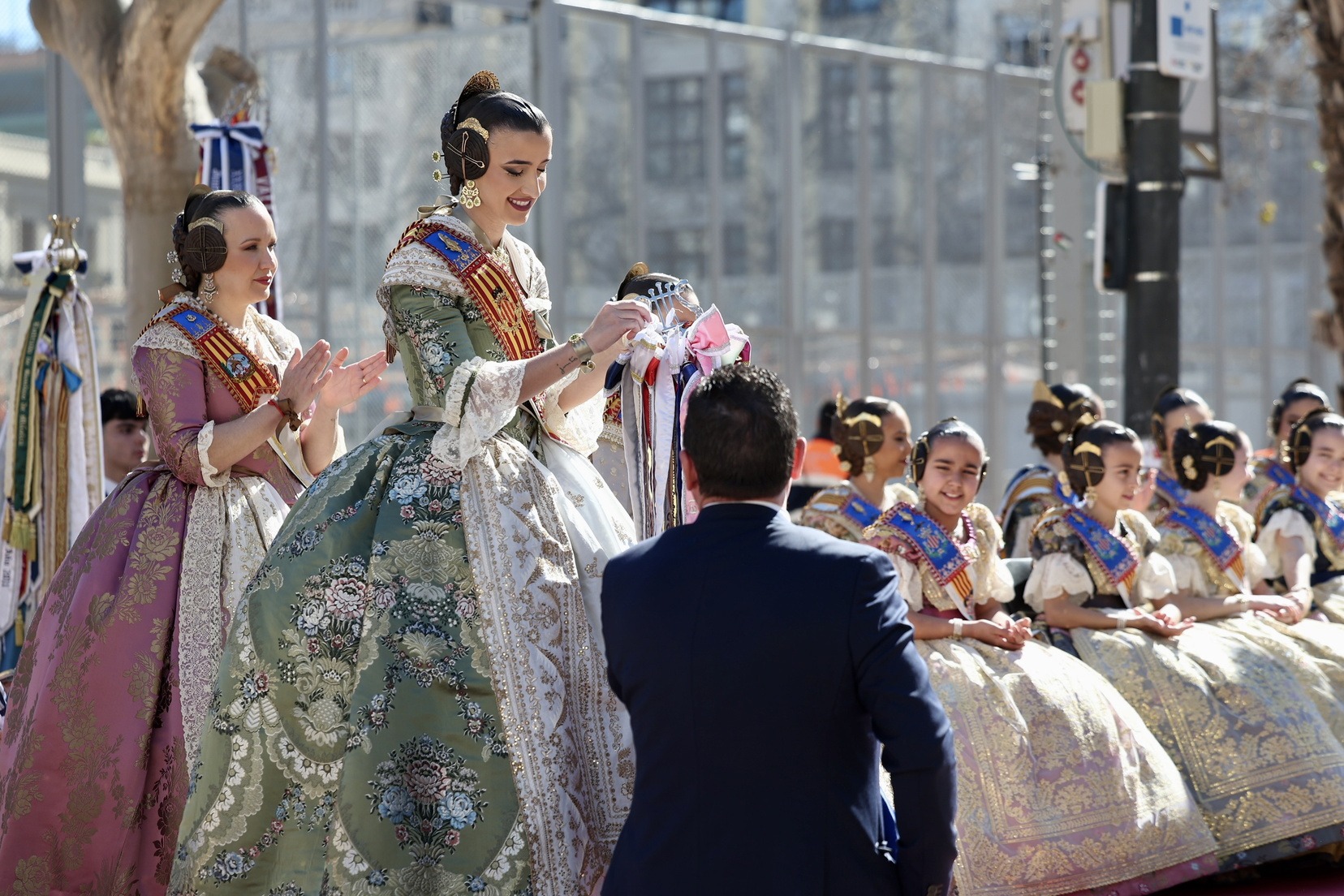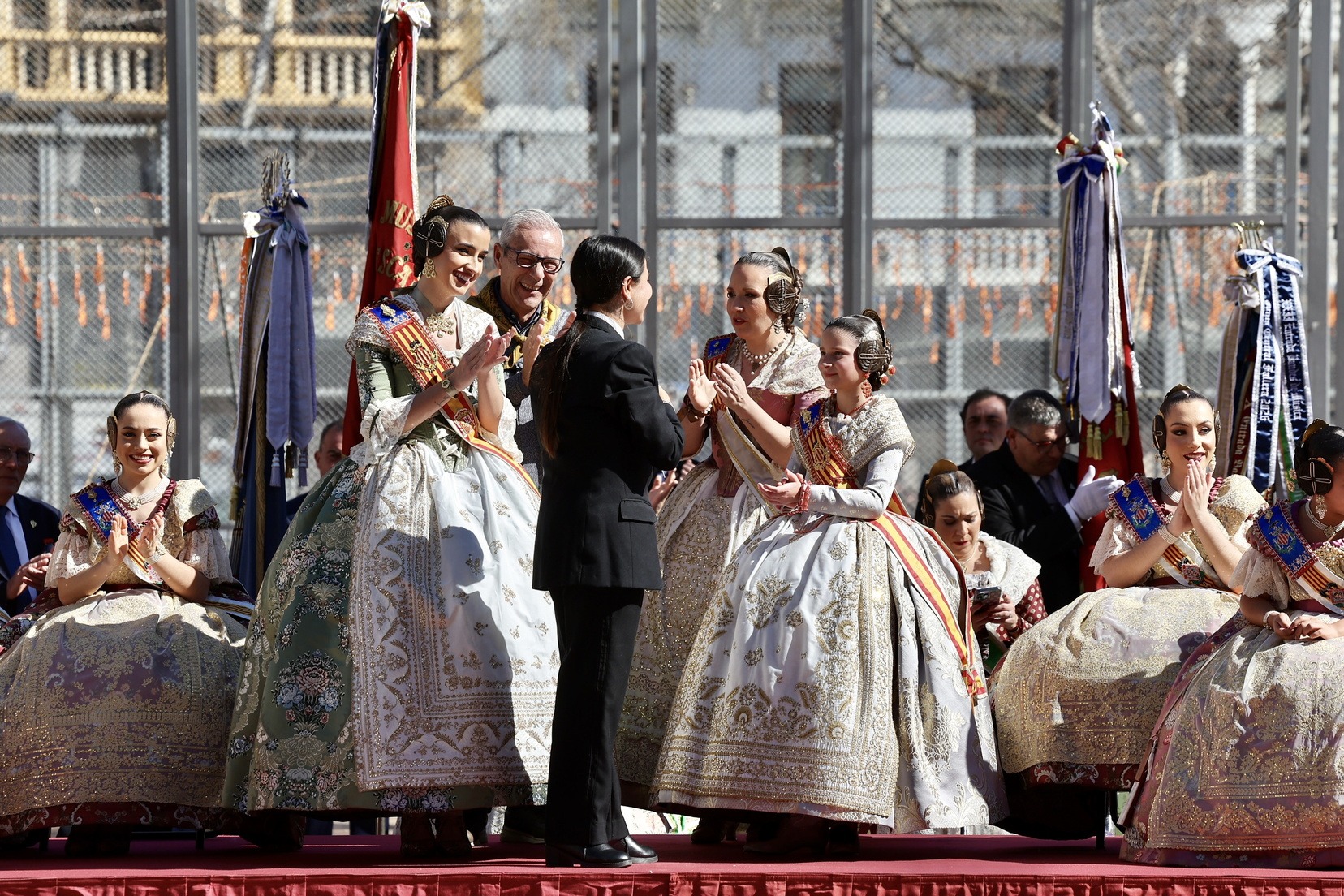 Al finalizar, ha llegado el momento más esperado de la entrada. Con la Plaza repleta y a pocos minutos de dar comienzo a la primera mascletà de las Fallas 2026, todas las Bandas de Música han interpretado al unísono ‘El Fallero’ bajo la dirección de Vivian Gutiérrez Abreu.