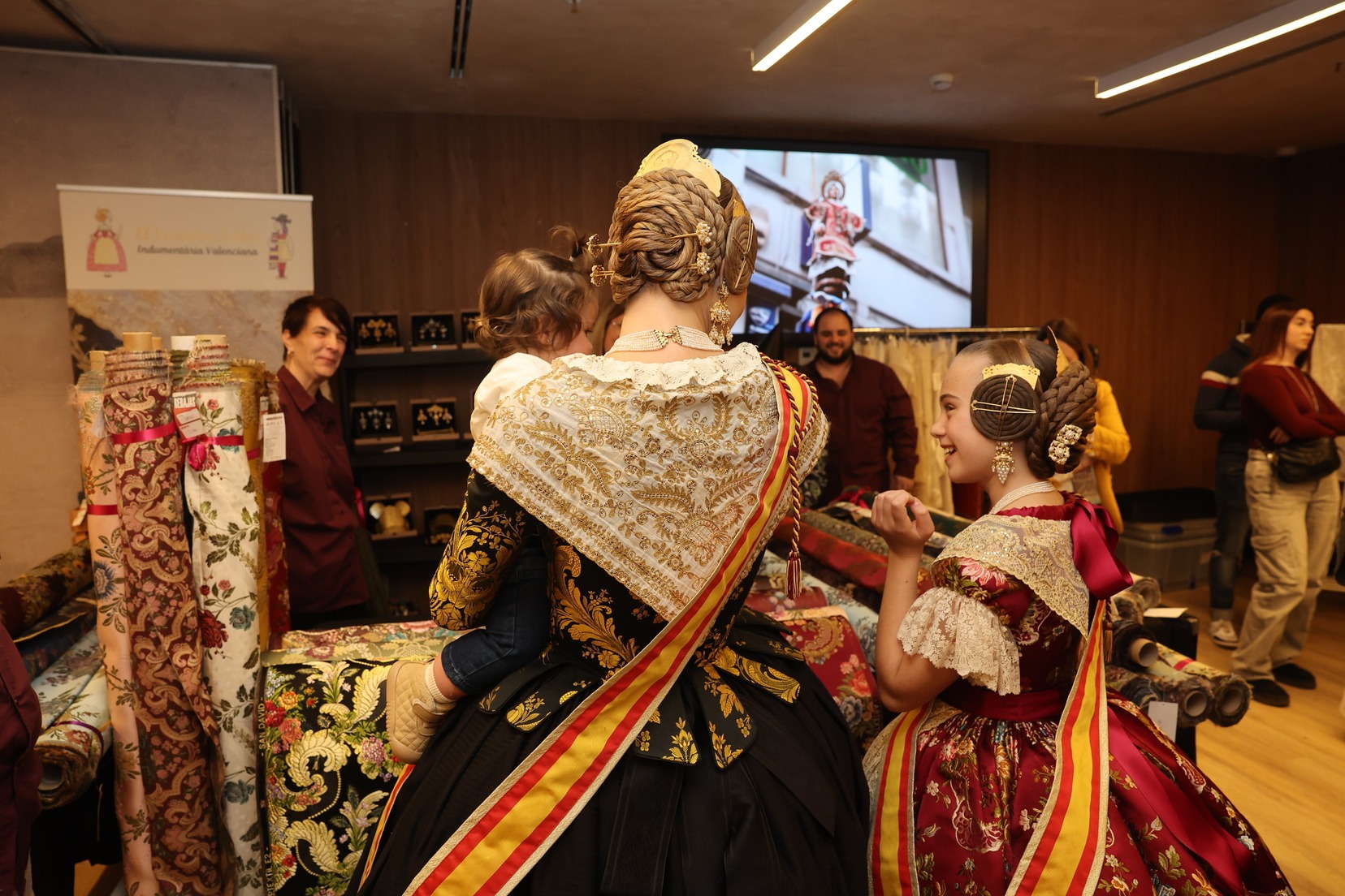 Las Falleras Mayores de Valencia, Berta Peiró y Lucía García, han inaugurado en Novotel Valencia Lavant, el showroom de indumentaria valenciana organizado por el Gremio de Sastres y Modistas de la Comunidad Valenciana.