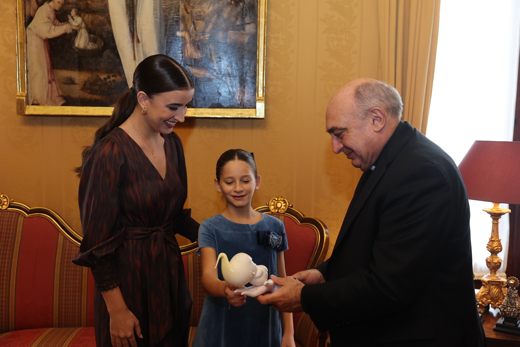 Durante el encuentro, que se encuadra en la agenda oficial de visitas de las máximas representantes, las Falleras Mayores han firmado el Libro de Honor del Arzobispado como testigo de este acto de agradecimiento. Asimismo, ha tenido lugar un intercambio de obsequios como muestra de cordialidad y respeto mutuo.