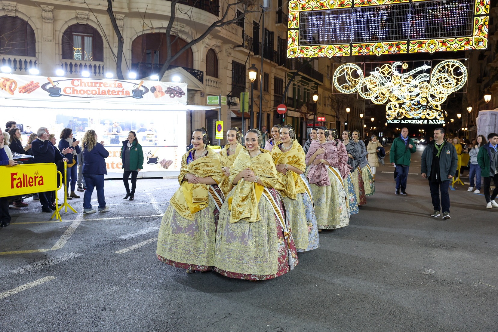 Durante el recorrido, las Falleras Mayores de Valencia y sus Cortes de Honor han podido conocer de primera mano el trabajo realizado por las comisiones para llenar sus calles de luz durante las Fallas, compartiendo con falleros y falleras este reconocimiento al esfuerzo y dedicación que supone la instalación de estos espectáculos de iluminación.