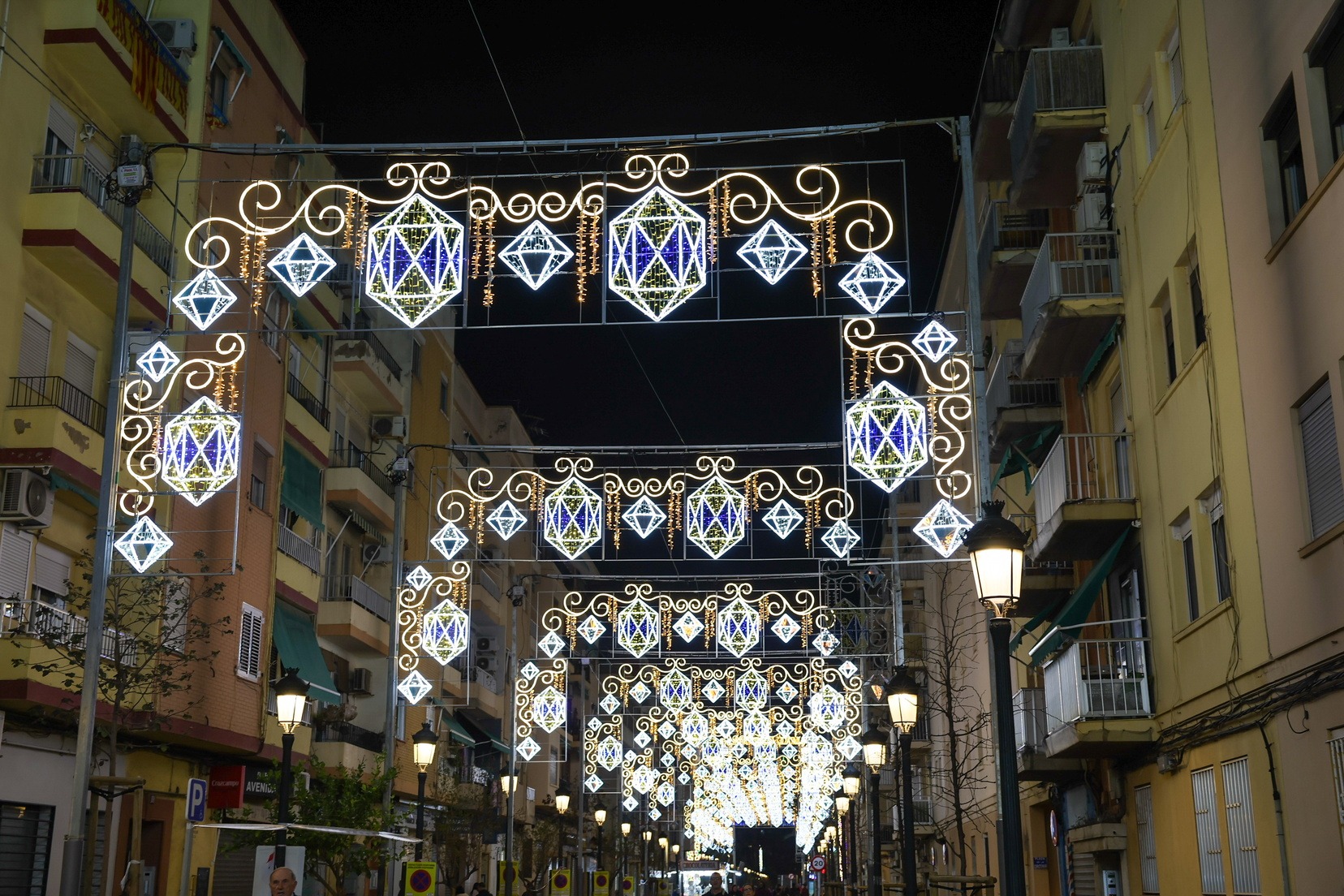 Las Falleras Mayores de Valencia, Carmen Prades Gil y Marta Mercader, acompañadas por sus Cortes de Honor, han realizado un recorrido por varias demarcaciones falleras para visitar a las comisiones galardonadas en el Concurso de Calles Iluminadas y contemplar de cerca los montajes de luz junto a los representantes de cada comisión.