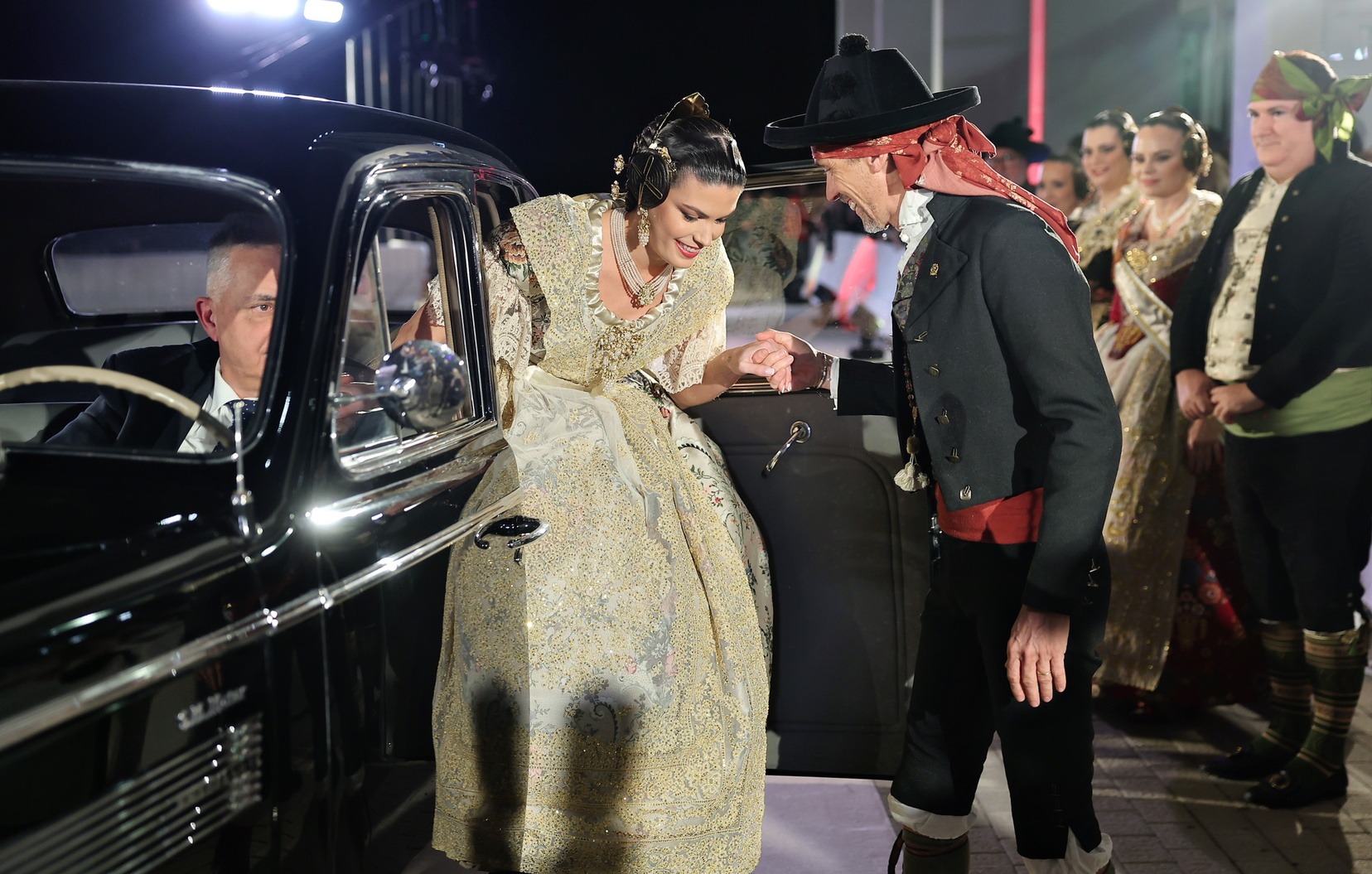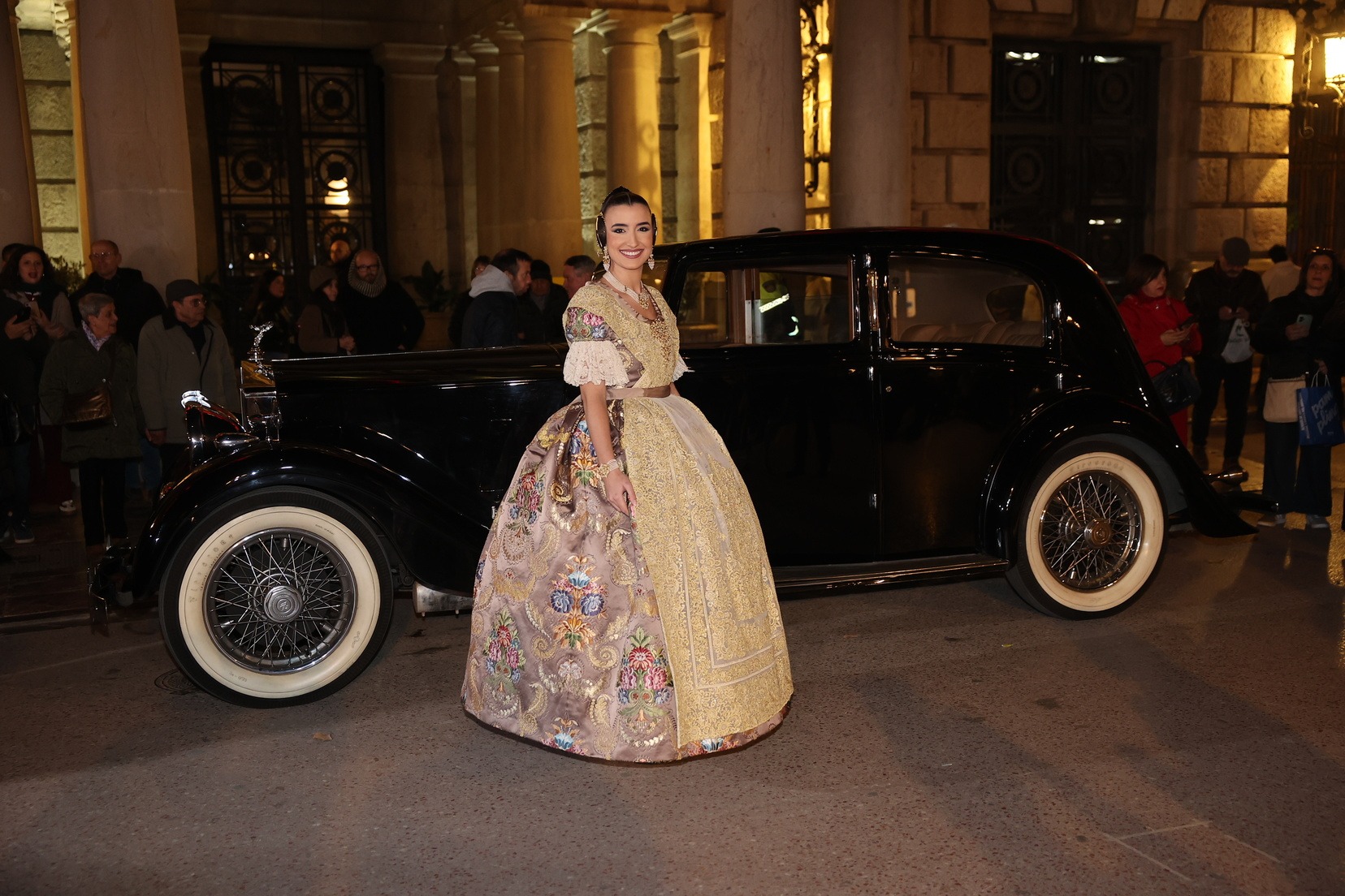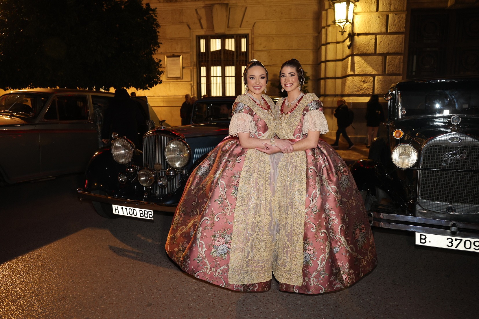Para este acto, Junta Central Fallera ha contado con una selección de vehículos de alta gama fabricados entre 1928 y 1952, cuidadosamente conservados por los socios del club. Las Cortes de Honor han sido trasladadas en distintos modelos históricos, mientras que el vehículo destinado a las Falleras Mayores de Valencia ha sido un Rolls Royce negro de 1938, que ha aportado solemnidad y elegancia a la llegada.