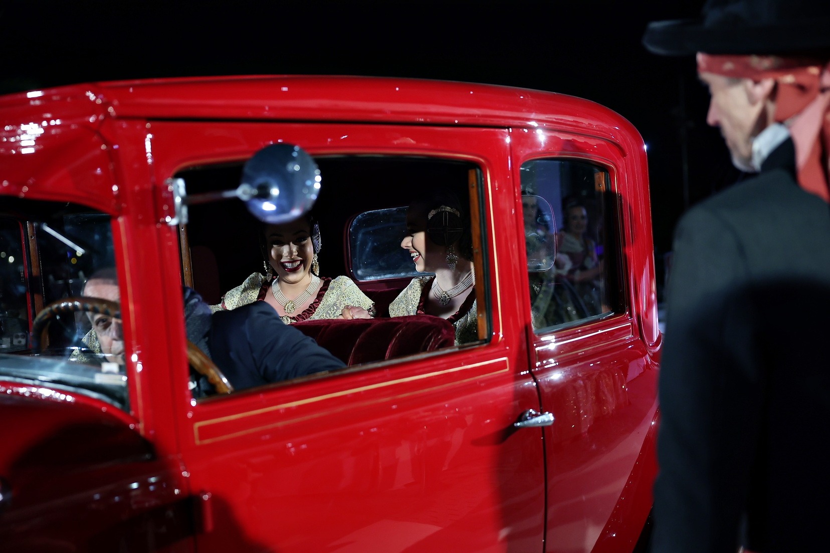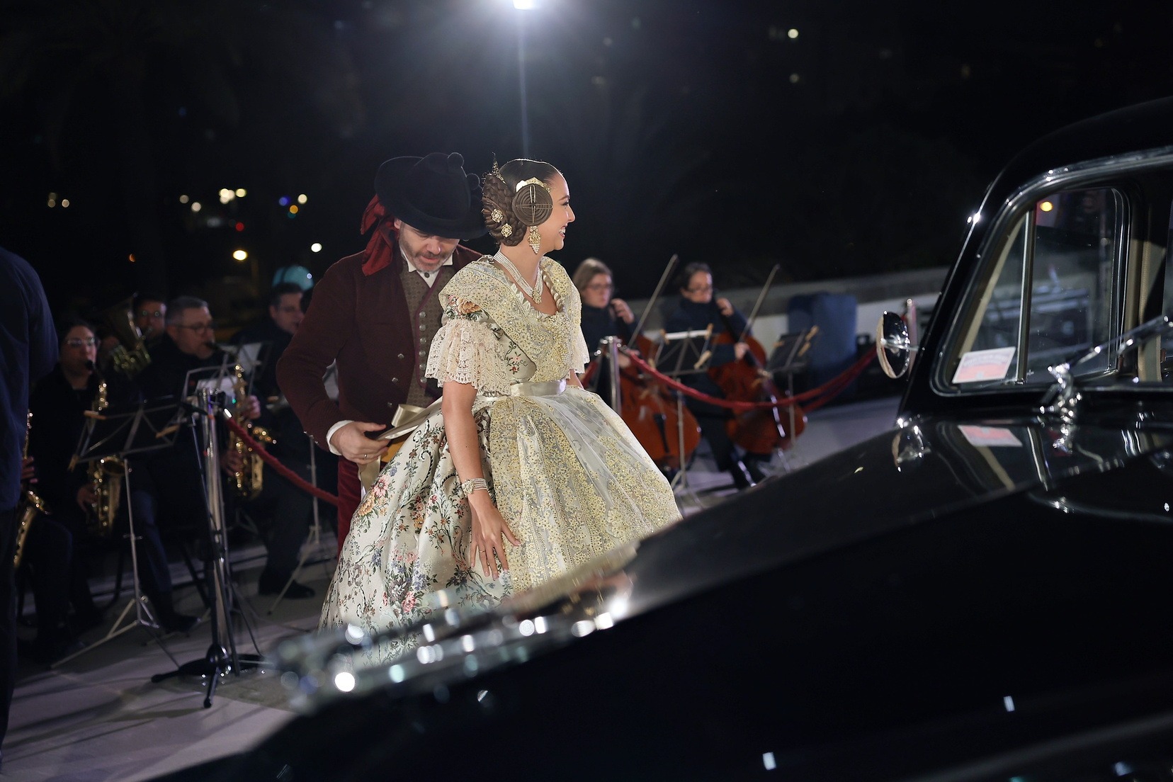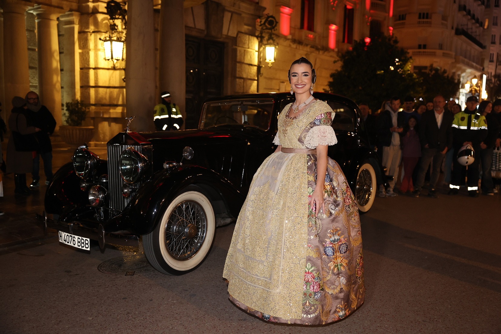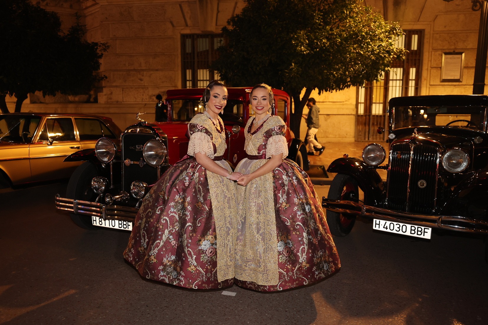 Para este acto, Junta Central Fallera ha contado con una selección de vehículos de alta gama fabricados entre 1928 y 1952, cuidadosamente conservados por los socios del club. Las Cortes de Honor han sido trasladadas en distintos modelos históricos, mientras que el vehículo destinado a las Falleras Mayores de Valencia ha sido un Rolls Royce negro de 1938, que ha aportado solemnidad y elegancia a la llegada.