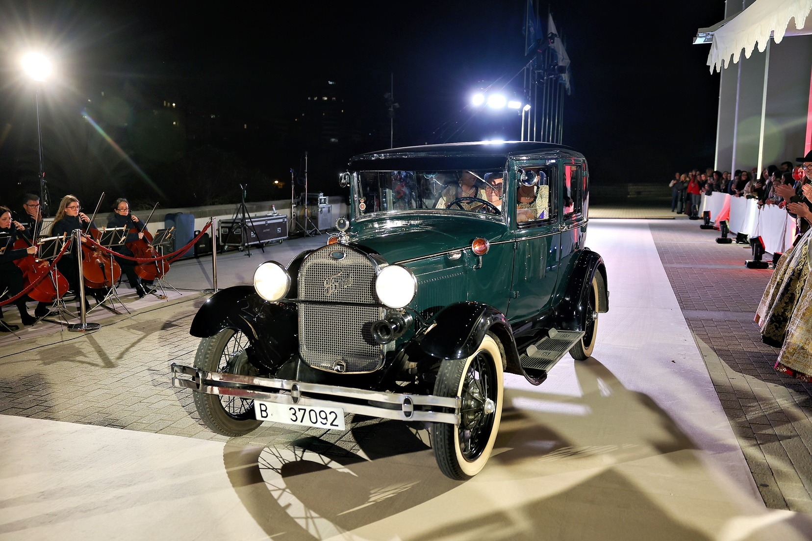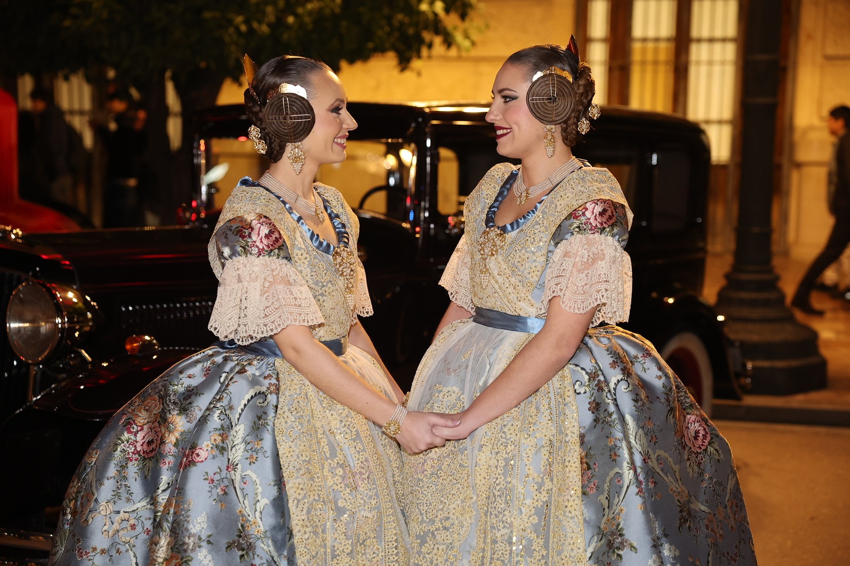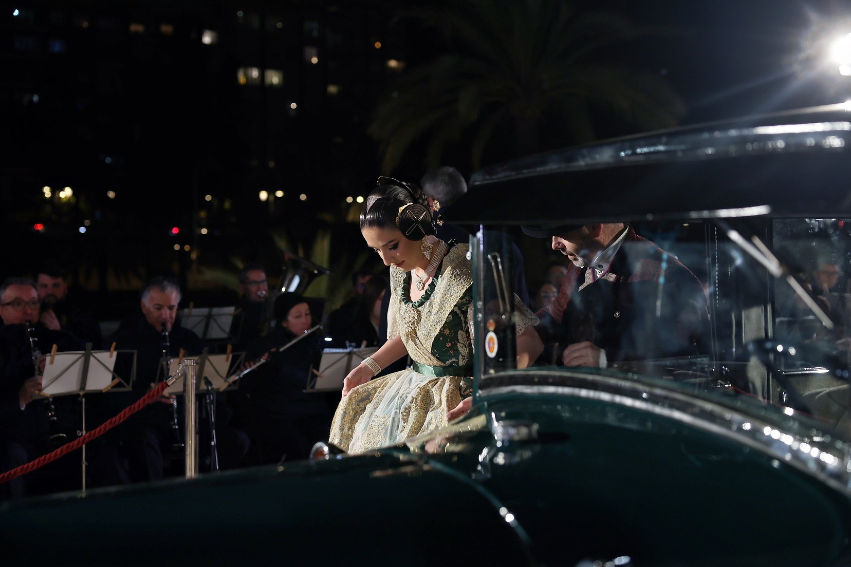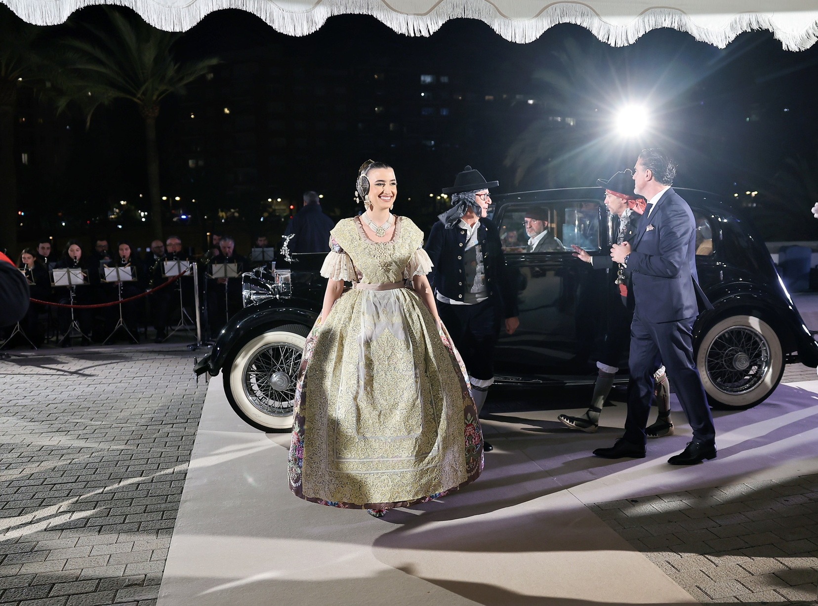 La llegada en coches clásicos ha reforzado el carácter simbólico del acto y ha convertido el acceso al Palau de la Música en una estampa de gran valor histórico y visual, enmarcando uno de los momentos más representativos de la Exaltación.