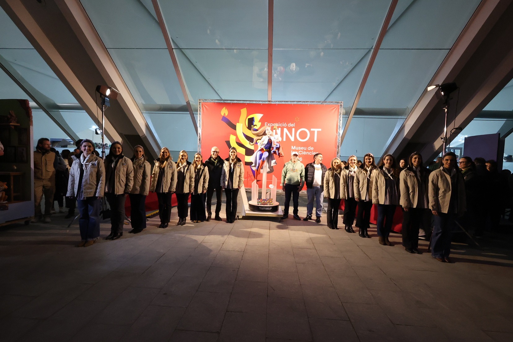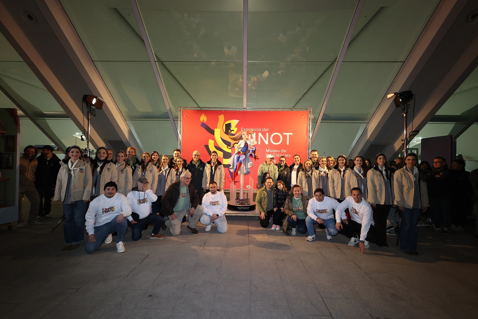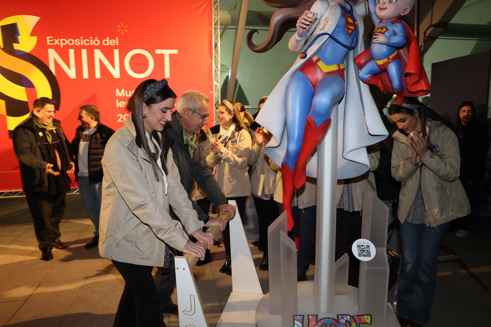 Por su parte, el ninot de la falla municipal grande —bajo el mismo lema de la falla, “Hope”— ha sido entregado por parte de los artistas Alejandro Santaeulalia y Vicente Llácer, que firman esta figura centrada en la lucha contra el cáncer infantil, representada por una profesional sanitaria con atuendo de superhéroe junto a un niño que simboliza la esperanza y la superación. Una pieza que ha cautivado a Carmen Prades y su Corte de Honor.