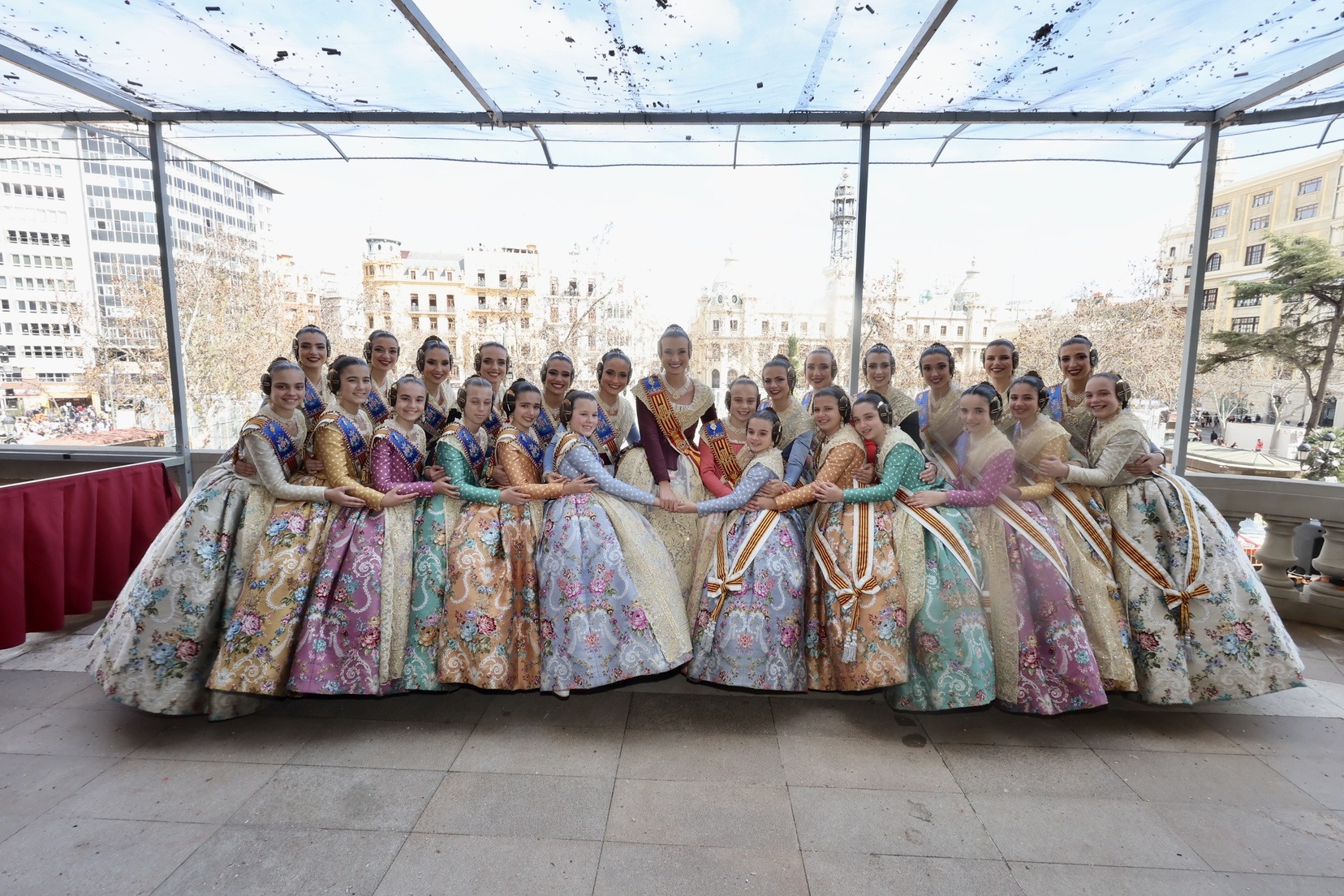 En el Balcón del Ayuntamiento, las Falleras Mayores de Valencia, Berta Peiró y Lucía García, acompañadas por sus Cortes de Honor y de la alcaldesa de nuestra ciudad, María José Catalá, y Santi Ballester, concejal de Fallas y presidente de Junta Central Fallera, han vivido con mucha emoción esta última mascletà con la que se han despedido de la cita diaria con la pólvora.