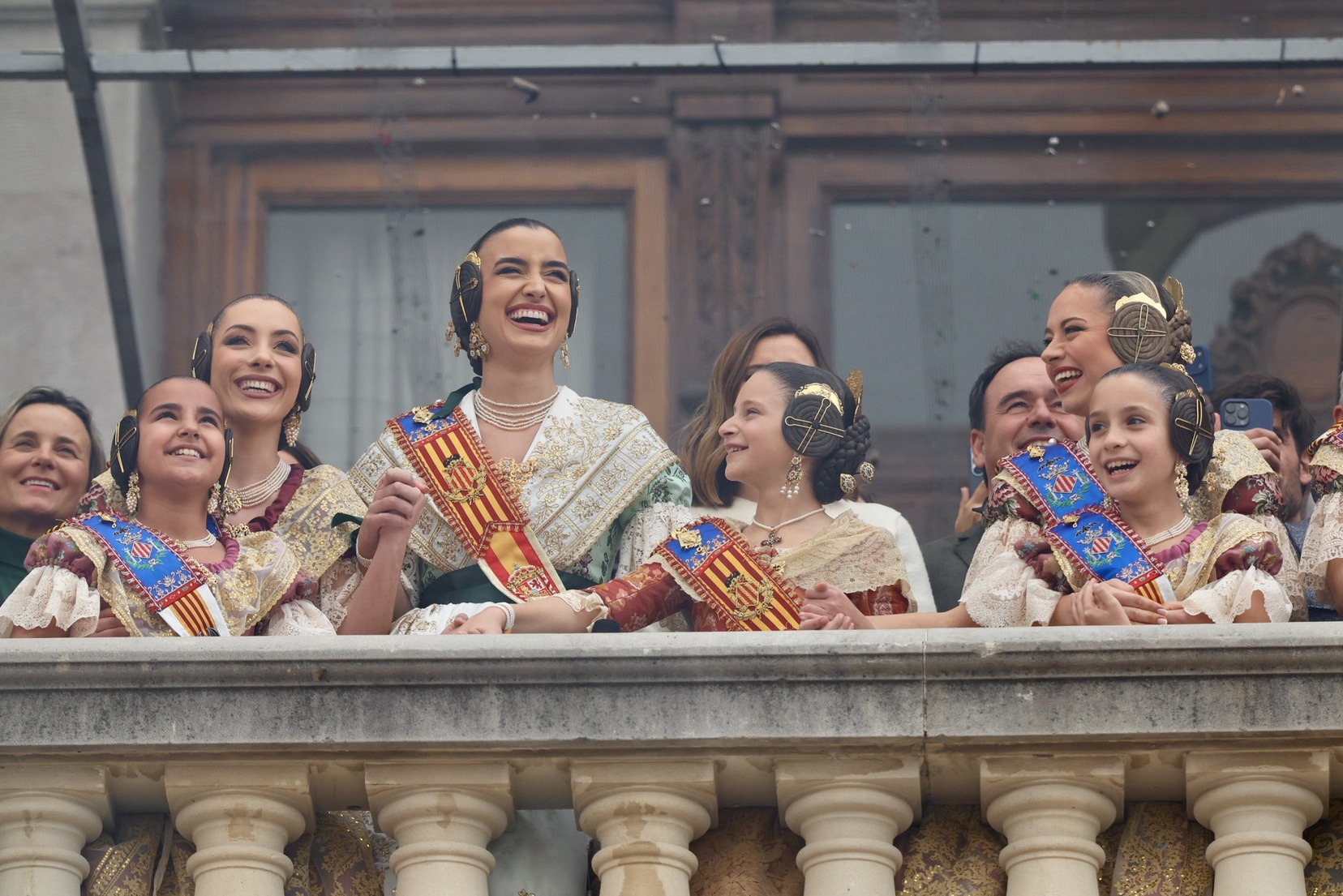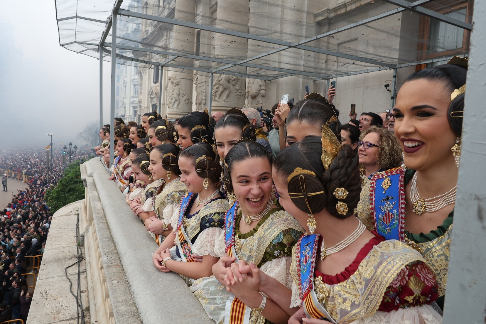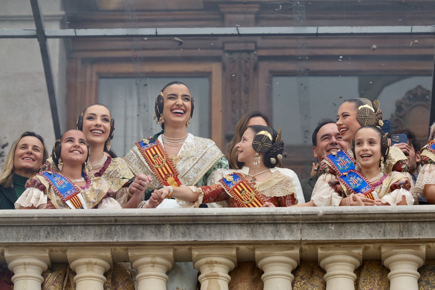 En el Balcón del Ayuntamiento, las Falleras Mayores de Valencia, Carmen Prades y Marta Mercader, han vivido con mucha emoción esta cuarta mascletà de marzo, acompañadas por sus Cortes de Honor y de la alcaldesa de nuestra ciudad, María José Catalá, y Santi Ballester, concejal de Fallas y presidente de Junta Central Fallera.