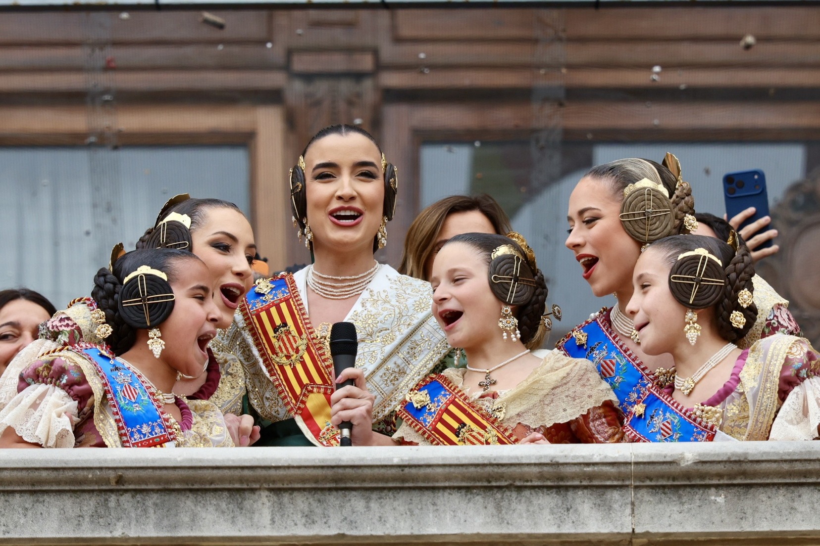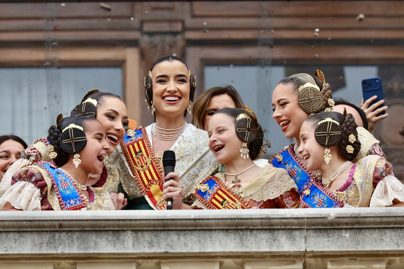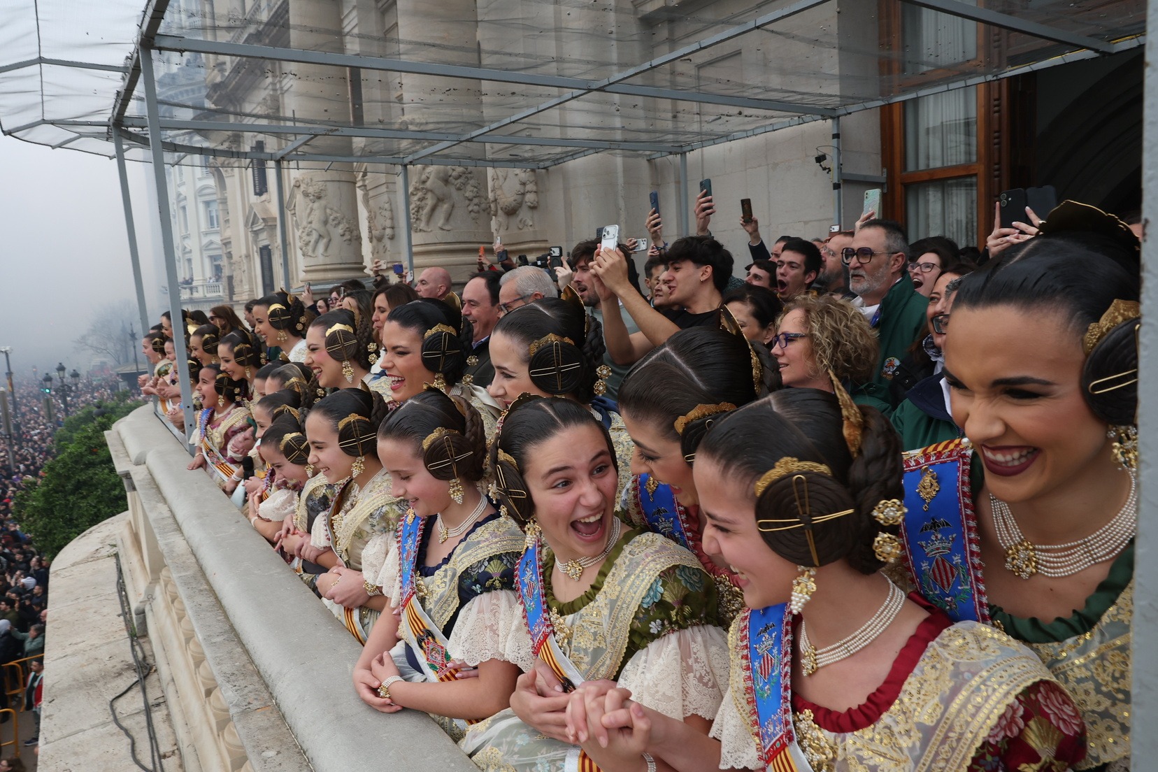 En el Balcón del Ayuntamiento, las Falleras Mayores de Valencia, Carmen Prades y Marta Mercader, han vivido con mucha emoción esta cuarta mascletà de marzo, acompañadas por sus Cortes de Honor y de la alcaldesa de nuestra ciudad, María José Catalá, y Santi Ballester, concejal de Fallas y presidente de Junta Central Fallera.