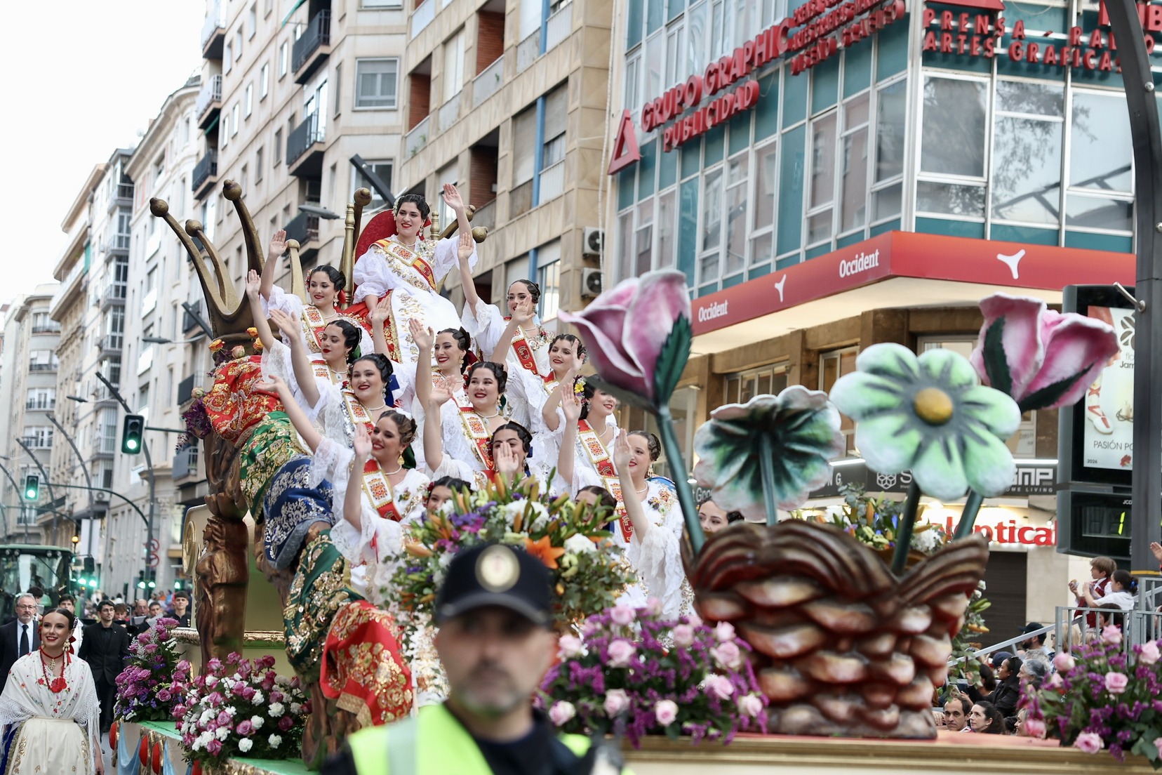 Murcia continúa con las celebraciones de sus Fiestas de la Primavera y nuestras Falleras Mayores de Valencia, Carmen Prades y Marta Mercader, siguen disfrutando de ellas y acompañando a sus Reinas, Ángela Muñoz y Leonor Antón.