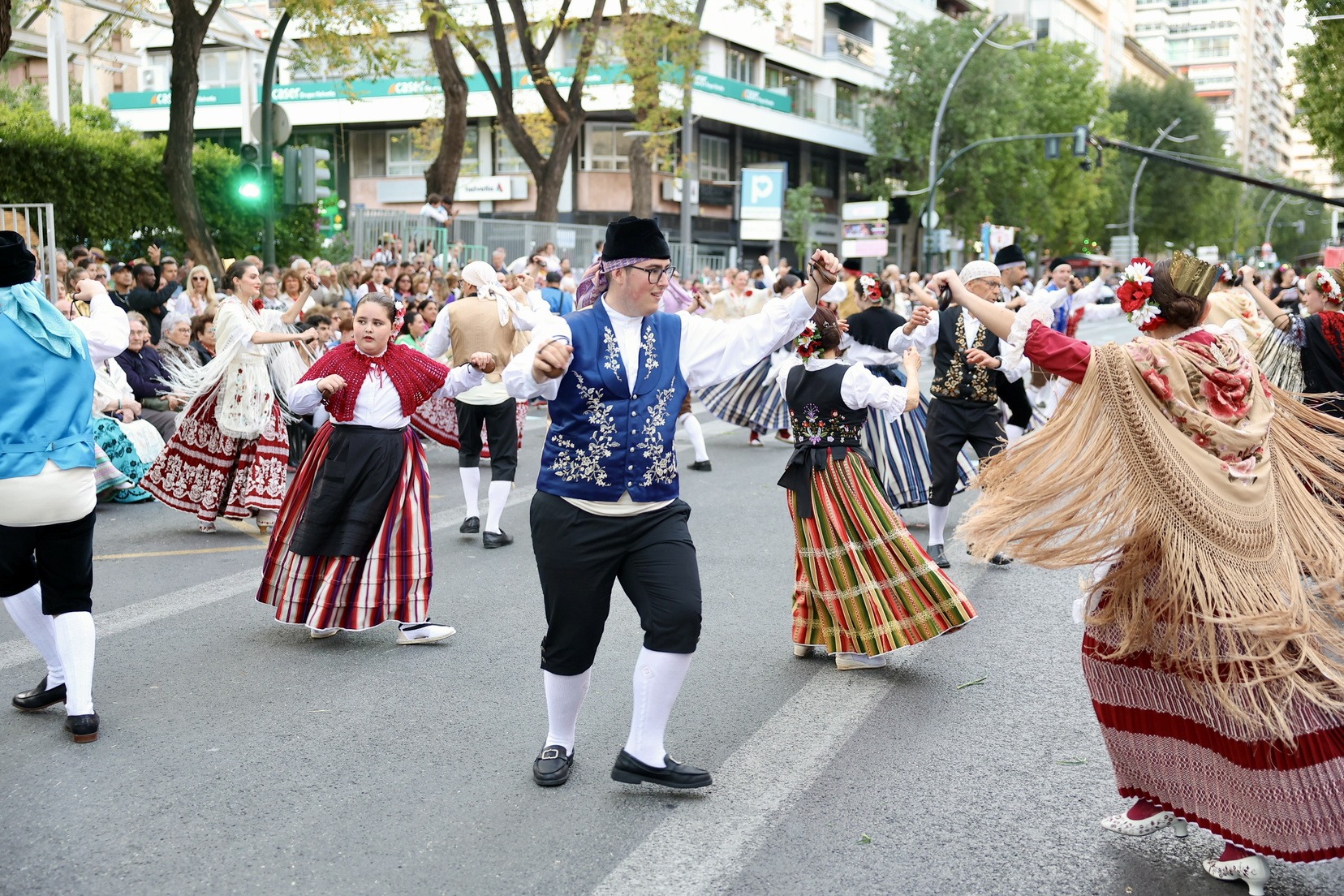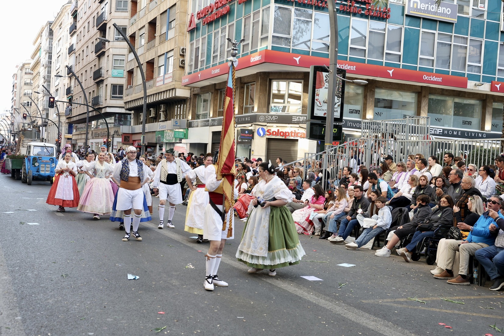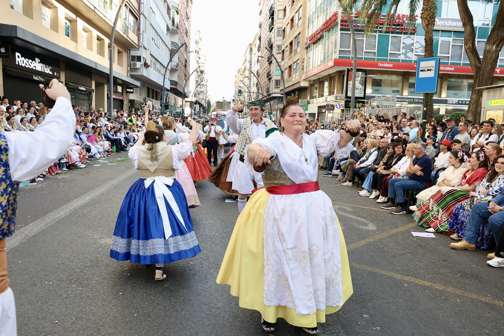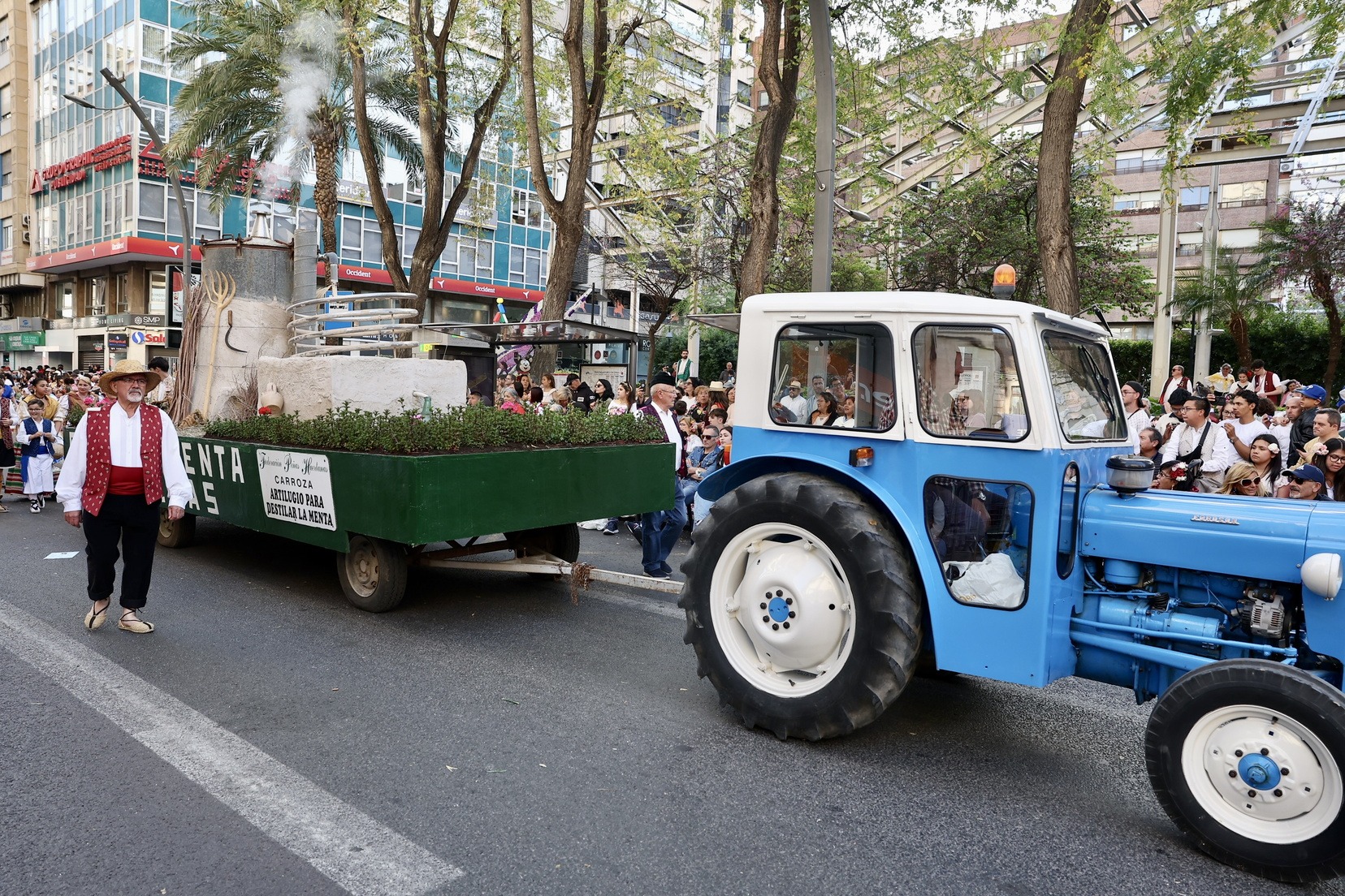 La apertura del desfile ha corrido a cargo de la Unidad de Música del Mando Aéreo vinculada a la Academia General del Aire y del Espacio. A continuación, bandas de música, gigantes y cabezudos, grupos de danzas y todas las carrozas que, como cada año, han llenado las calles de la ciudad de folklore, cultura y tradición, mostrando escenas cotidianas de la huerta y sus oficios típicos.