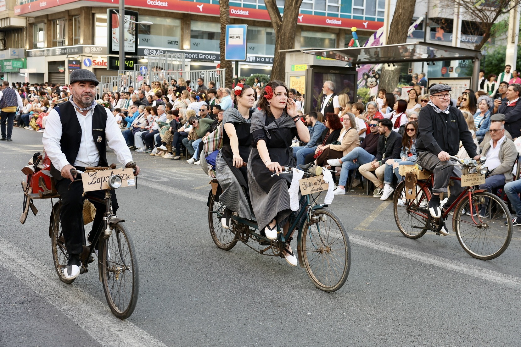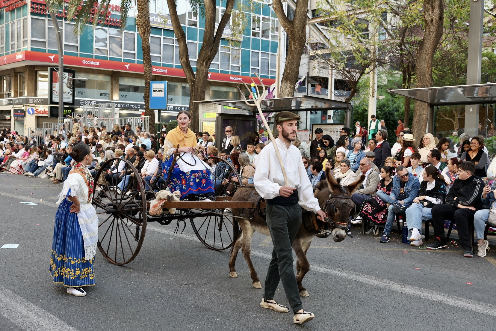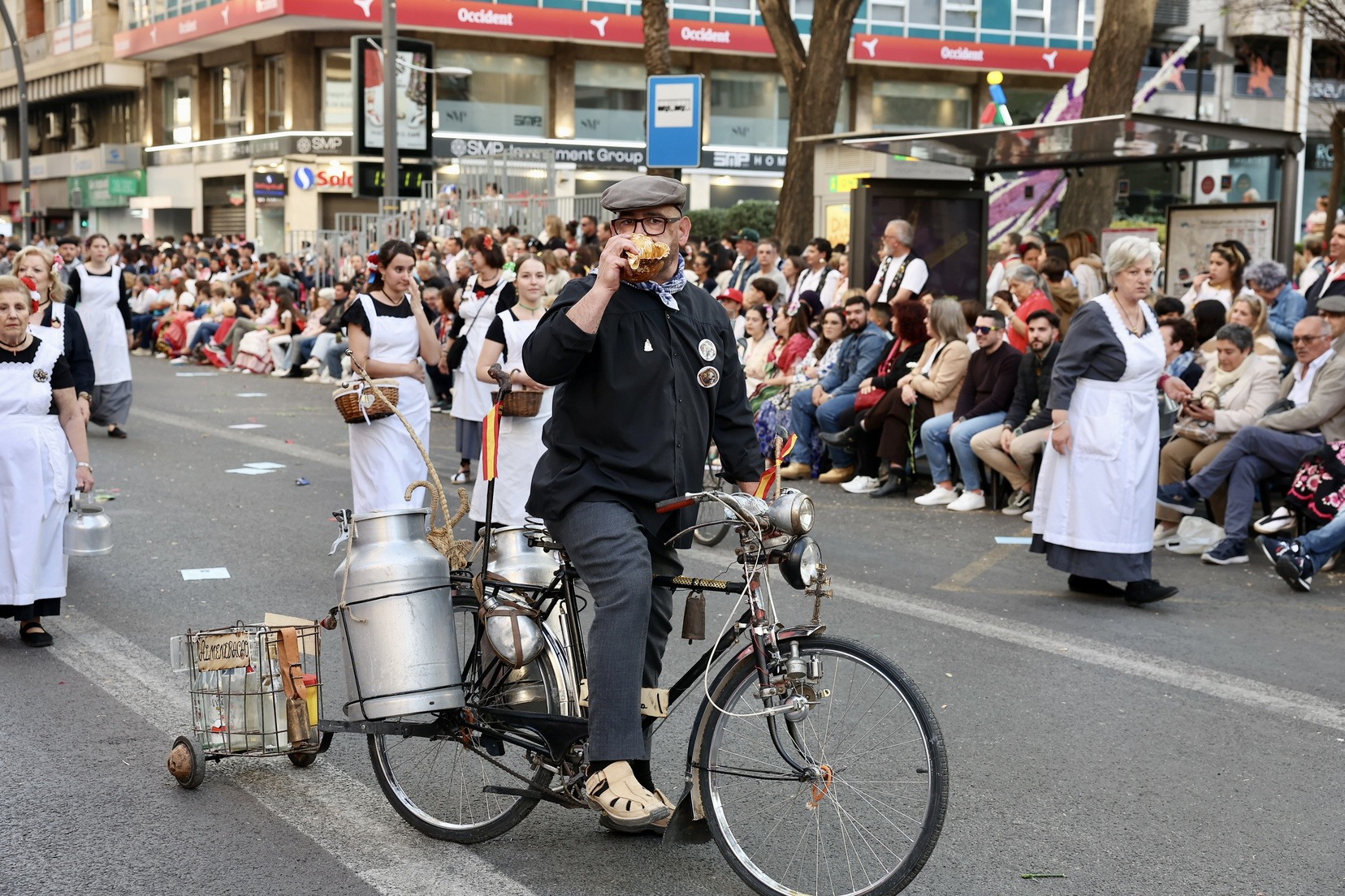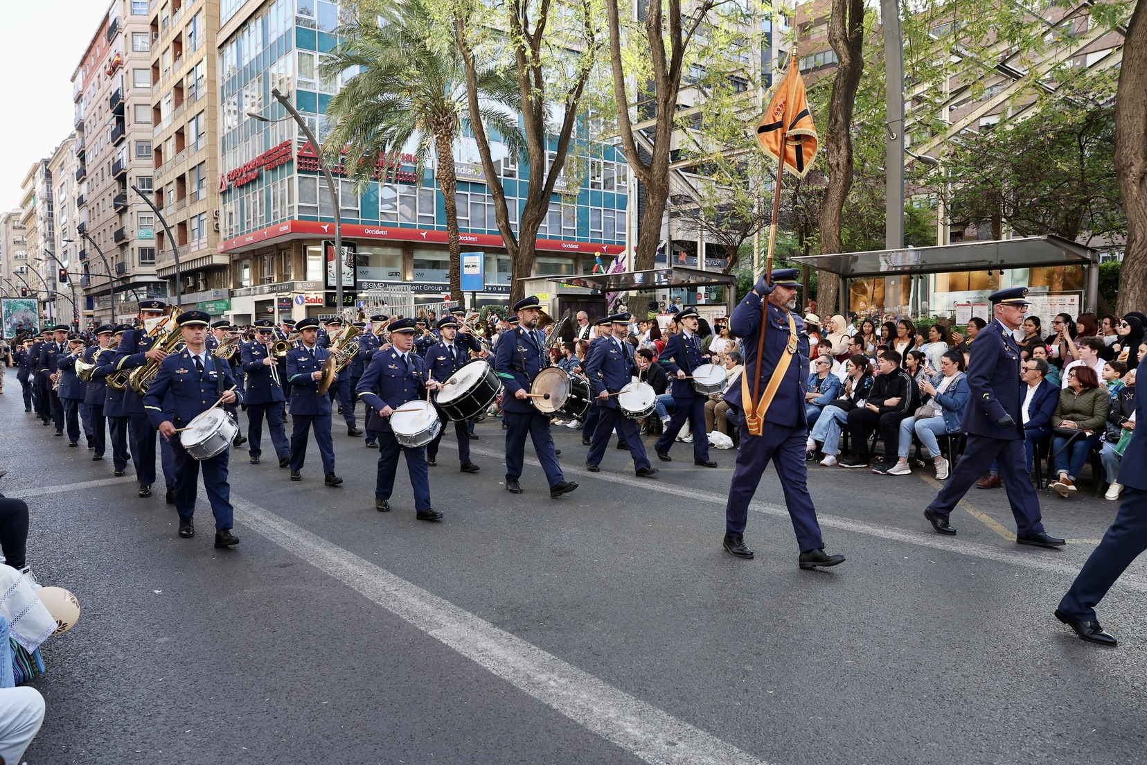 La apertura del desfile ha corrido a cargo de la Unidad de Música del Mando Aéreo vinculada a la Academia General del Aire y del Espacio. A continuación, bandas de música, gigantes y cabezudos, grupos de danzas y todas las carrozas que, como cada año, han llenado las calles de la ciudad de folklore, cultura y tradición, mostrando escenas cotidianas de la huerta y sus oficios típicos.