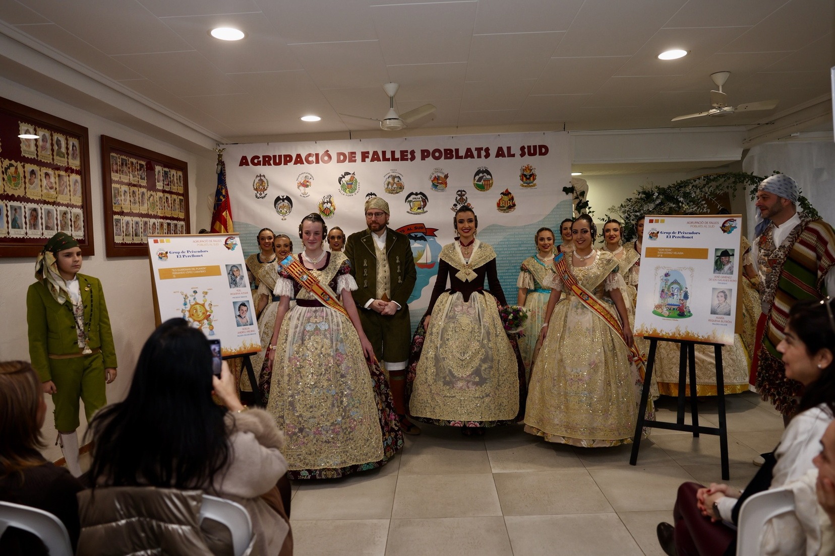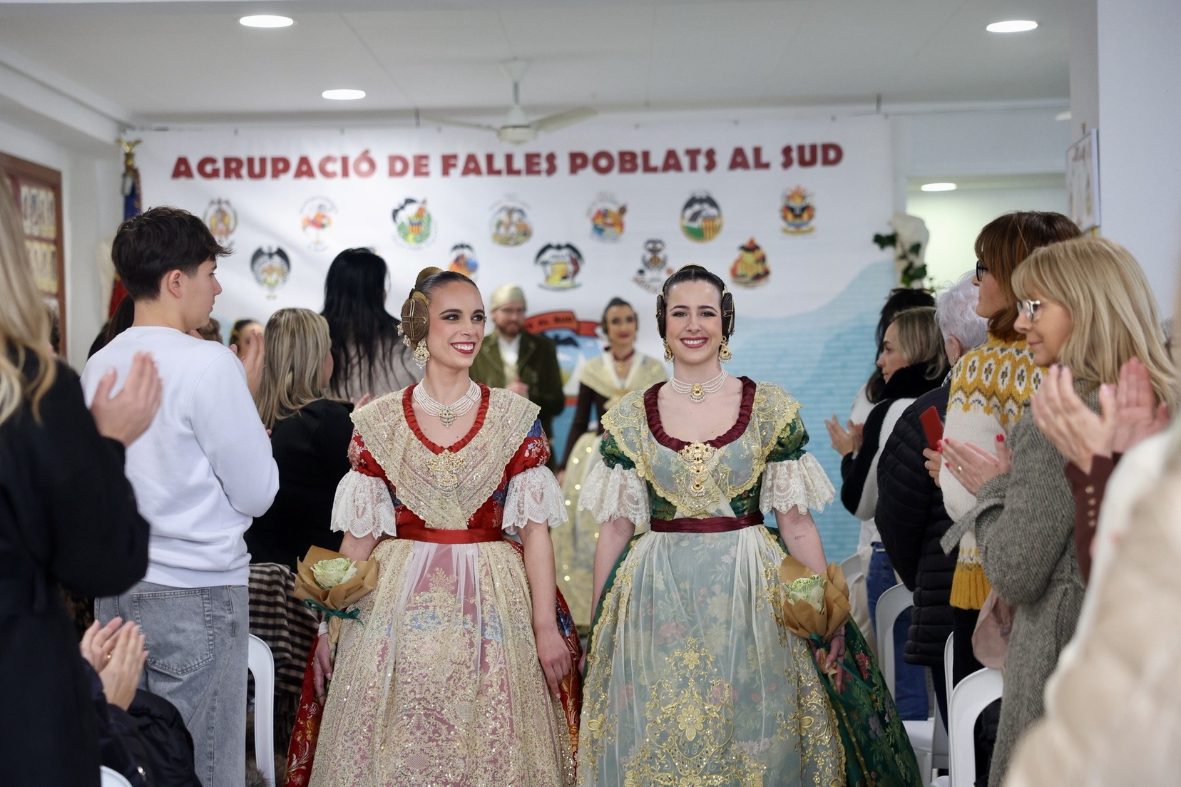 La presentación ha contado con la presencia de la Fallera Mayor de Valencia, acompañada por su Corte de Honor, que ha querido respaldar con su asistencia a las comisiones de Poblats al Sud en esta cita colectiva. El acto ha tenido un significado especial para Anabel Calero, componente de la Corte de Honor y fallera perteneciente a este sector, que ha compartido la jornada con las comisiones de su demarcación.