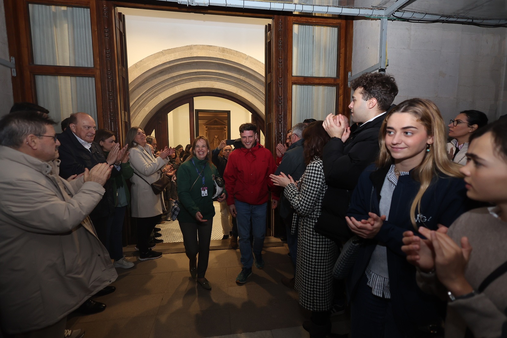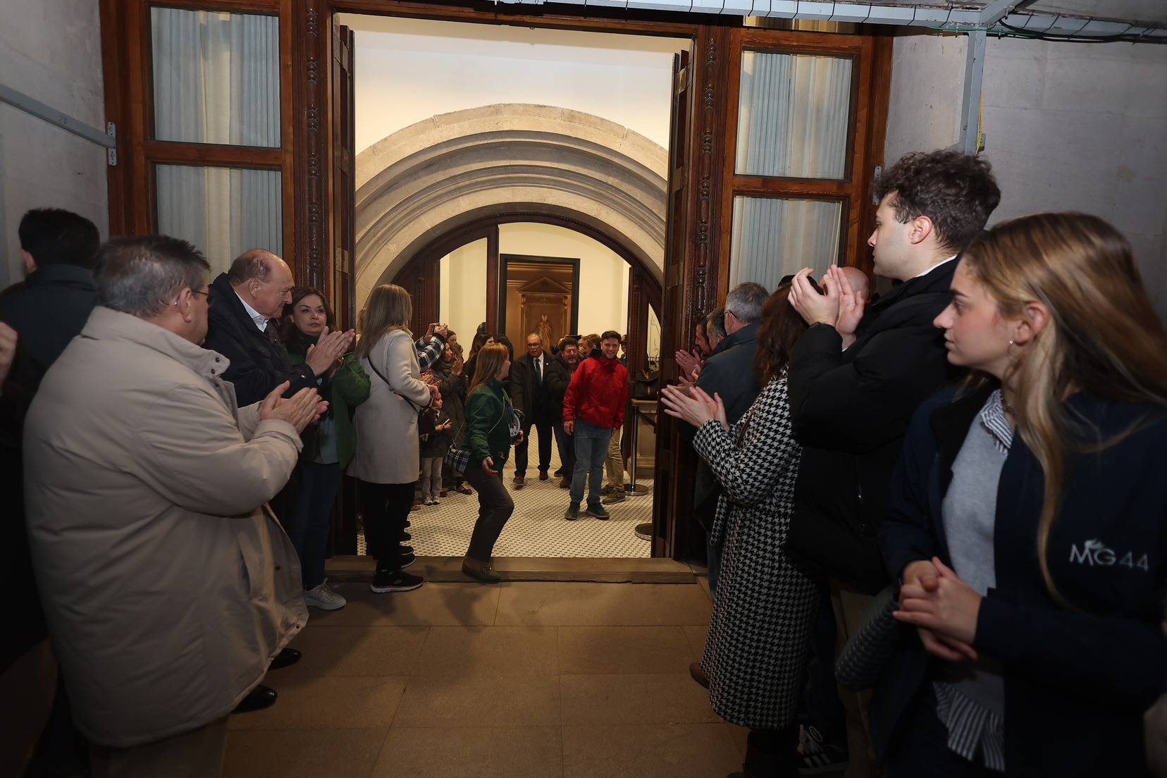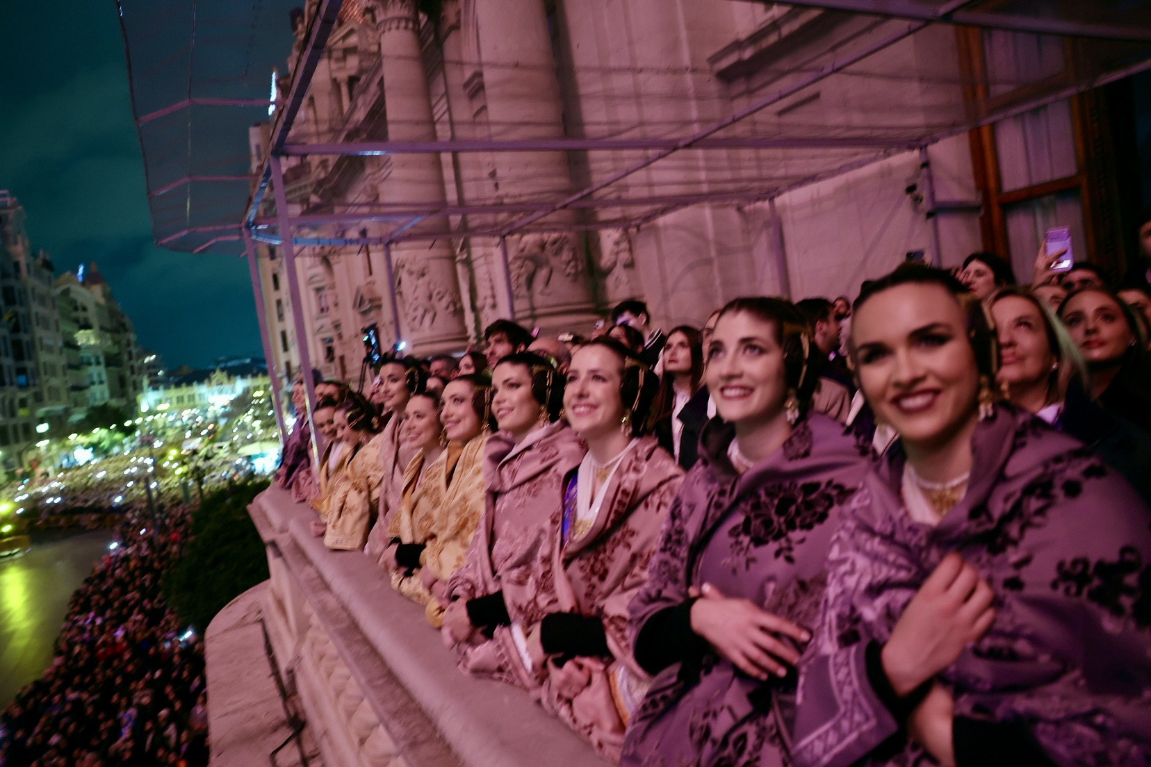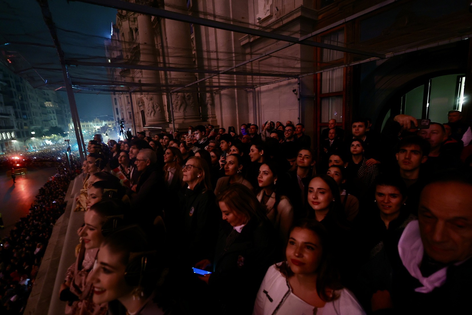 La Fallera Mayor de Valencia, Carmen Prades, acompañada de su Corte de Honor, ha sido la encargada de marcar desde el Balcón del Ayuntamiento el inicio de este primer disparo nocturno que ha hecho vibrar a la Catedral de la Pólvora.