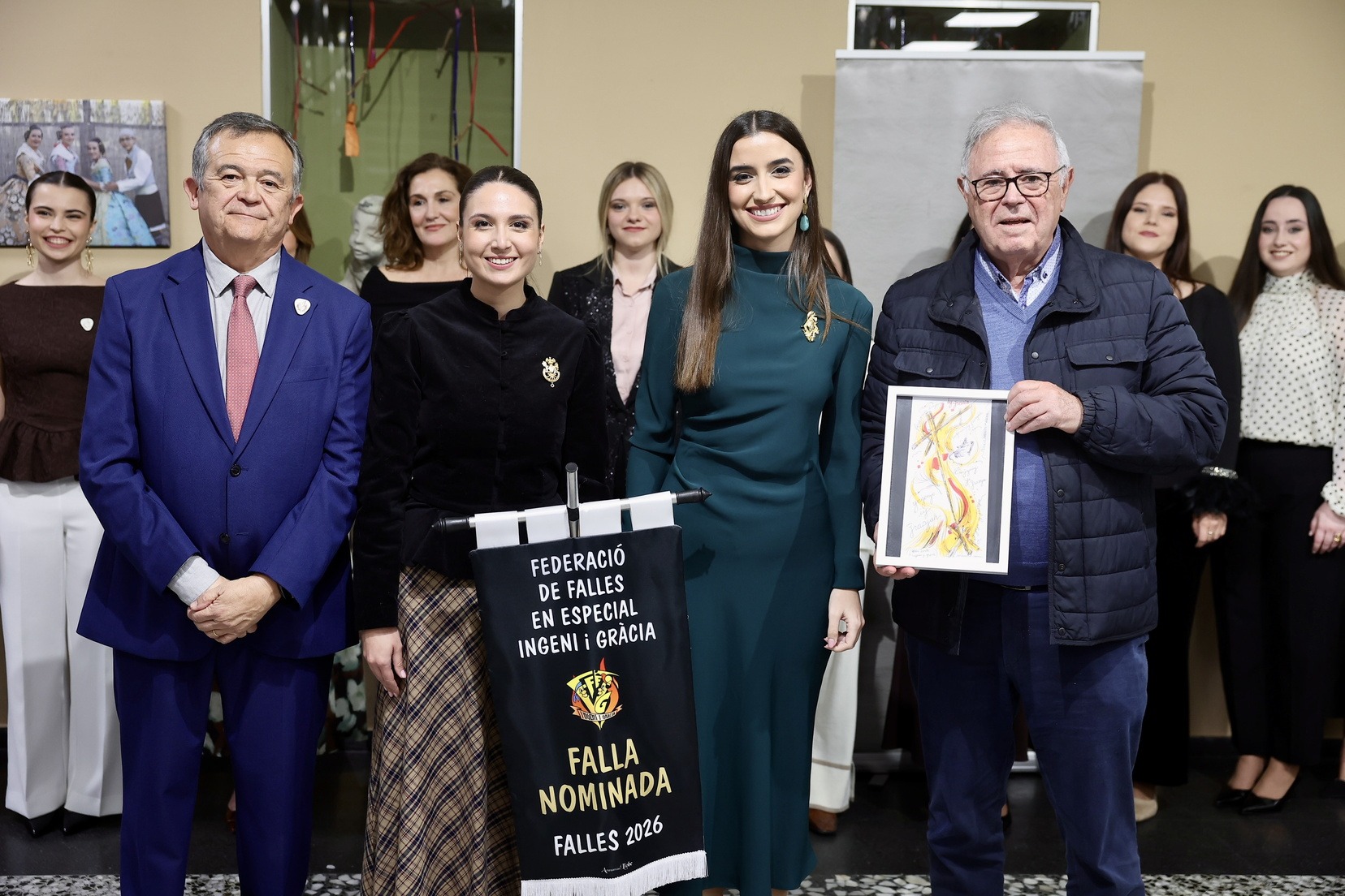Asimismo, la Fallera Mayor de Valencia, Carmen Prades, ha hecho entrega de los estandartes acreditativos a las comisiones candidatas al premio I+G 2026, un reconocimiento que destaca aquellas propuestas que mantienen viva la esencia crítica y creativa de la fiesta. Las comisiones distinguidas han sido: