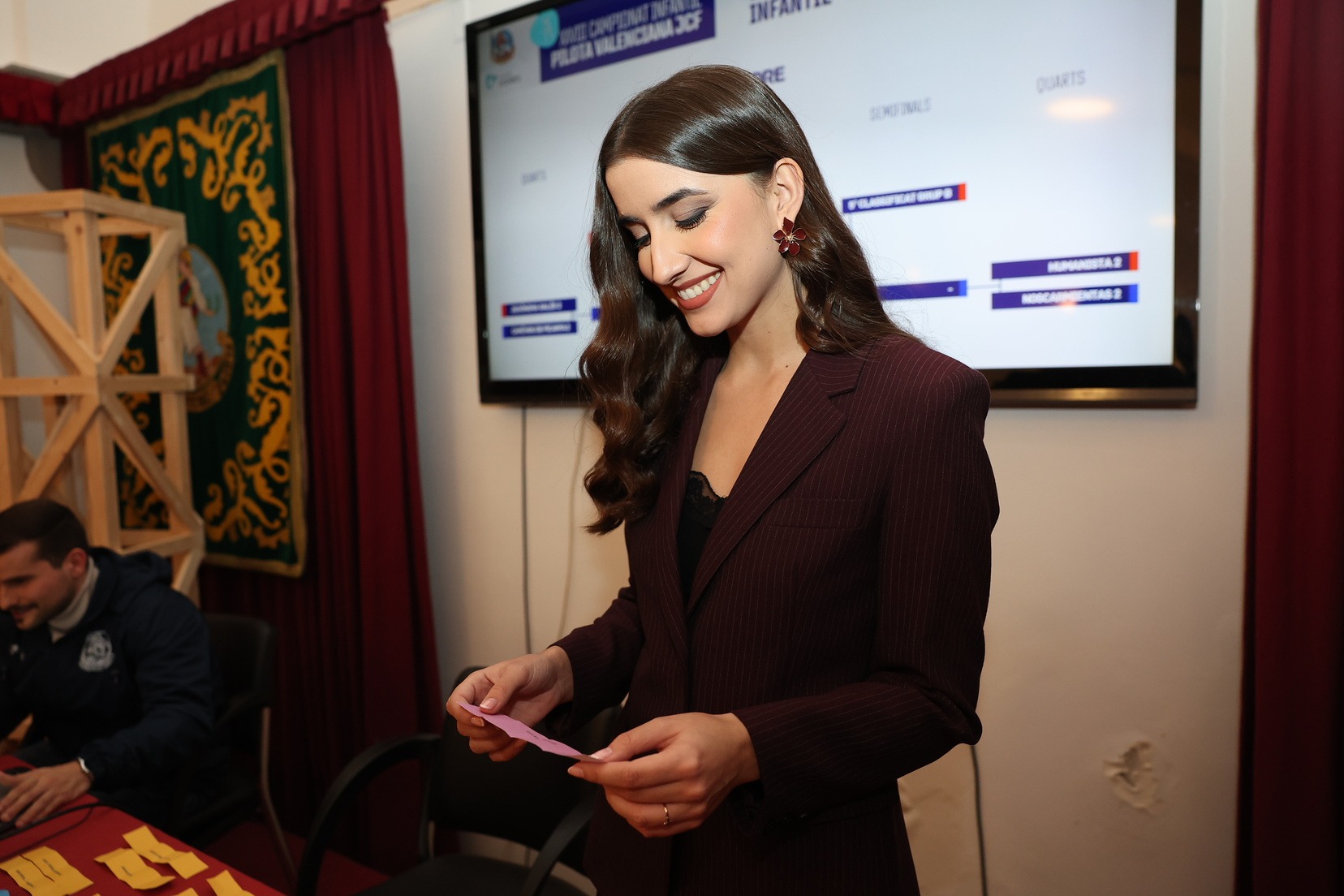 Ha sido precisamente Carmen Prades, Fallera Mayor de Valencia, quien ha ejercido de mano inocente para el sorteo de los equipos, muchos de ellos presentes en este acto. Estos, han sido los primeros también en descubrir el diseño de los trofeos y medallas que recibirán los campeones próximamente.