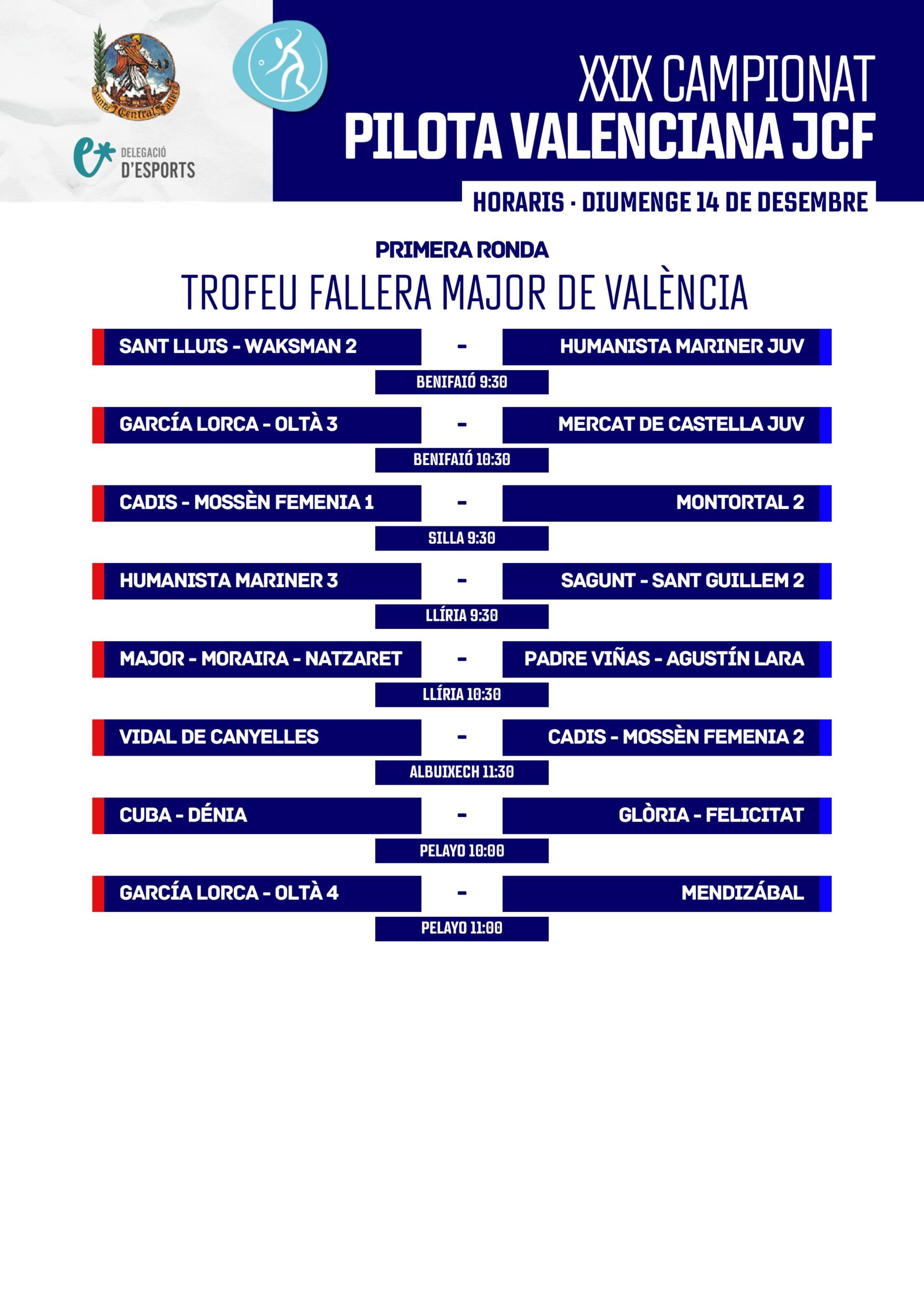 La delegación de Deportes de Junta Central Fallera ha realizado esta tarde el sorteo de los Trofeos Falleras Mayores de Valencia de Pelota Valenciana.