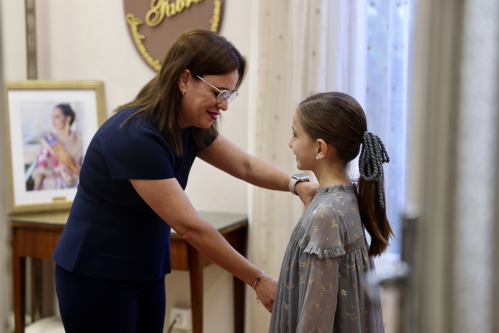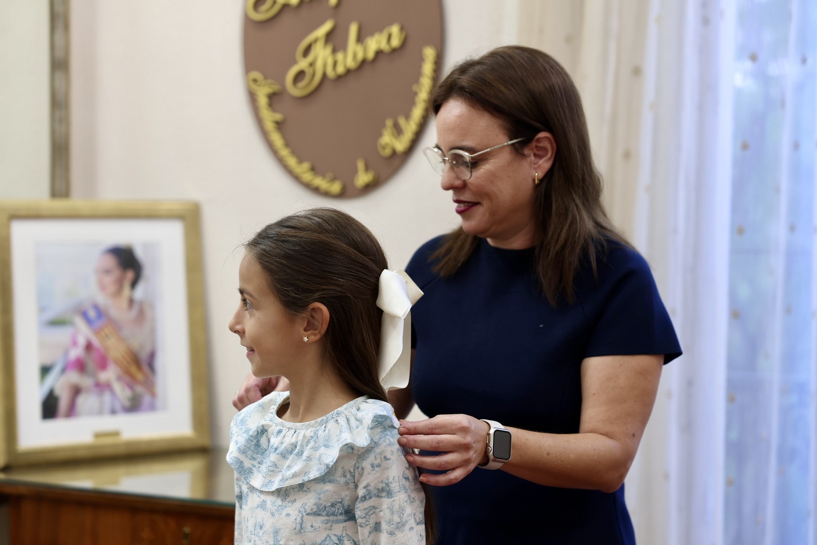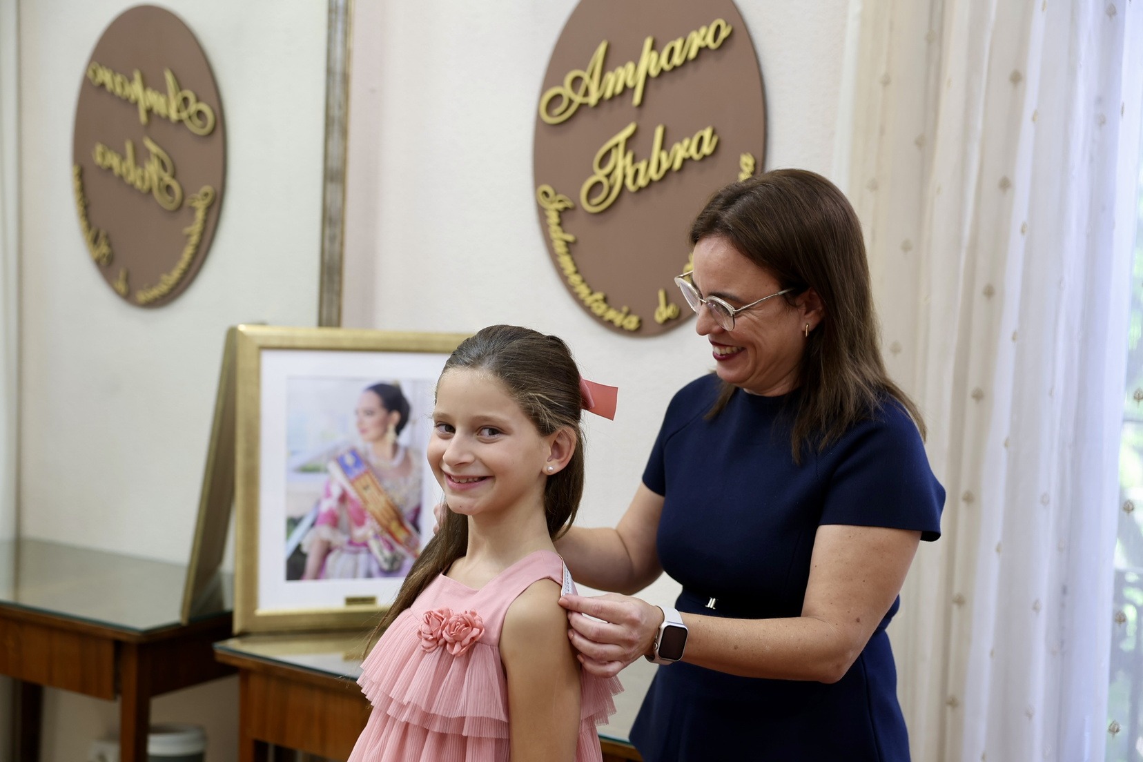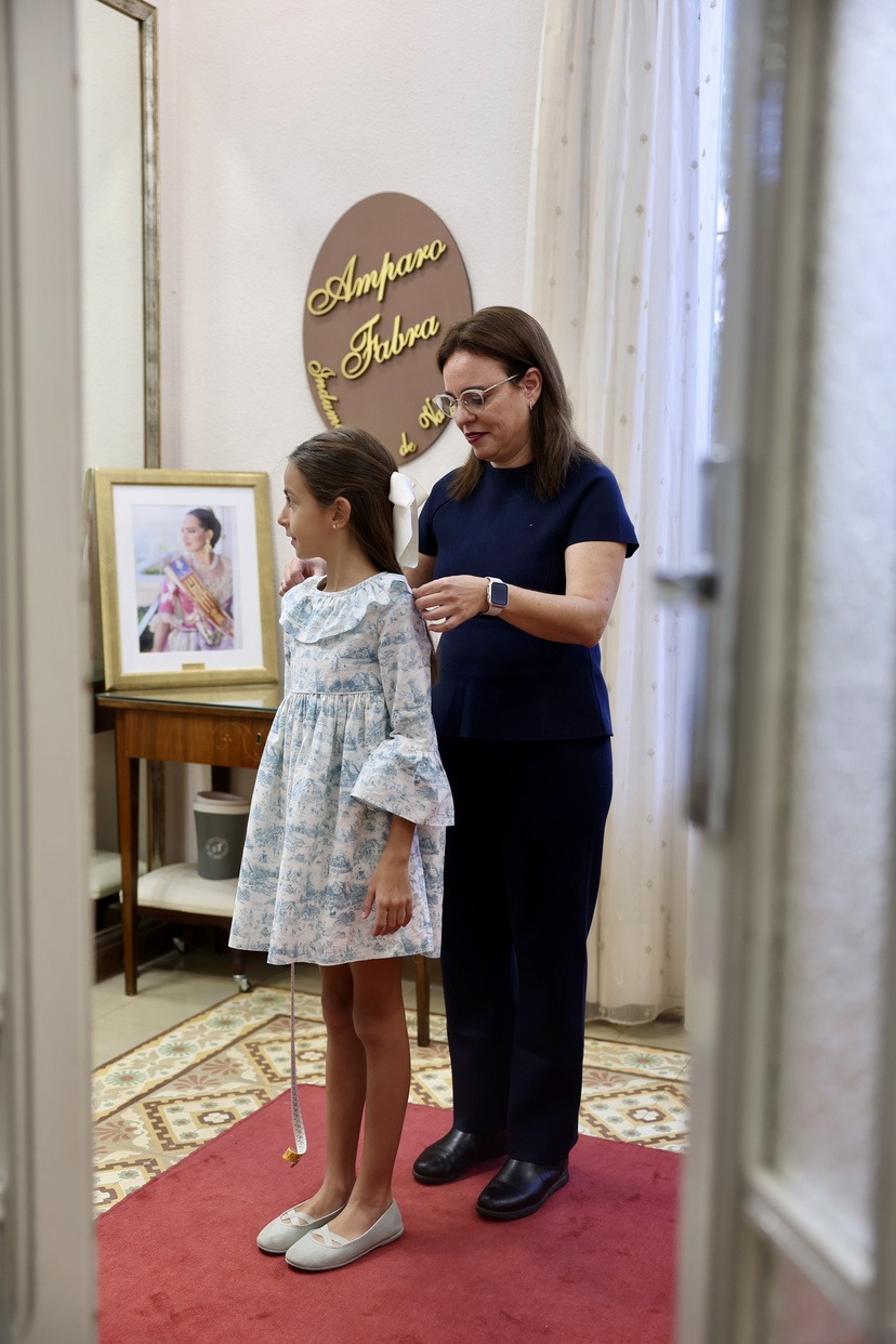 En esta primera semana de actos oficiales de nuestras nuevas máximas representantes, Amparo Fabra ha abierto hoy sus puertas a Marta Mercader, Fallera Mayor Infantil de Valencia y a su Corte de Honor, para la toma de medidas.