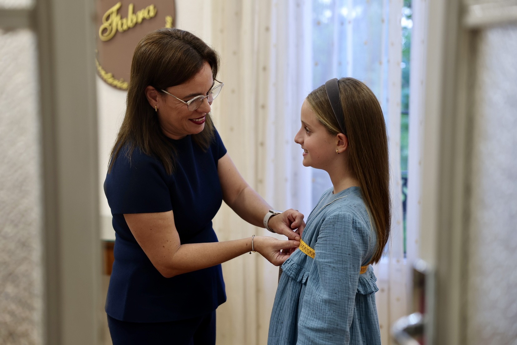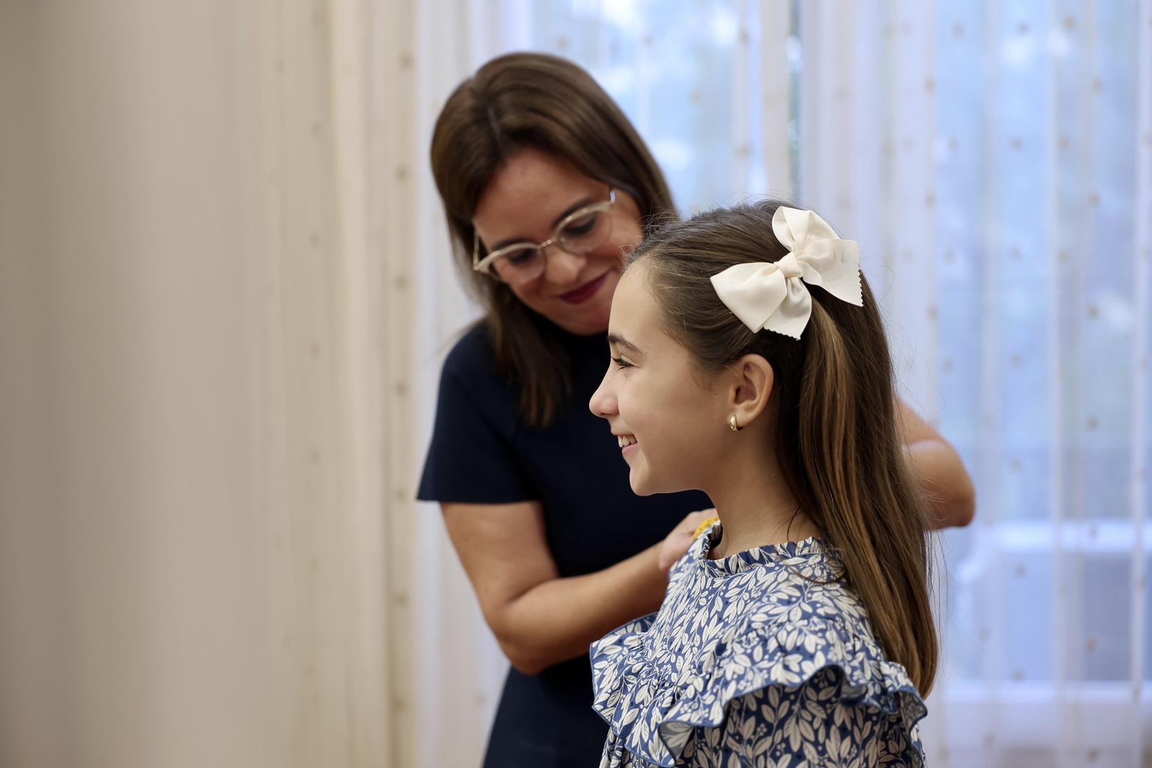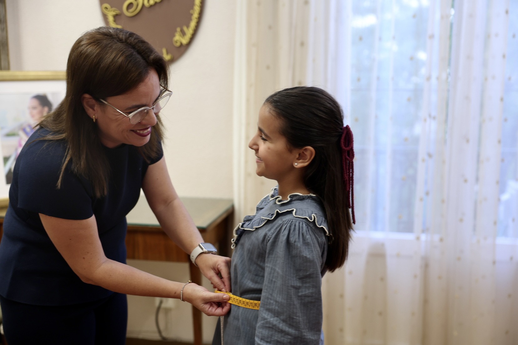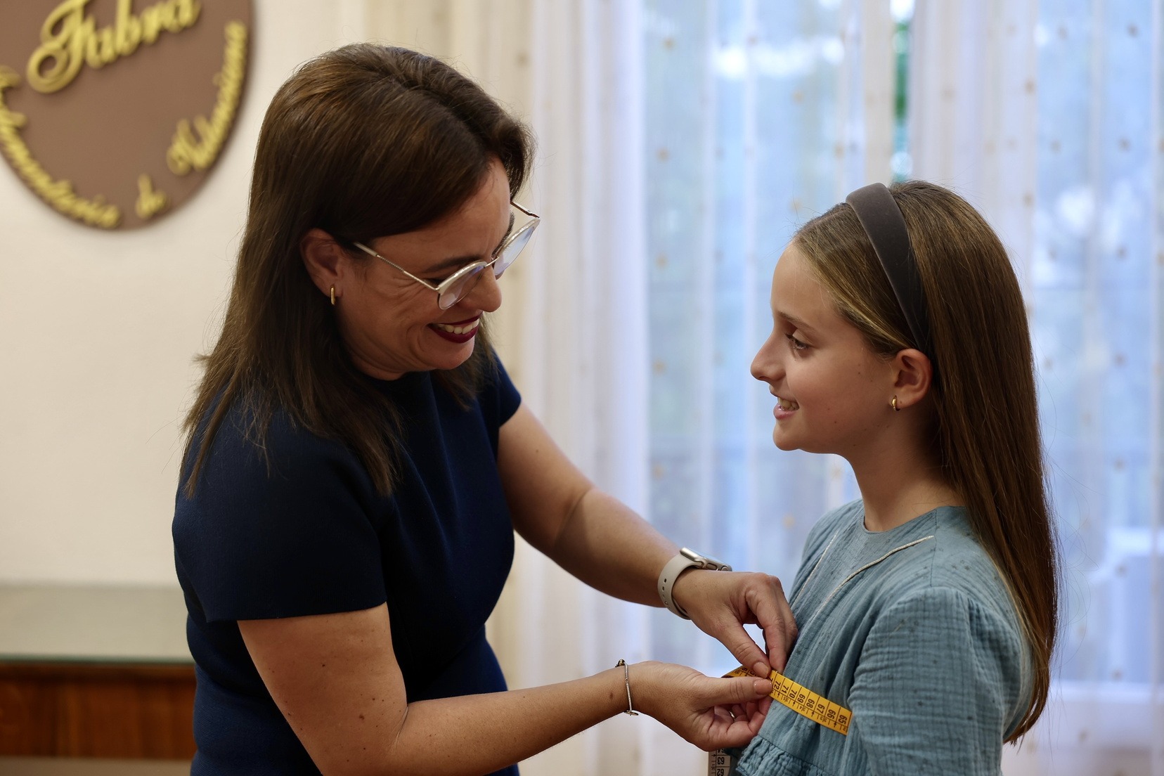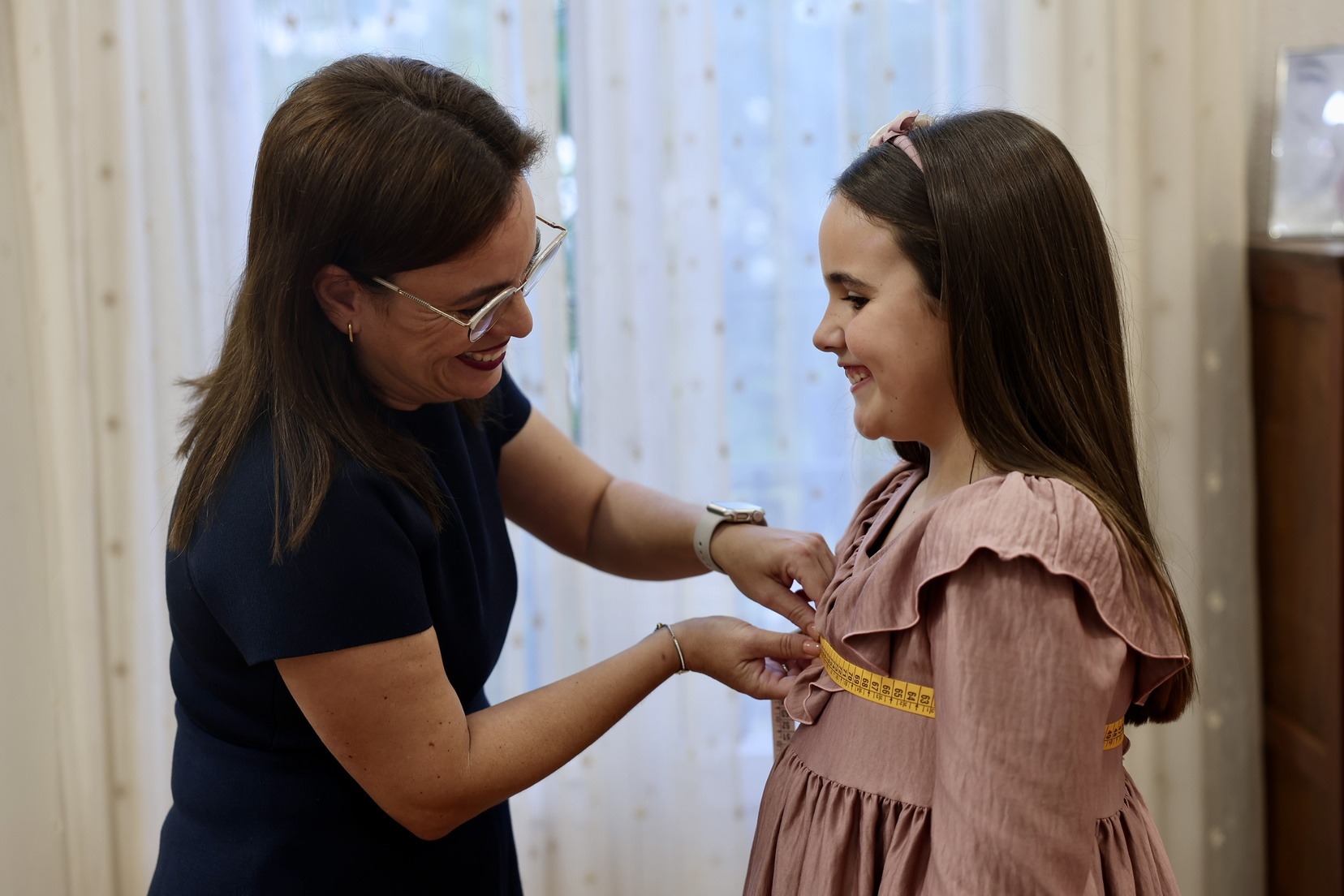 En esta primera semana de actos oficiales de nuestras nuevas máximas representantes, Amparo Fabra ha abierto hoy sus puertas a Marta Mercader, Fallera Mayor Infantil de Valencia y a su Corte de Honor, para la toma de medidas.