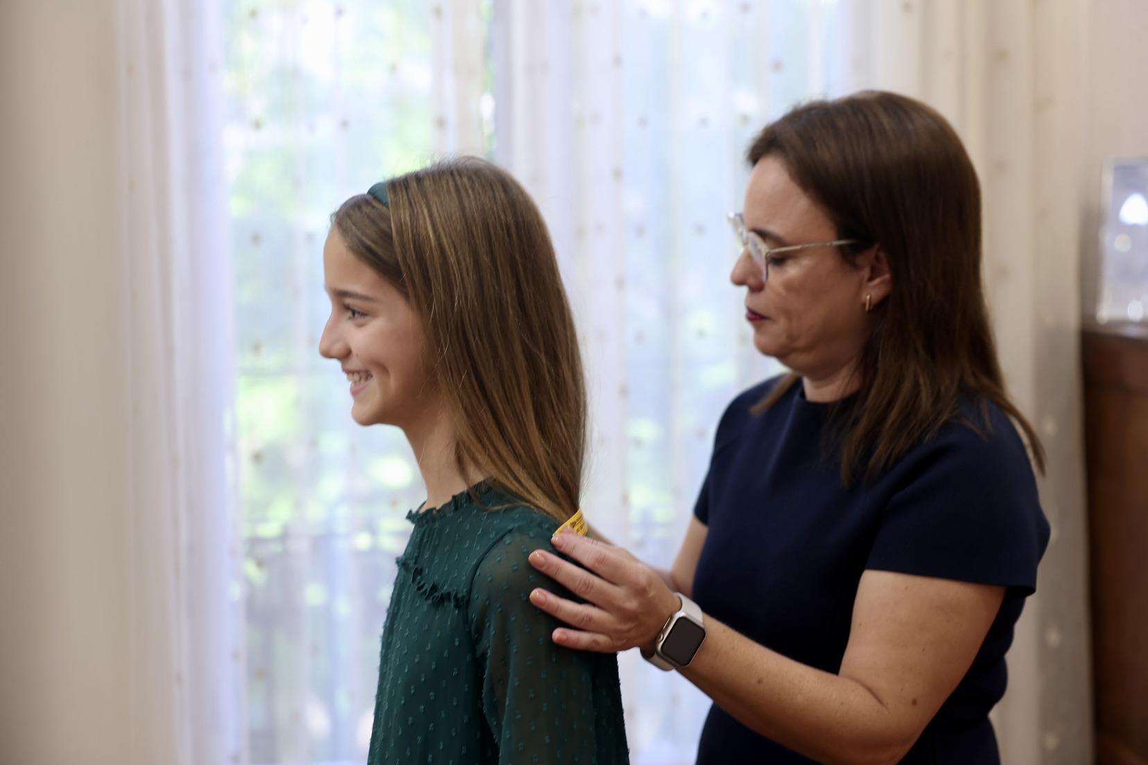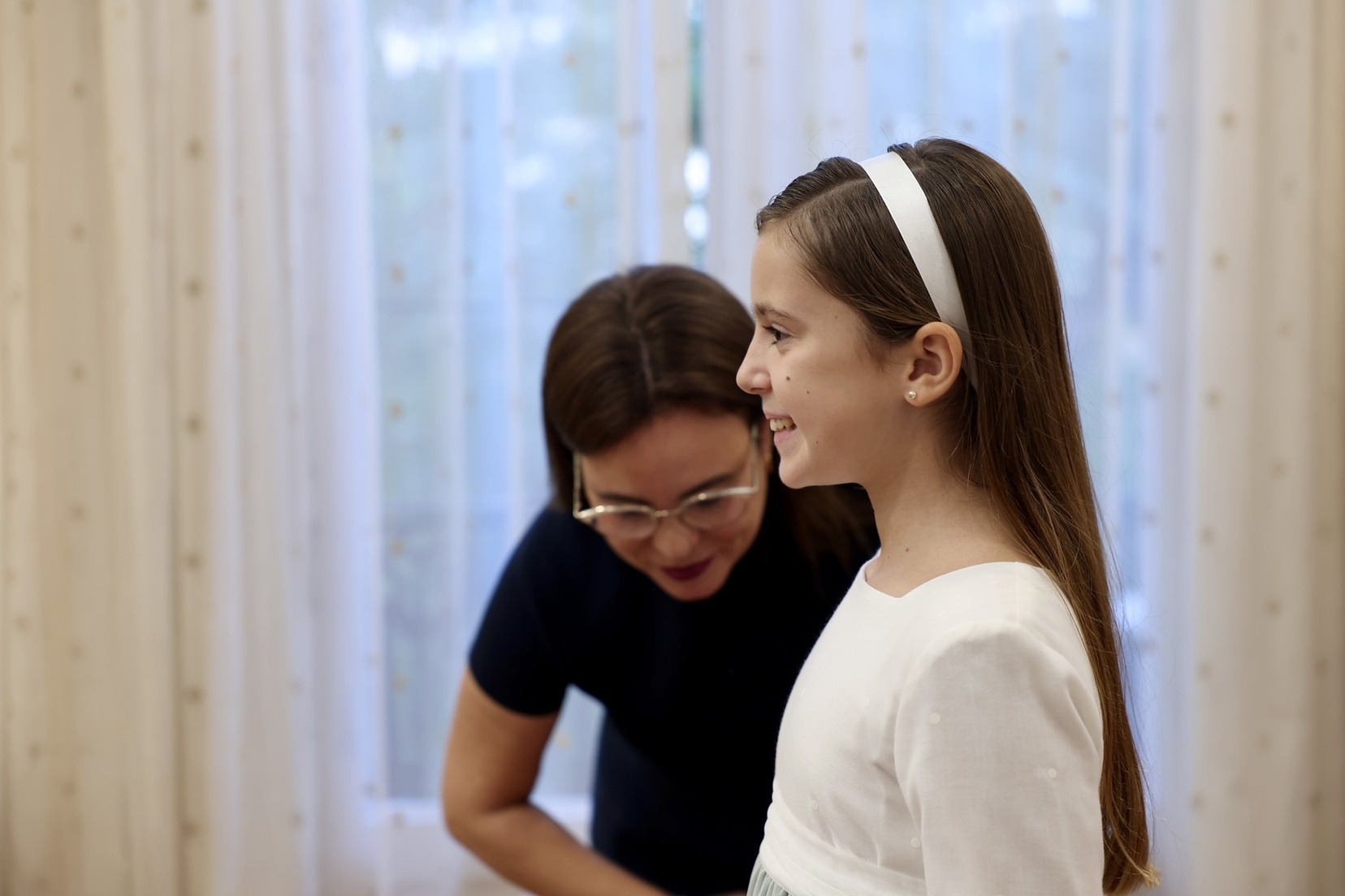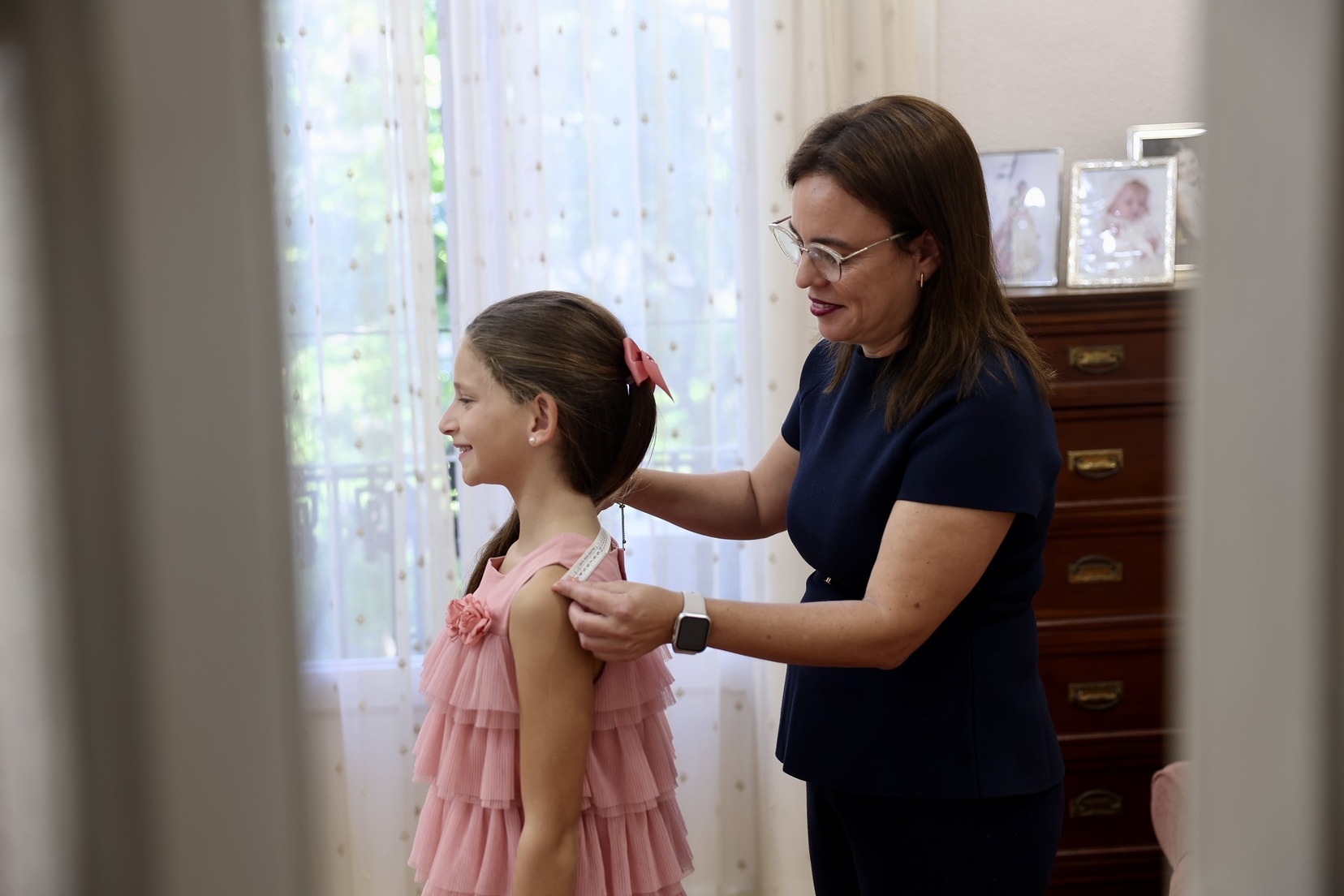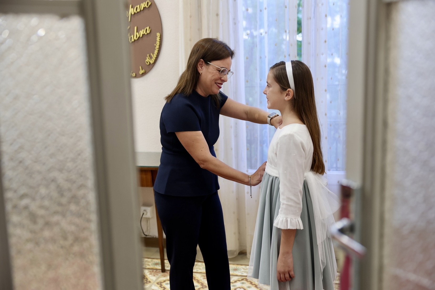 En esta primera semana de actos oficiales de nuestras nuevas máximas representantes, Amparo Fabra ha abierto hoy sus puertas a Marta Mercader, Fallera Mayor Infantil de Valencia y a su Corte de Honor, para la toma de medidas.