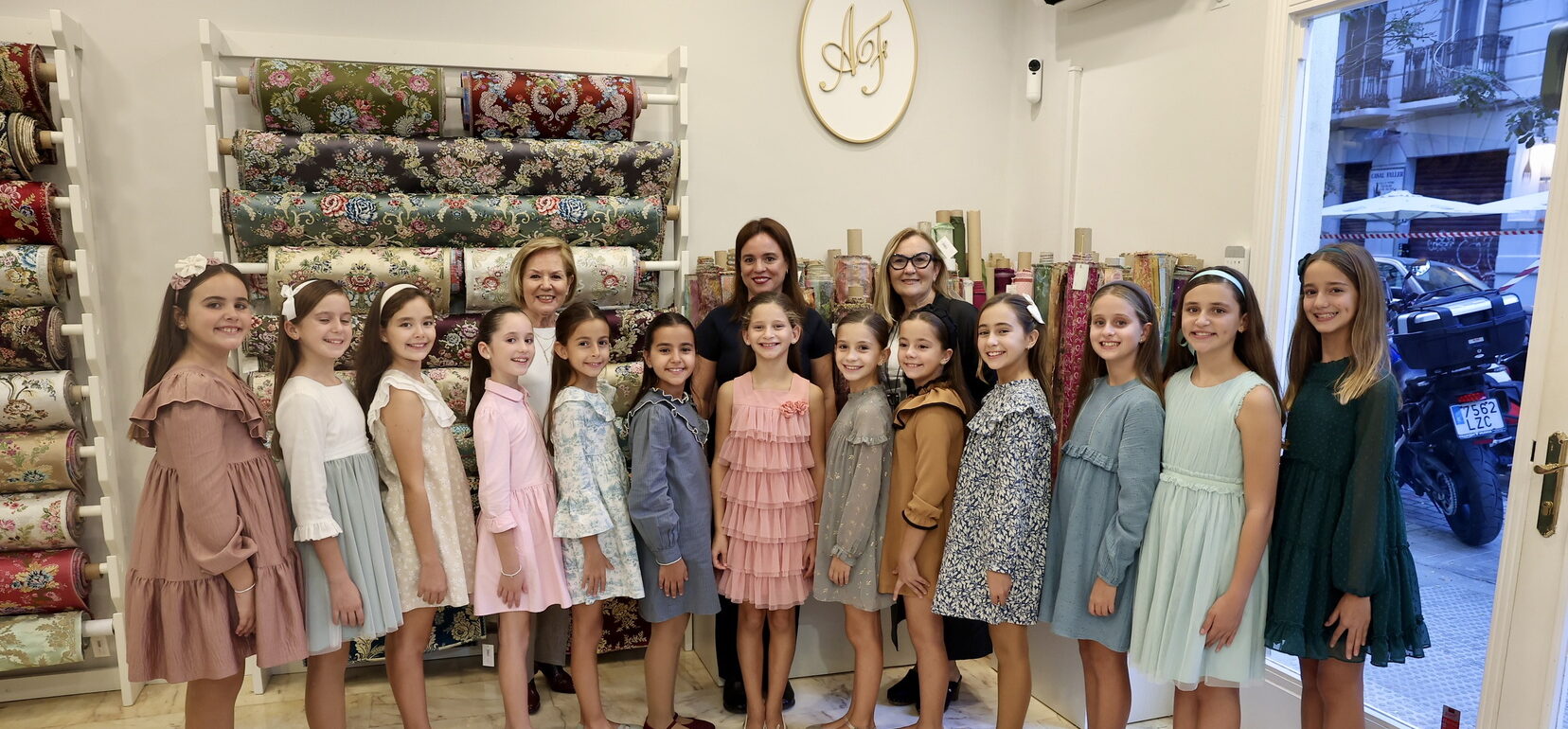 Las 13 niñas han acudido con mucha emoción a conocer las instalaciones de Amparo Fabra, y han compartido una tarde muy especial con los trabajadores de la firma, que lleva más de cuatro décadas tejiendo los sueños de miles de falleras y falleros.