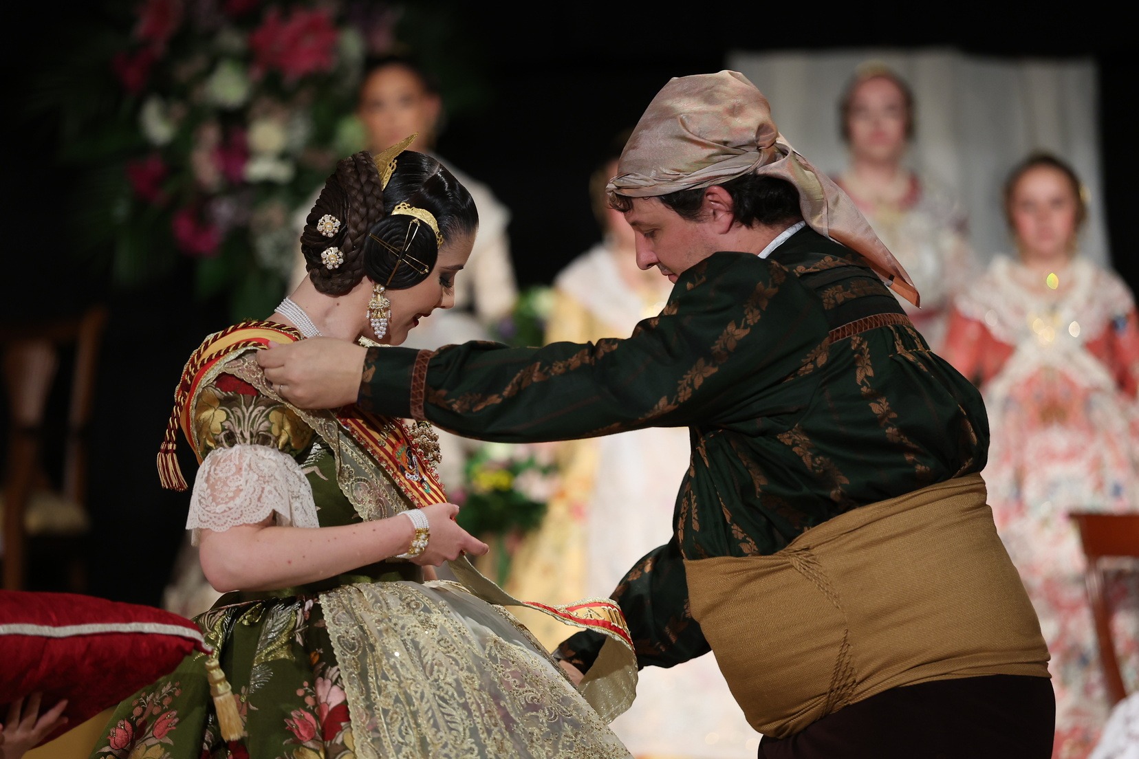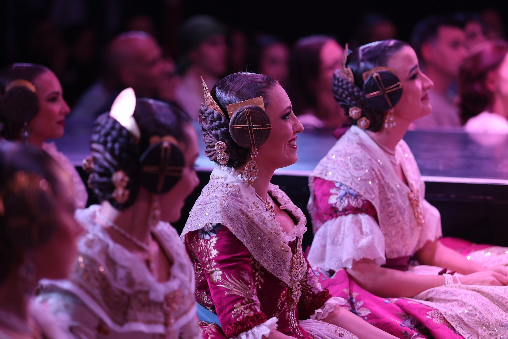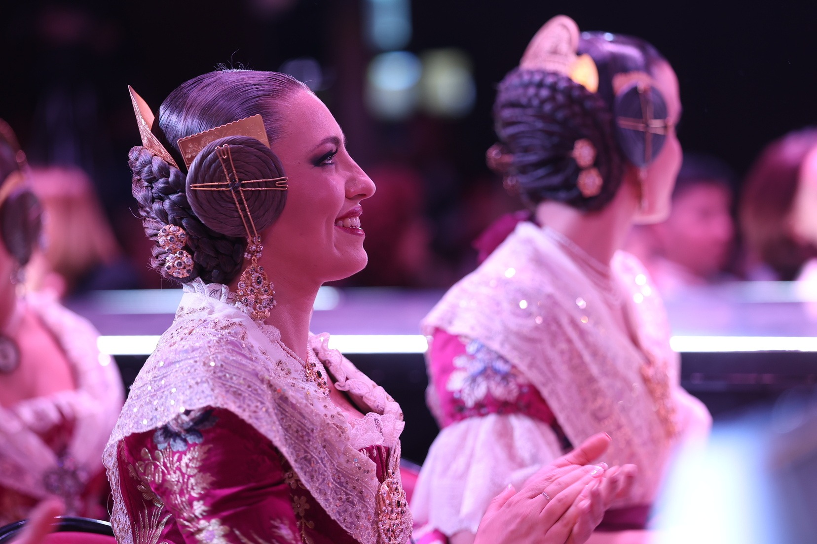 En primer lugar, la falla Virgen de la Fuensanta contó con la presencia de la Fallera Mayor de Valencia y su Corte de Honor para disfrutar de su exaltación. Un acto muy esperado para Zoe Molino, componente de la Corte de Honor de la FMV, que lo vivió con especial ilusión al reencontrarse con su familia fallera.