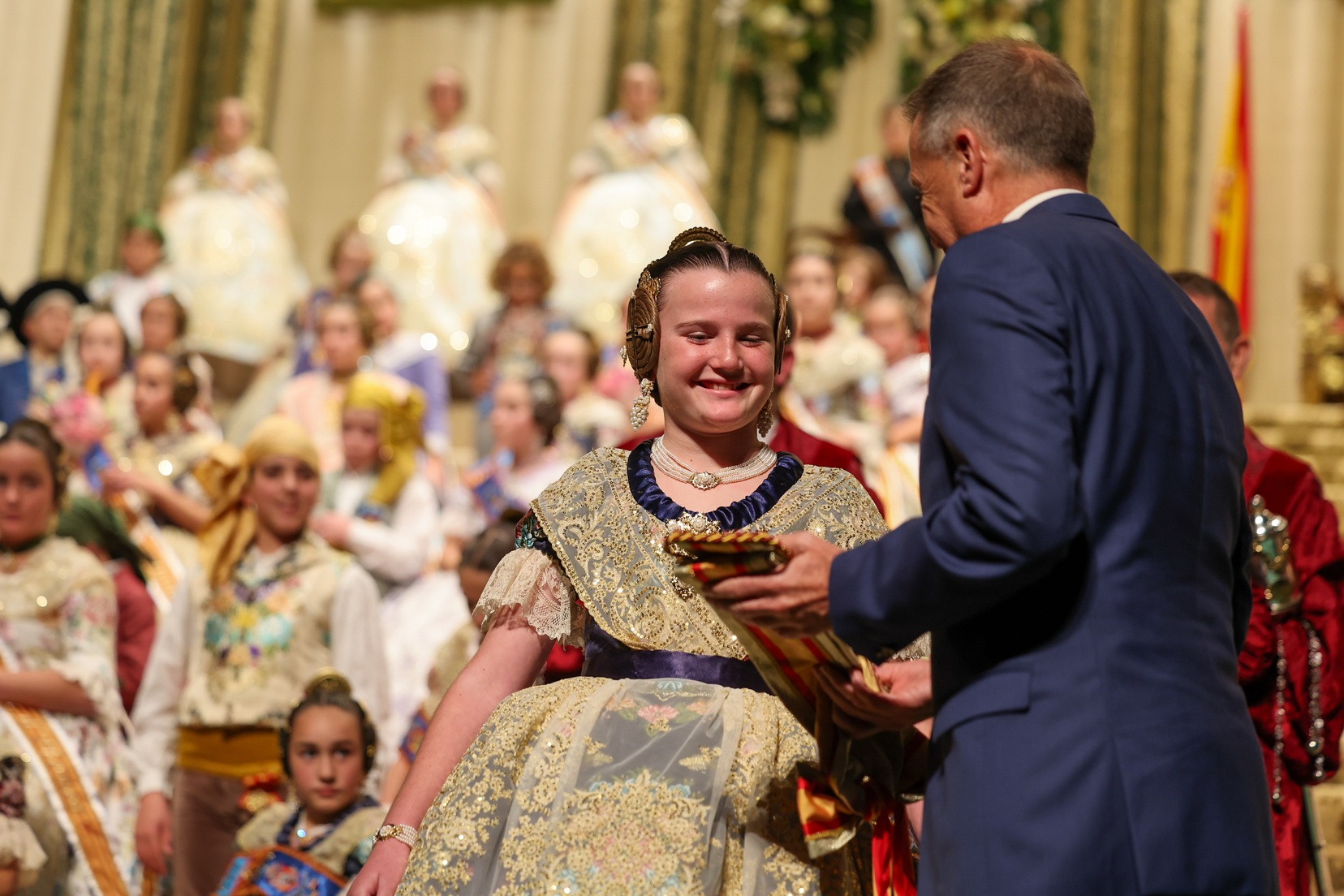 La solemne cerimònia ha inclòs l’entrega de la banda de Reina Infantil a Ana Olivas, de mans de l’alcalde Jorge Monferrer Daudí, i la intervenció com a mantenidora de Paula Vidal del Campillo, fallera veterana i primera dona pregonera de Borriana.