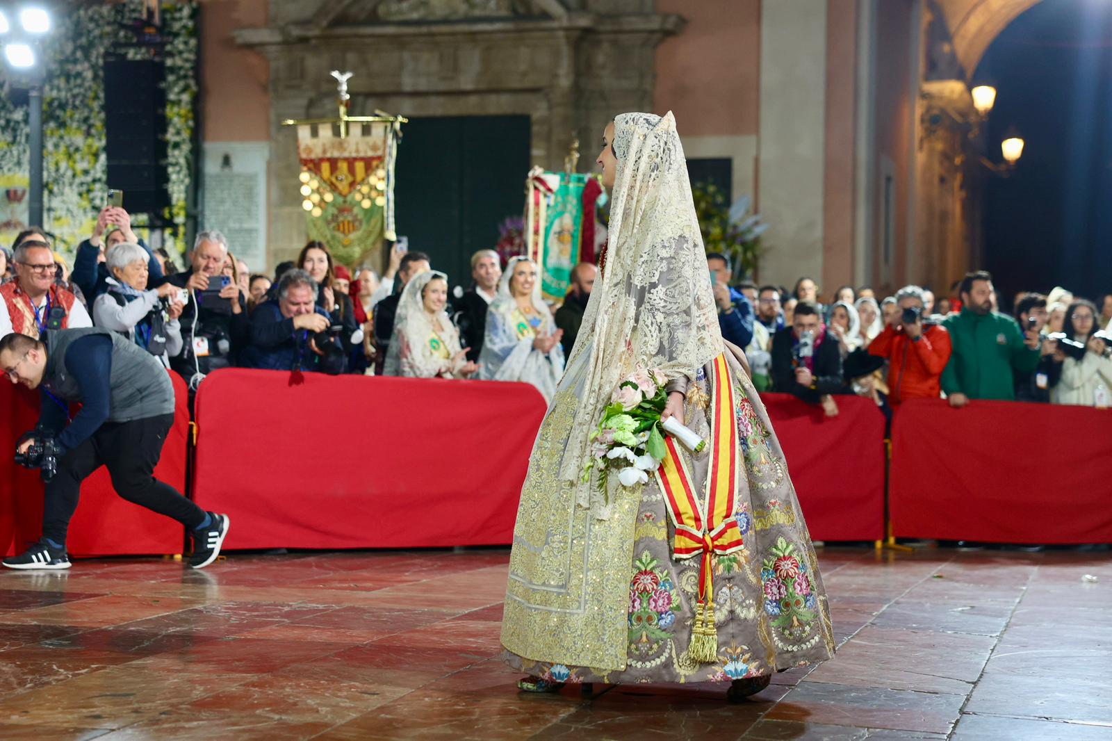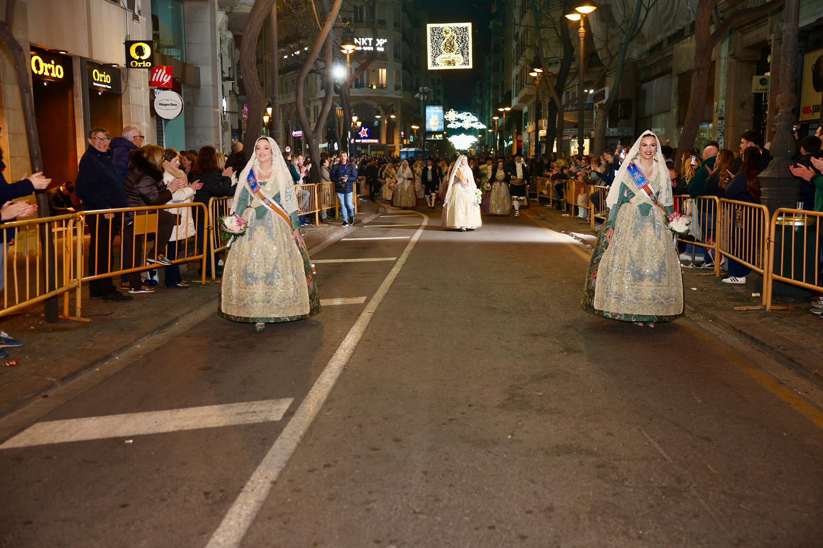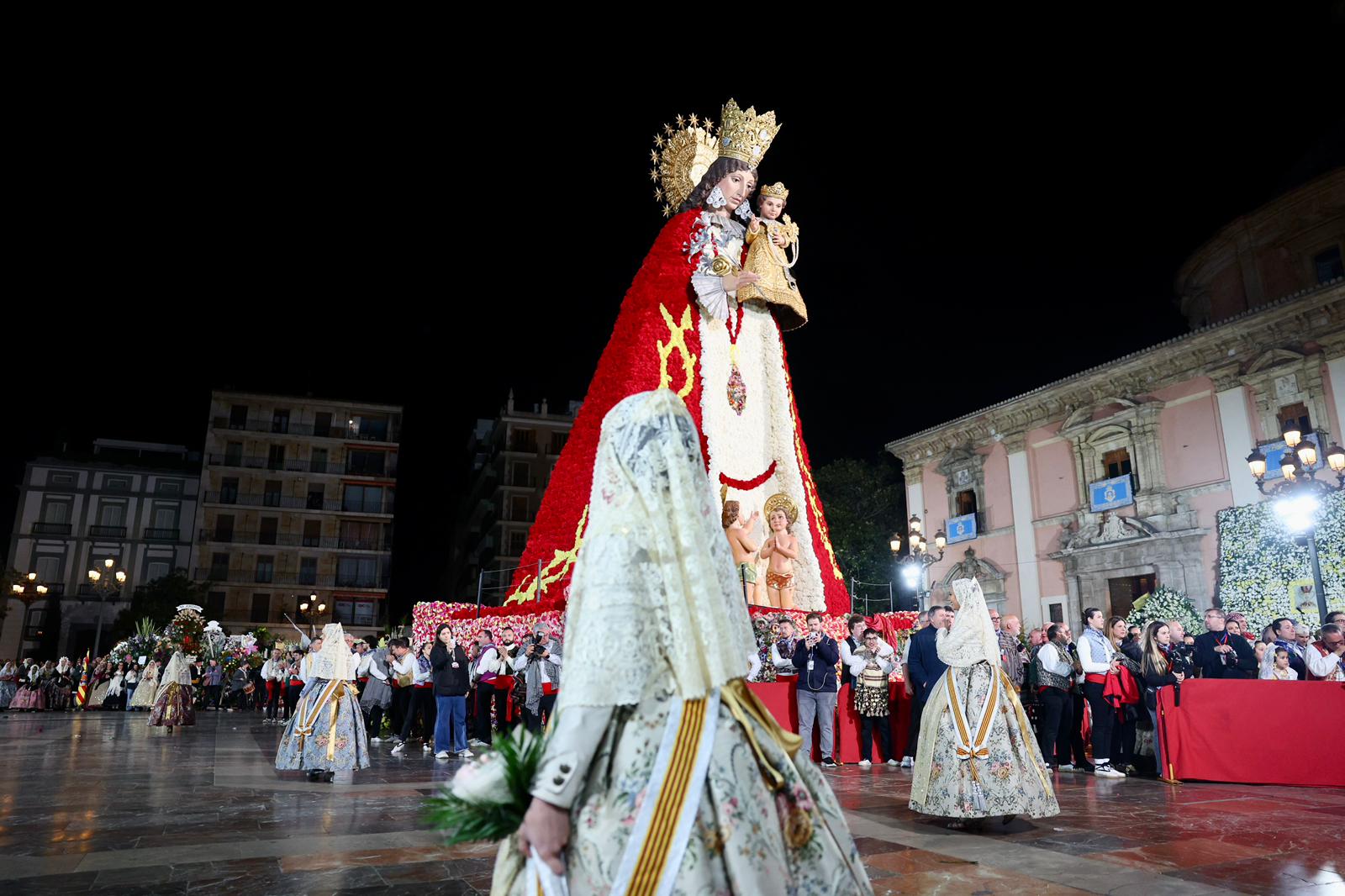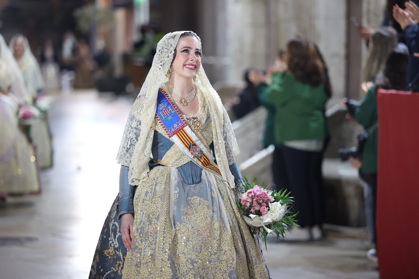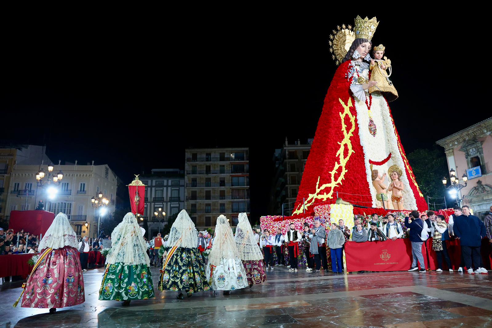 Amb els seus vestits oficials i visiblement emocionades, han recorregut el centre de la ciutat entre aplaudiments i mostres d’estimadel públic fins a arribar a la Plaça de la Mare de Déu, on han depositat els seus rams de flors a l’altar de la Basílica.