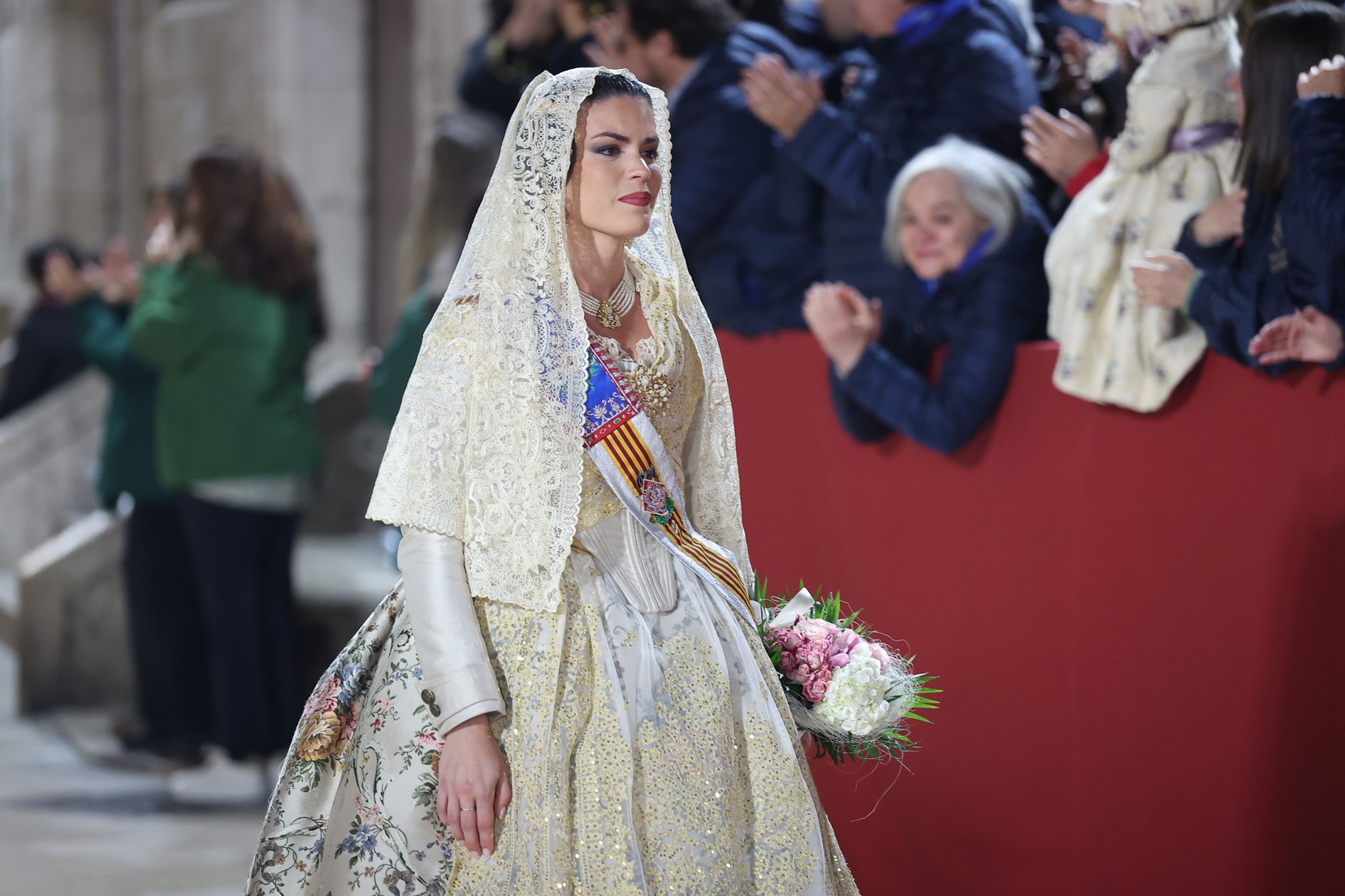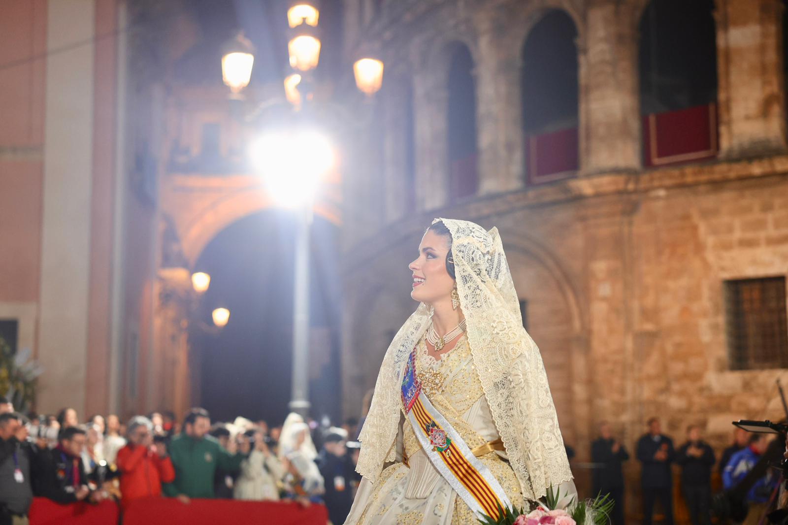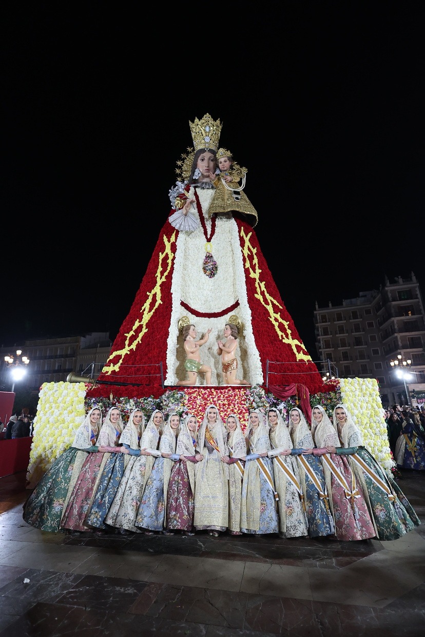 La Fallera Major de València, Carmen Prades Gil, al costat de la seua Cort d’Honor, ha protagonitzat este 18 de març un dels moments més emotius de les Falles de València durant la tradicional Ofrena a la Mare de Déu.