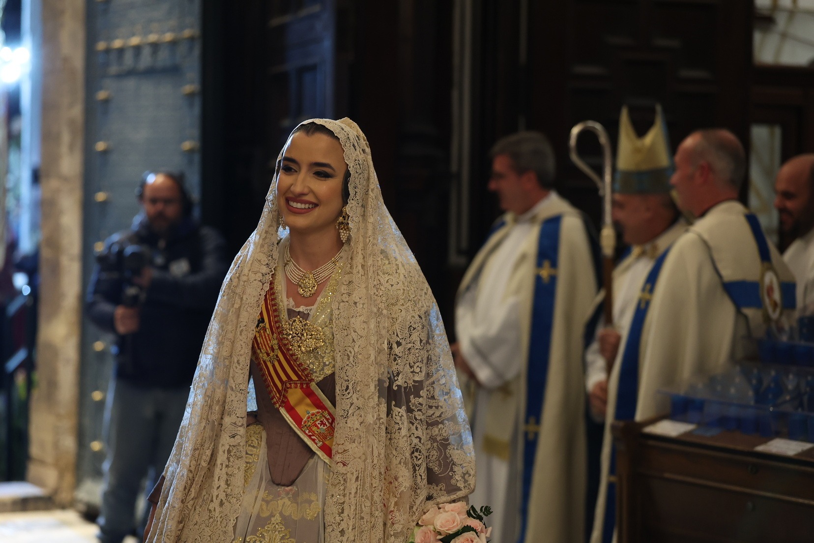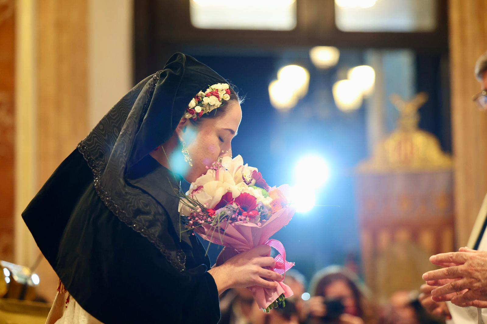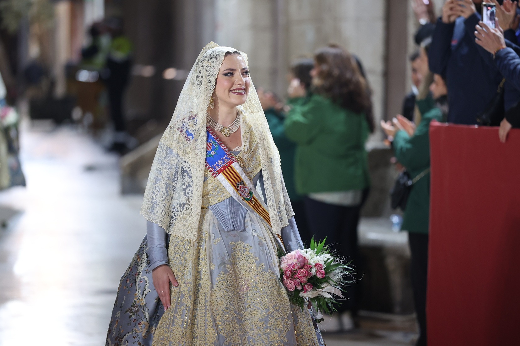 La Fallera Major de València, Carmen Prades Gil, al costat de la seua Cort d’Honor, ha protagonitzat este 18 de març un dels moments més emotius de les Falles de València durant la tradicional Ofrena a la Mare de Déu.