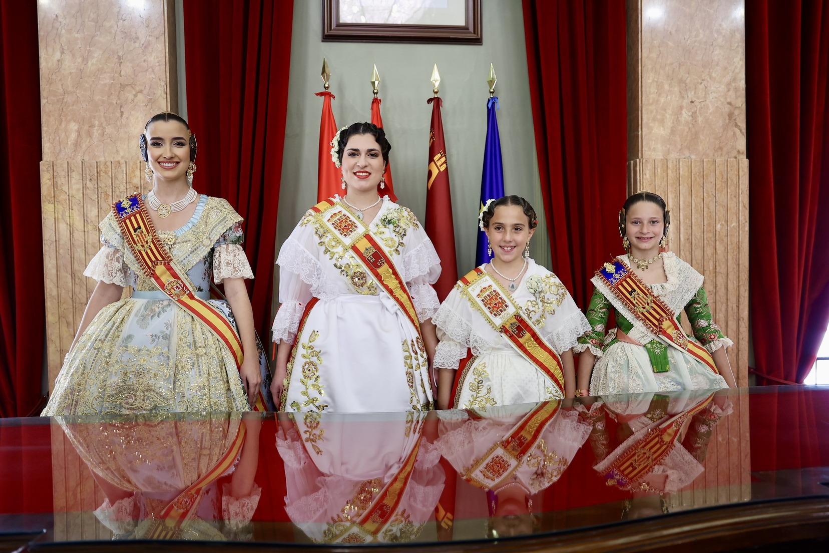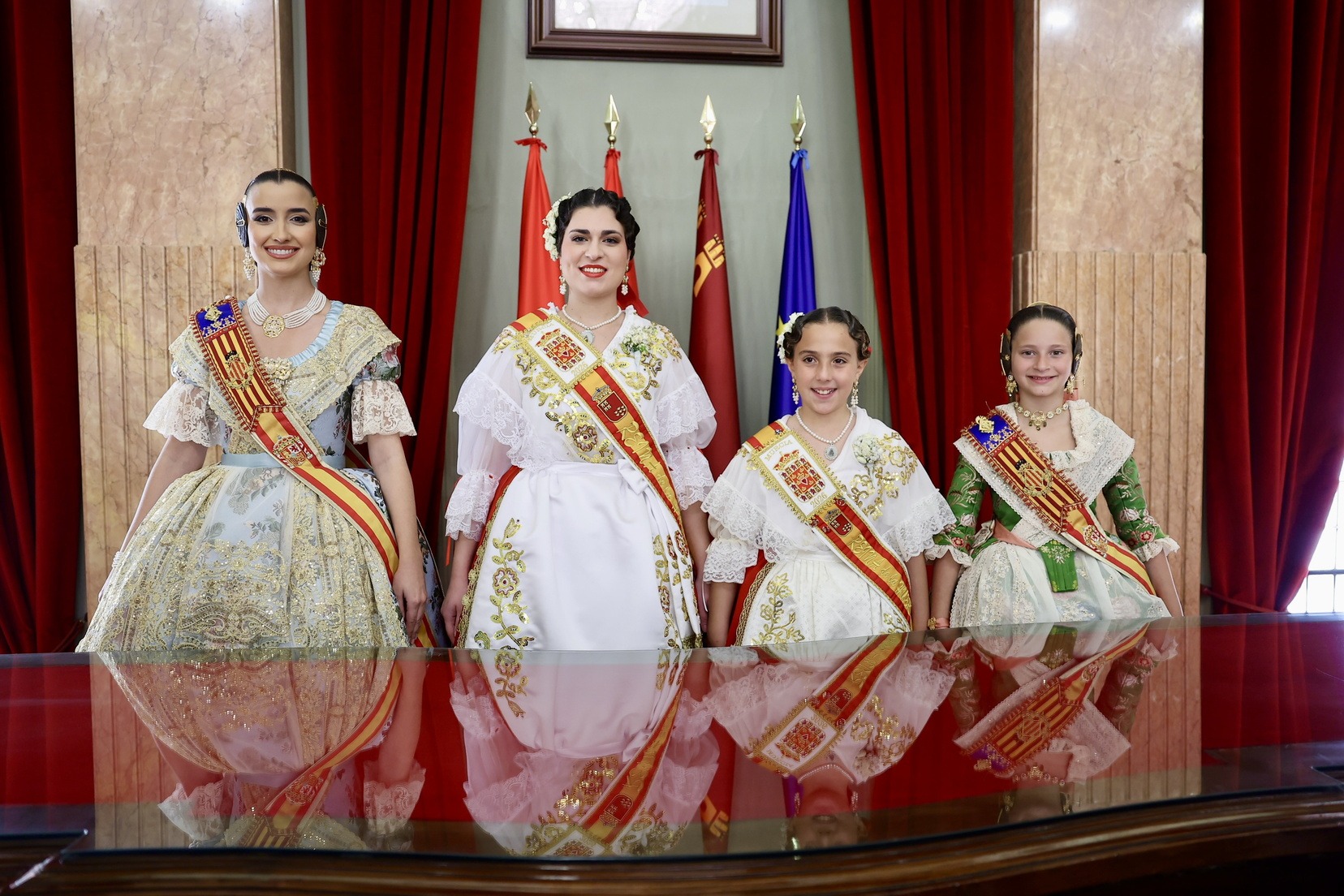Com no podia ser d’una altra manera, les Falleres Majors de València, Carmen Prades i Marta Mercader, han volgut acompanyar a les Reines de la Huerta, Ángela Muñoz i Leonor Antón, i disfrutar al costat d’elles d’estos dies tan especials per a tots els murcians i murcianes.