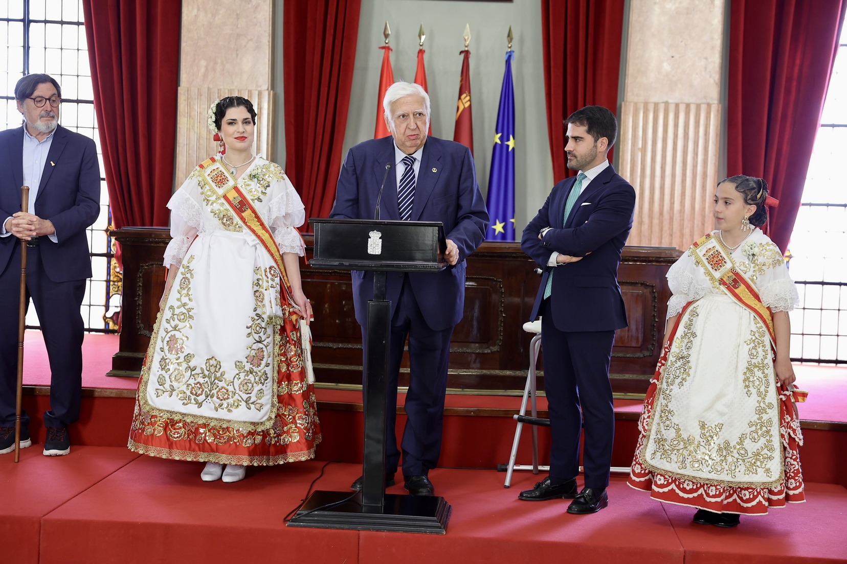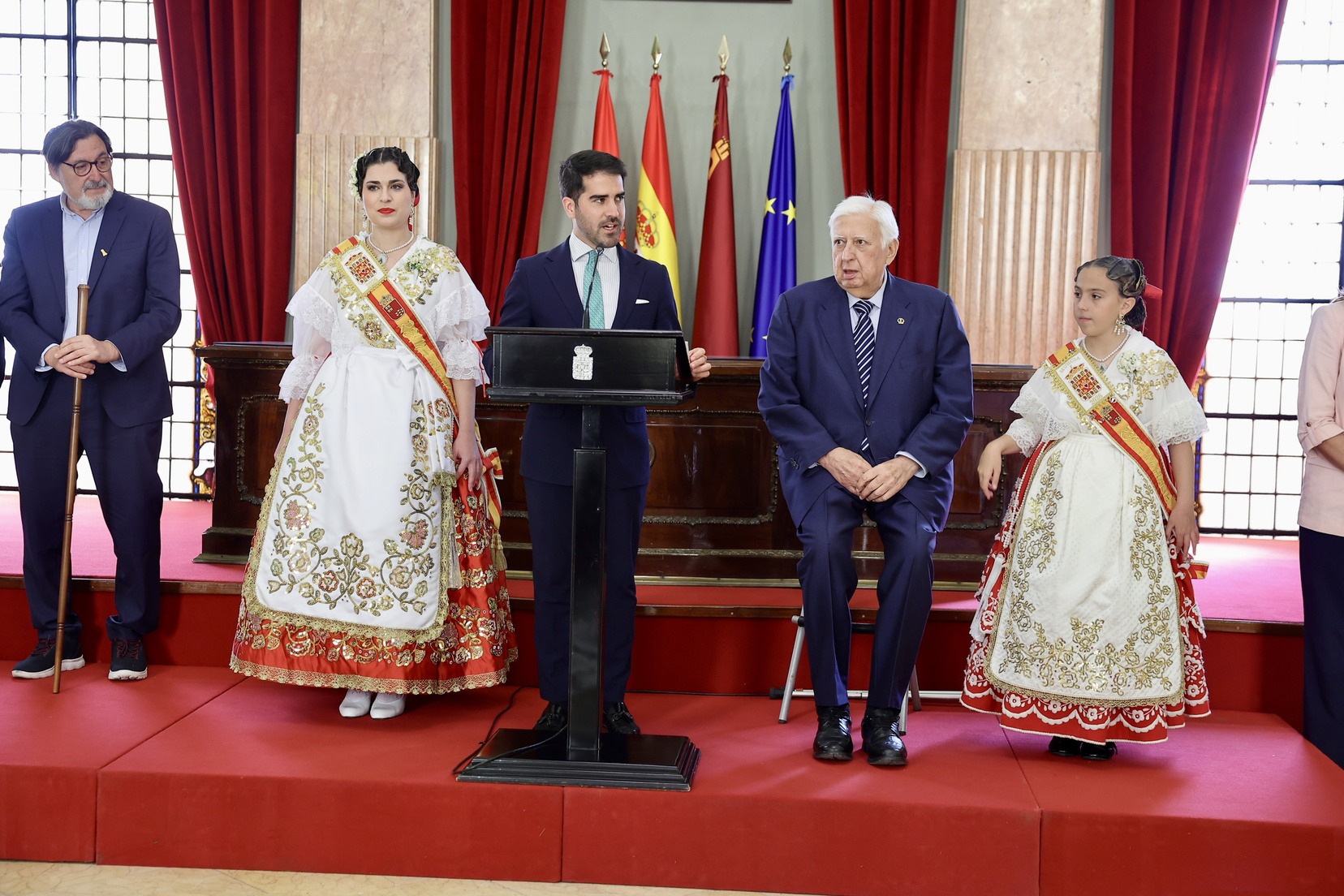 Estos dies de festivitat, convivència i germanor entre regions, han començat amb la recepció oficial a les delegacions convidades, celebrada a l’Ajuntament de la ciutat, per part del regidor de Cultura i Identitat, Diego Avilés, i del president de la Federació de Peñas Huertanas, Juan García Serrano.