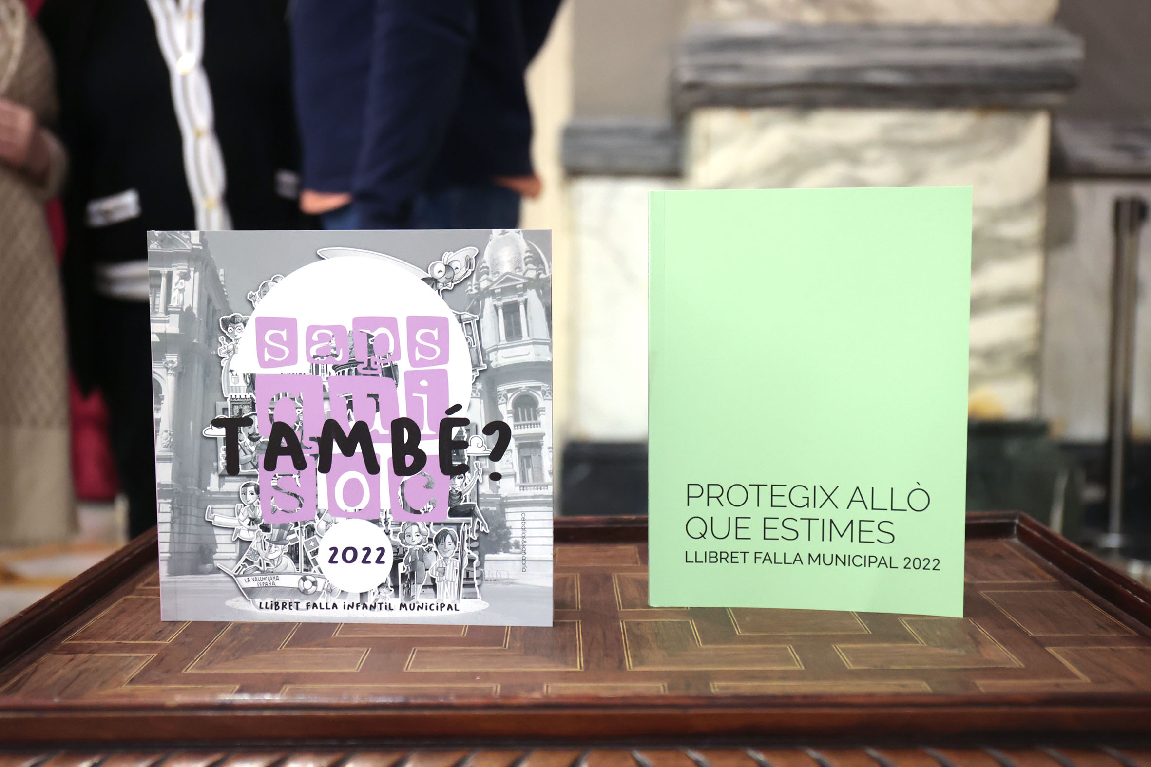 Galiana: “Quan les falles es cremen quedaran estos llibrets, que ens comptaran i explicaran el que van ser les falles d’enguany” El regidor de Cultura Festiva, Carlos Galiana, acompanyat de les Falleres Majors de València 2022, Carmen Martín i Nerea López i les seues Corts d’Honor, ha presidit l’acte de presentació del Llibret de les Falles Municipals 2022. El de la falla major es titula “Protegix allò que estimes”, i és una reflexió dedicada a l’emergència climàtica i la preservació de la biosfera. La infantil, titulada Saps qui soc TAMBÉ?, fa un recorregut per personatges de la història de la ciutat.