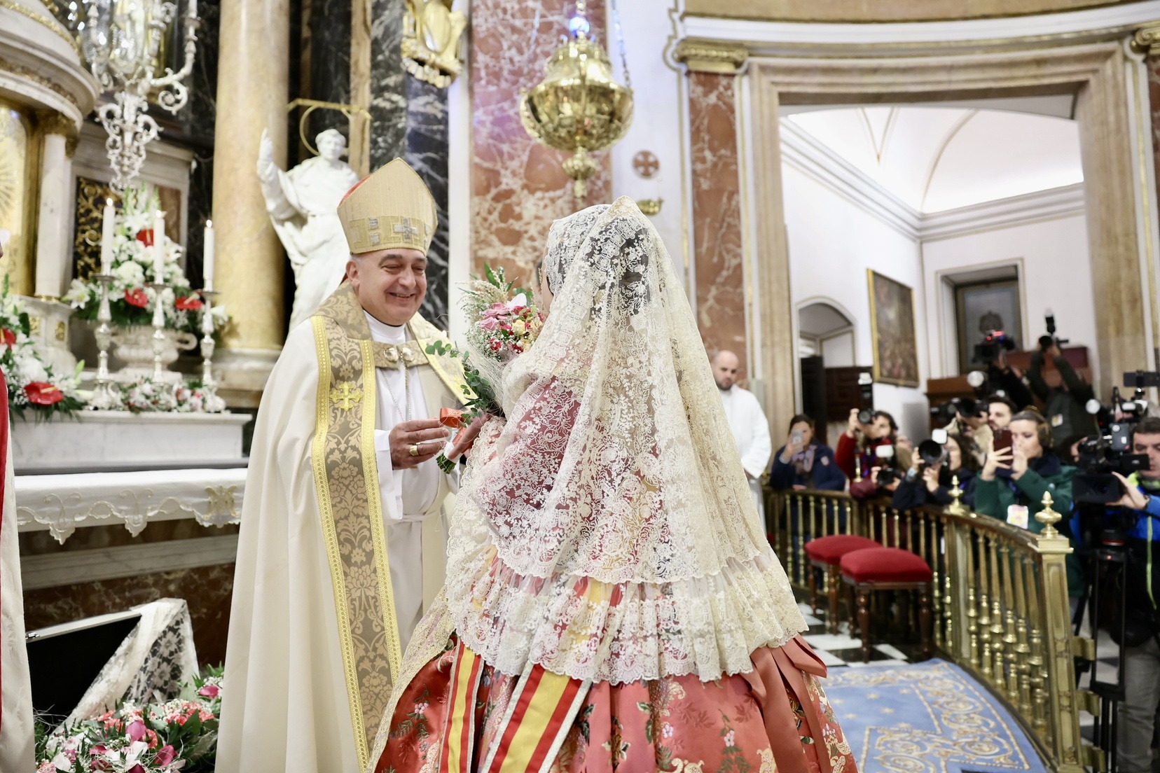 Lucía i la seua Cort d’Honor van ser rebudes en la Plaça de la Verge per la falla de la nostra màxima representant, Arxiduc Carles – Chiva. I no podien faltar les seues famílies, que molt emocionats van poder ser presents en un dia molt important per als valencians i valencianes. Dins de la Basílica, van oferir les seues flors també les representants infantils de Múrcia, Burgos, Alacant i Castelló.