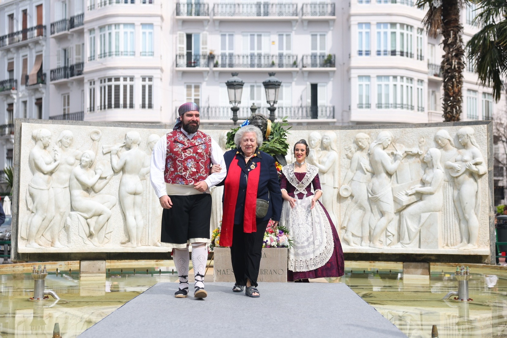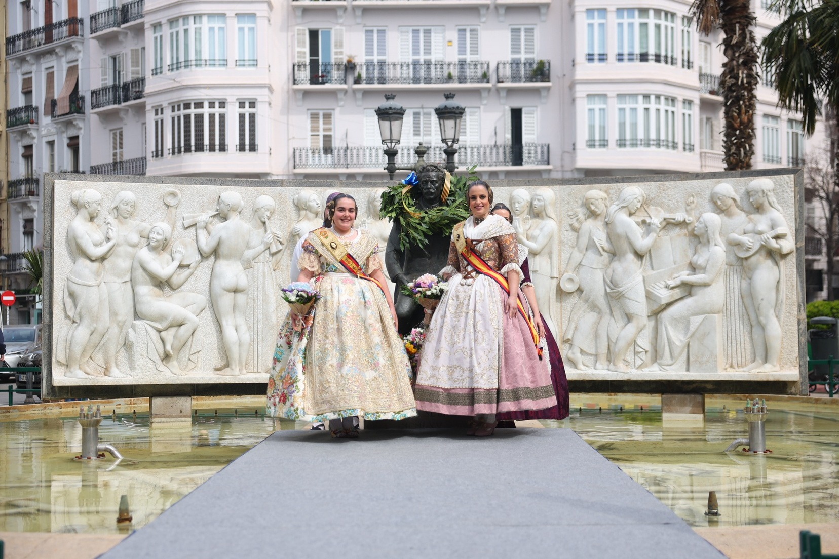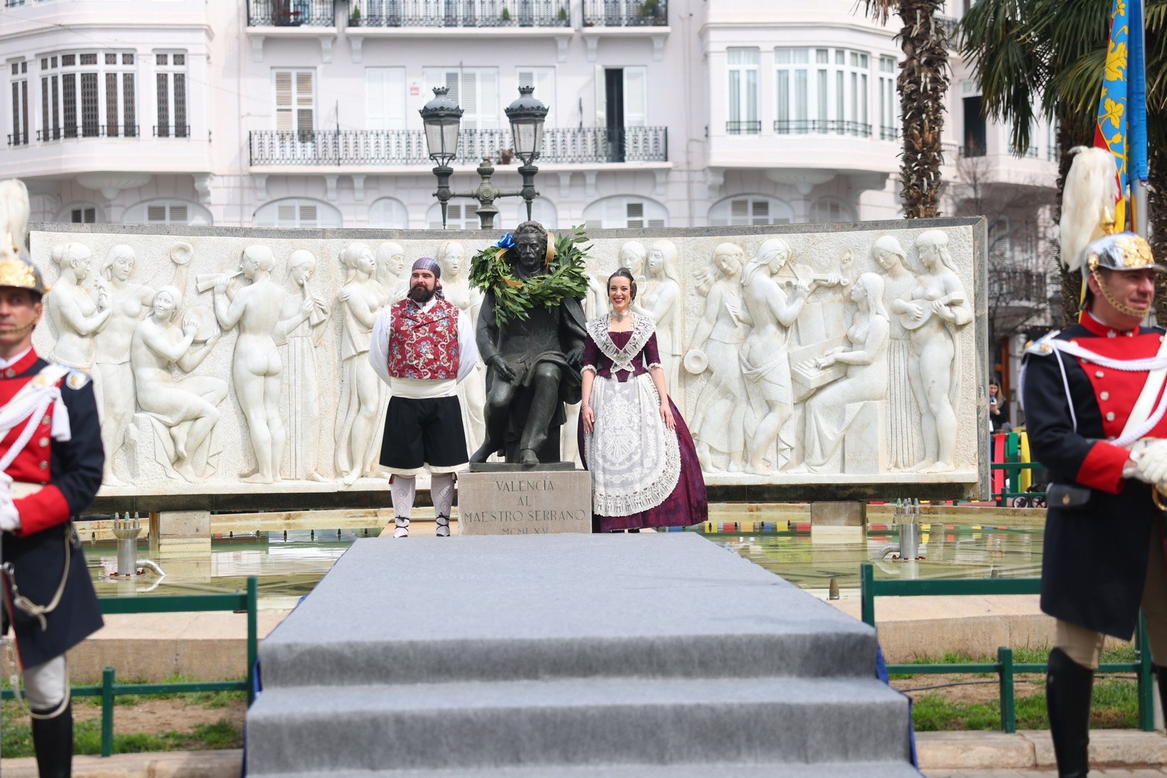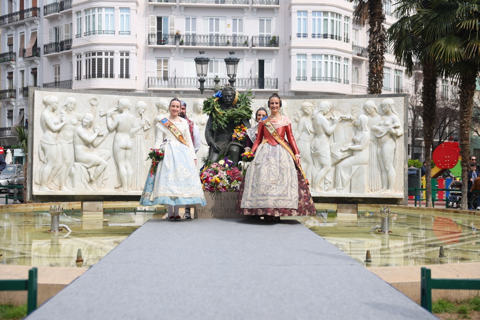 Les Falleres Majors de València, Marta Mercader i Carmen Prades, acompanyades per les seues Corts d’Honor, han sigut les encarregades de presidir este emotiu tribut. Durant l’acte, han dipositat una corona de llorer als peus del monument com a mostra de respecte i gratitud al músic valencià.